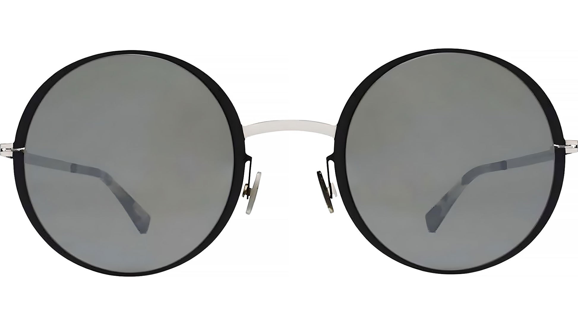 Mykita JOONA 052 sunglasses for women, featuring silver / black round stainless steel frame and demo lenses. The LITE collection embodies modern minimalism with contemporary shapes and balanced constructions that offer exceptional comfort and refined aesthetics. Featuring pure stainless steel frames and mixed material models with acetate elements, the collection is defined by slim 3mm steel temples and a distinctive spiral hinge.. Brand line: LITE. Style code: 10015508. Color code: 052. Made in Germany. Authorized Mykita online reseller. Your glasses will include the original case and accessories and are covered by a 12-month global warranty.