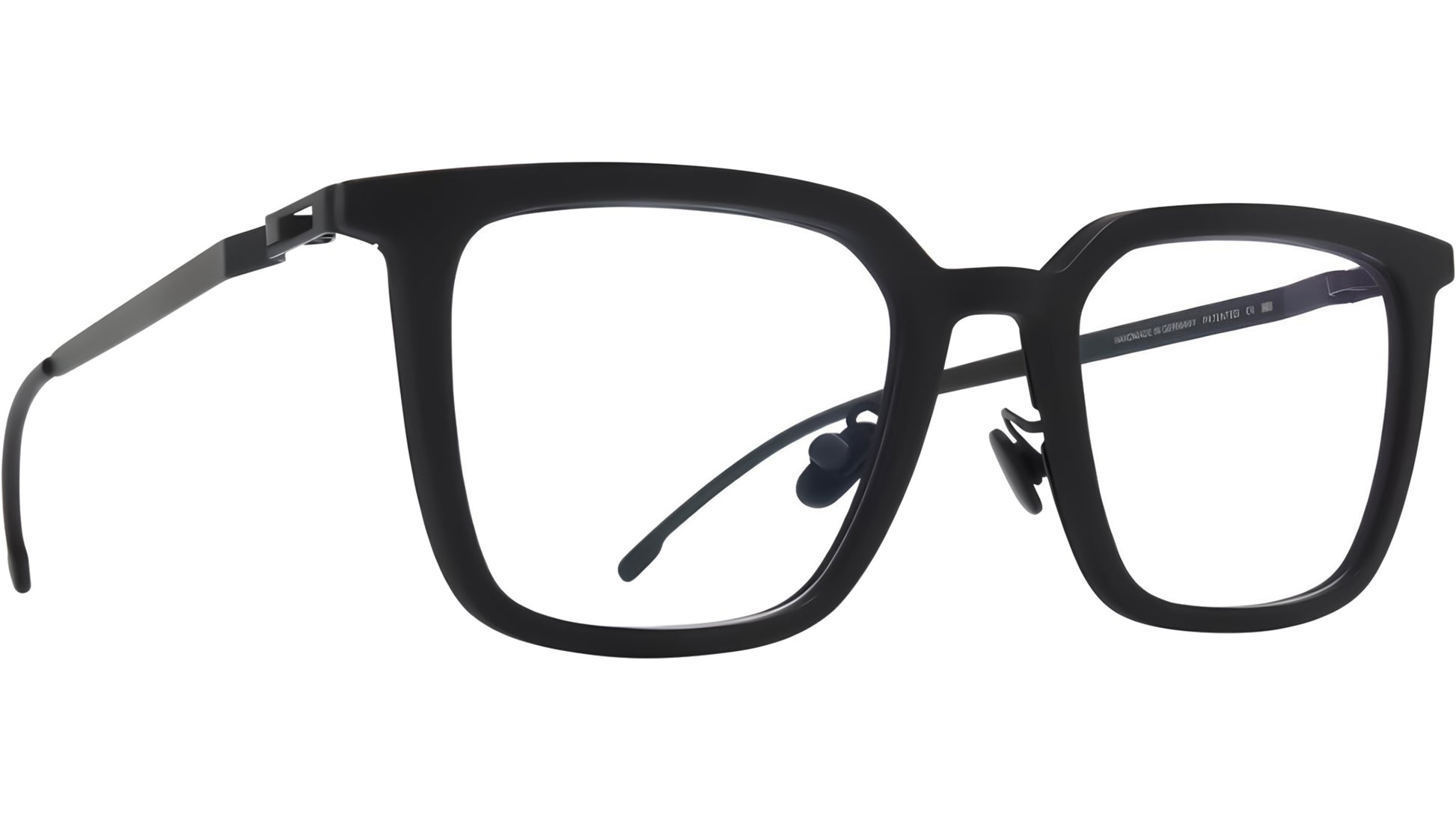 Mykita KOLDING MH6 glasses for men and woman, featuring pitch black squared nylon frame and demo lenses. Eyewear design at the cutting edge of 3D printing technology: MYKITA MYLON is shaping the future of high-tech eyewear through innovative engineering and trend-setting design. MYLON® is an award-winning material innovation from Modern Manufactory, renowned for its adaptability, exceptional lightness and durability. The range of styles expresses the design freedom of this high-tech material, including the HYBRID line, which combines stainless steel with MYLON® for a uniquely sophisticated aesthetic.. Brand line: MYLON. Style code: 10084948. Color code: MH6. Made in Germany. Authorized Mykita online reseller. Your glasses will include the original case and accessories and are covered by a 12-month global warranty.