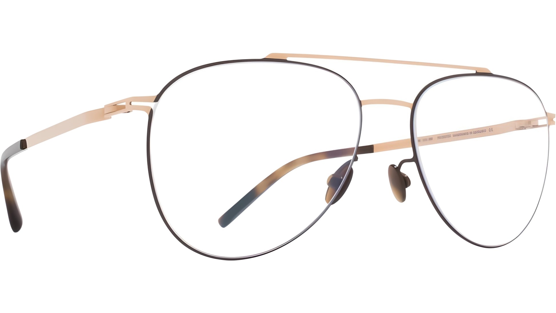 Mykita PETERSON 285 glasses for men, featuring champagne gold / dark brown pilot stainless steel frame and demo lenses. The LITE collection embodies modern minimalism with contemporary shapes and balanced constructions that offer exceptional comfort and refined aesthetics. Featuring pure stainless steel frames and mixed material models with acetate elements, the collection is defined by slim 3mm steel temples and a distinctive spiral hinge.. Brand line: LITE. Style code: 10016031. Color code: 285. Made in Germany. Authorized Mykita online reseller. Your glasses will include the original case and accessories and are covered by a 12-month global warranty.