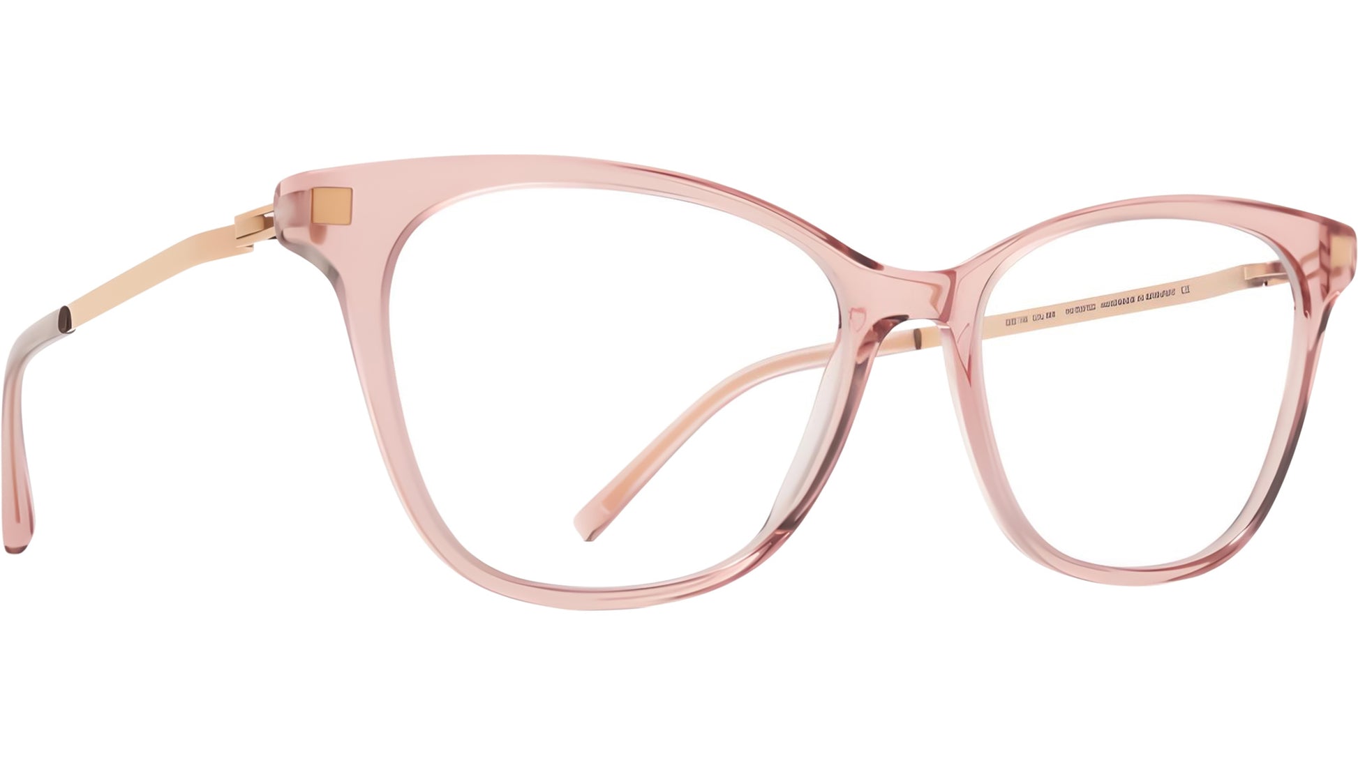 Mykita SESI 889 glasses for women, featuring melrose / champagne gold cat eye acetate frame and demo lenses. The LITE collection embodies modern minimalism with contemporary shapes and balanced constructions that offer exceptional comfort and refined aesthetics. Featuring pure stainless steel frames and mixed material models with acetate elements, the collection is defined by slim 3mm steel temples and a distinctive spiral hinge.. Brand line: LITE. Style code: 2509692. Color code: 889. Made in Germany. Authorized Mykita online reseller. Your glasses will include the original case and accessories and are covered by a 12-month global warranty.