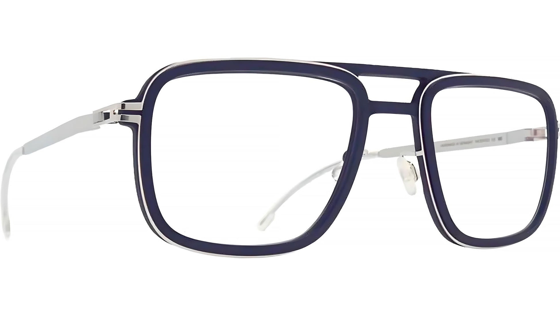 Mykita SPRUCE MH10 glasses for men, featuring navy blue pilot nylon frame and demo lenses. Eyewear design at the cutting edge of 3D printing technology: MYKITA MYLON is shaping the future of high-tech eyewear through innovative engineering and trend-setting design. MYLON® is an award-winning material innovation from Modern Manufactory, renowned for its adaptability, exceptional lightness and durability. The range of styles expresses the design freedom of this high-tech material, including the HYBRID line, which combines stainless steel with MYLON® for a uniquely sophisticated aesthetic.. Brand line: MYLON. Style code: 10077904. Color code: MH10. Made in Germany. Authorized Mykita online reseller. Your glasses will include the original case and accessories and are covered by a 12-month global warranty.