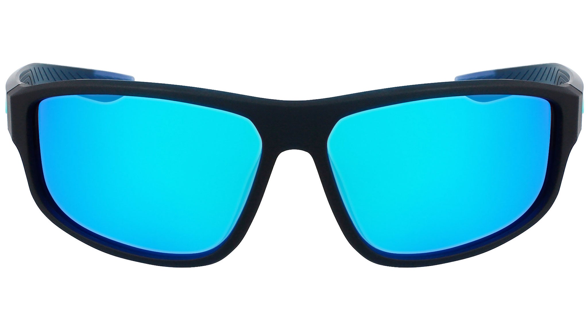 Nike Brazen Fuel M line sunglasses model DJ0803-420 featuring matte crystal space blue frame and grey and turquoise lens.
