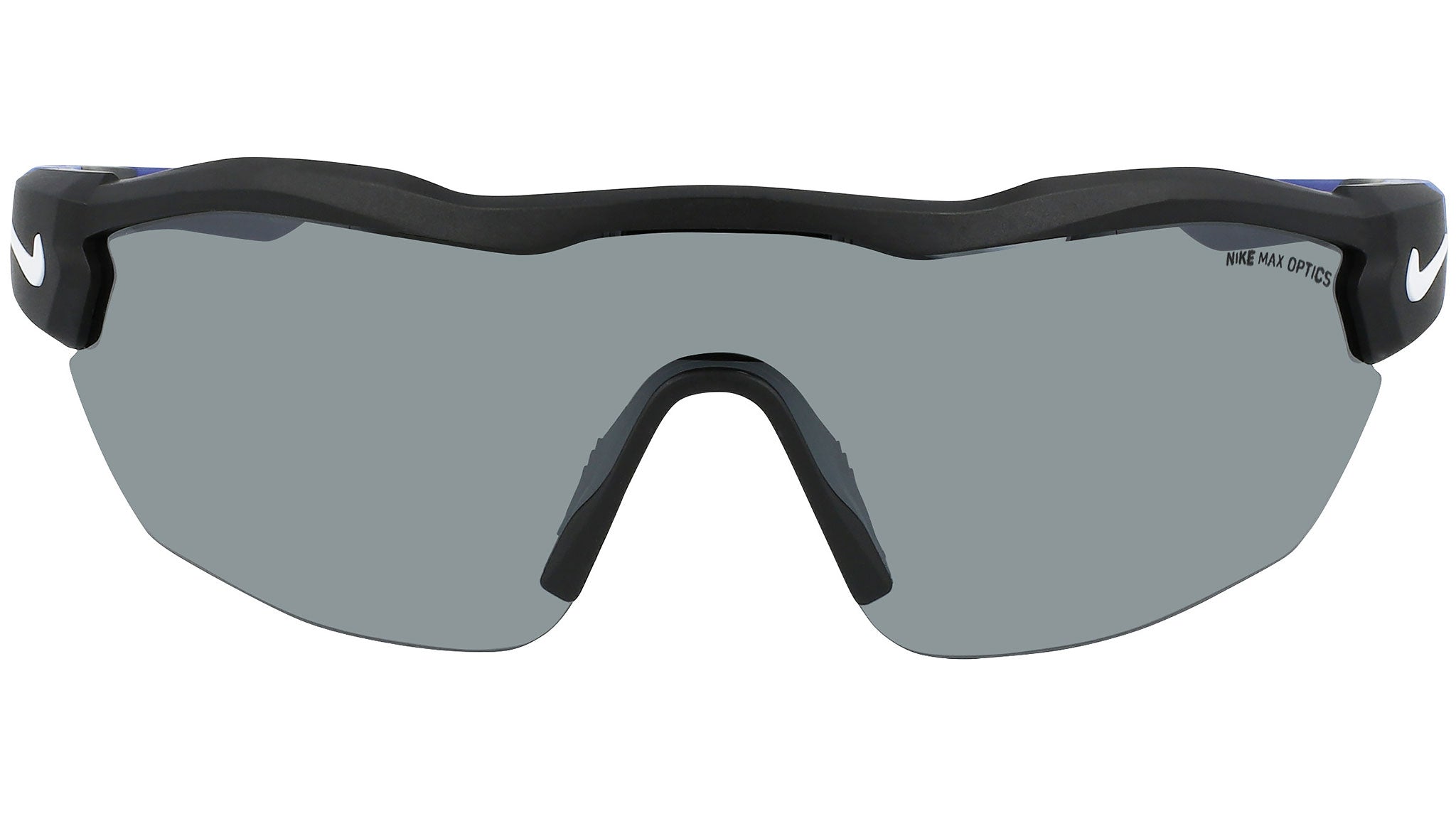 The pinnacle of comfort and clarity: designed using pro-athlete insights, the Nike Show X3 Elite sunglasses offer optimum eyewear performance with a one-piece lens for uninterrupted line of sight, anti-fogging ventilation, and lightweight, ergonomic comfort. Benefits: Nike Road Tint blocks harsh light on the track and road. Nike Elite one-piece lens for superior coverage and clarity. Max optics provide precise vision from all angles. Injected frame material is derived from at least 40% castor bean oil. Contoured lens provides deeper coverage. Anti-fog ventilation holes in the frame circulate air flow. Adjustable temple arms with rubber sleeves for enhanced grip and optimal fit. Floating nose pad helps optimize airflow and absorb impact.