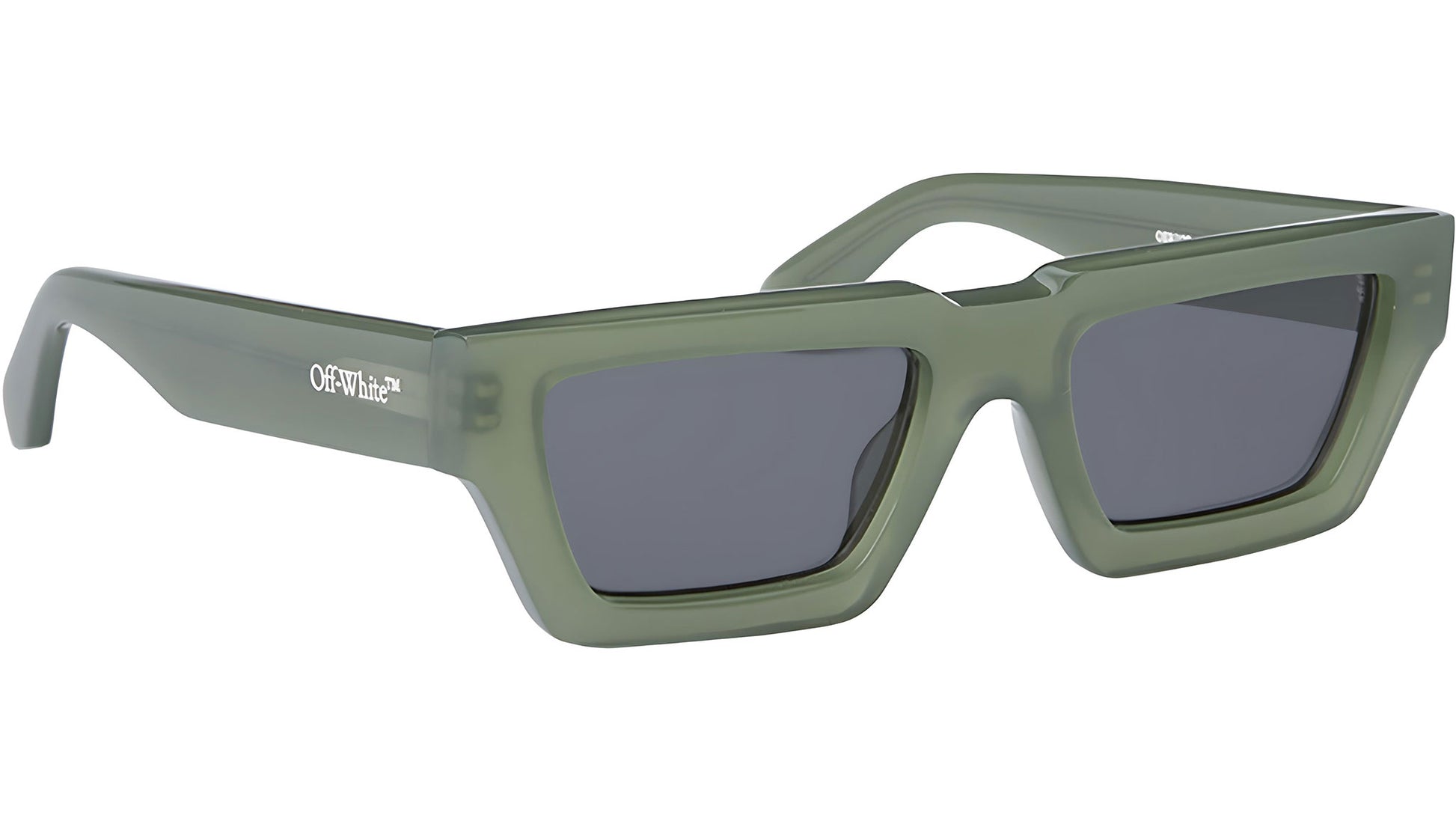 The Off-White™ Manchester sunglasses present a bold and graphic approach to eyewear design, featuring an irreverent rectangular shape enhanced by a geometric step on the bridge. This unexpected detail adds a contemporary twist to the frame, setting the Manchester apart in terms of style and originality. The clean, straight temples provide a counterbalance to the busier front of the silhouette, and are adorned with the Off-White™ logo lasered in white or silver, emphasizing the brand's attention to detail and commitment to quality. Despite their stylish and fashionable appearance, these sunglasses are designed to be light and easy to wear, ensuring comfort without sacrificing style. This season, the Manchester sunglasses make a return in two classic black options for a timeless look, as well as two more adventurous choices: sage green for a touch of nature-inspired elegance, and bold white for those looking to make a strong fashion statement.
