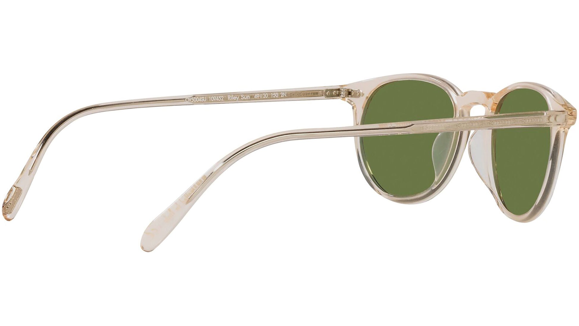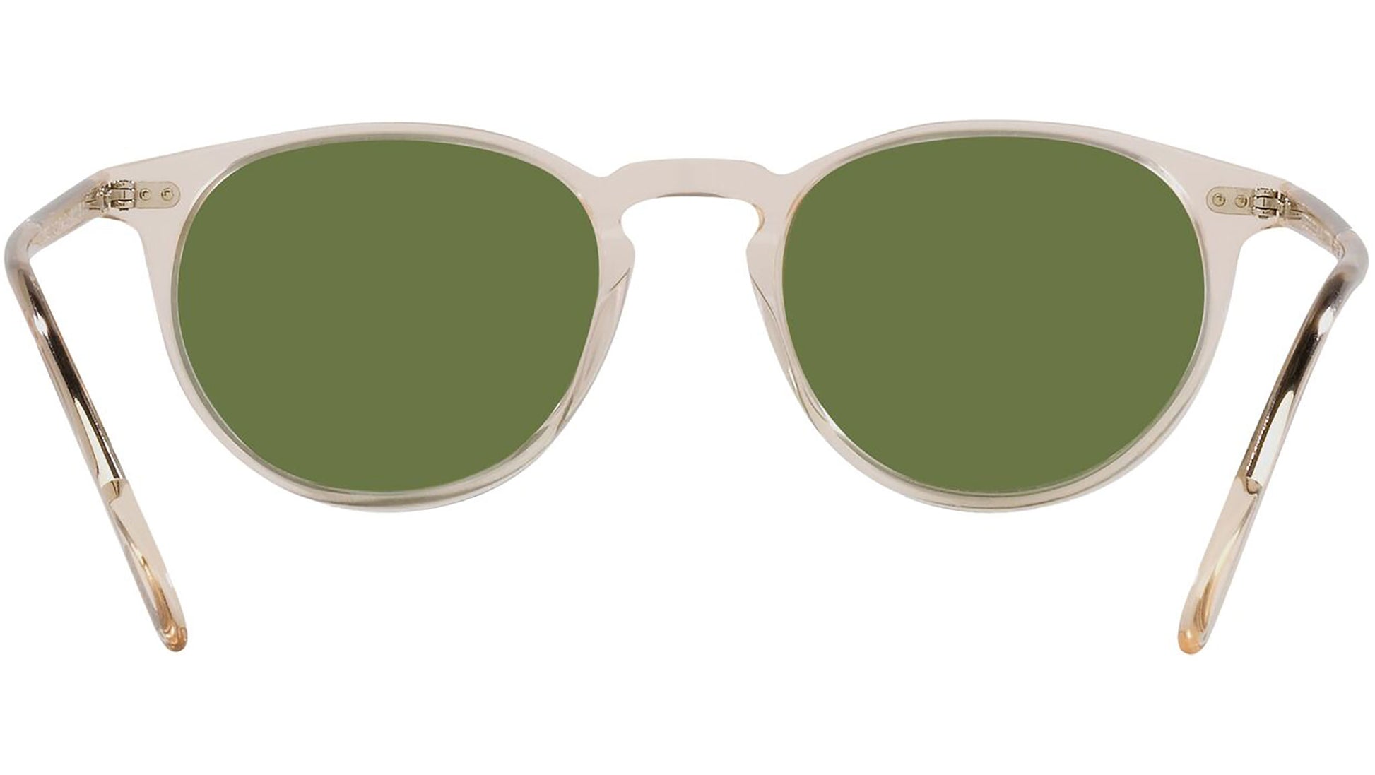 For the first time, the iconic Oliver Peoples Riley is offered as a sunglass. The Riley Sun features the same recognizable details as the optical and is quintessentially Oliver Peoples in its color offering, lens shape and fine details. Custom Oliver Peoples filigree engraved on the corewire. Universal fitting nosepads for an enhanced fit. Polarized glass lenses ease reflective glare and optimizes visual clarity. Featuring advanced coatings, 100% UVA/UVB protection and the custom Oliver Peoples breath logo.