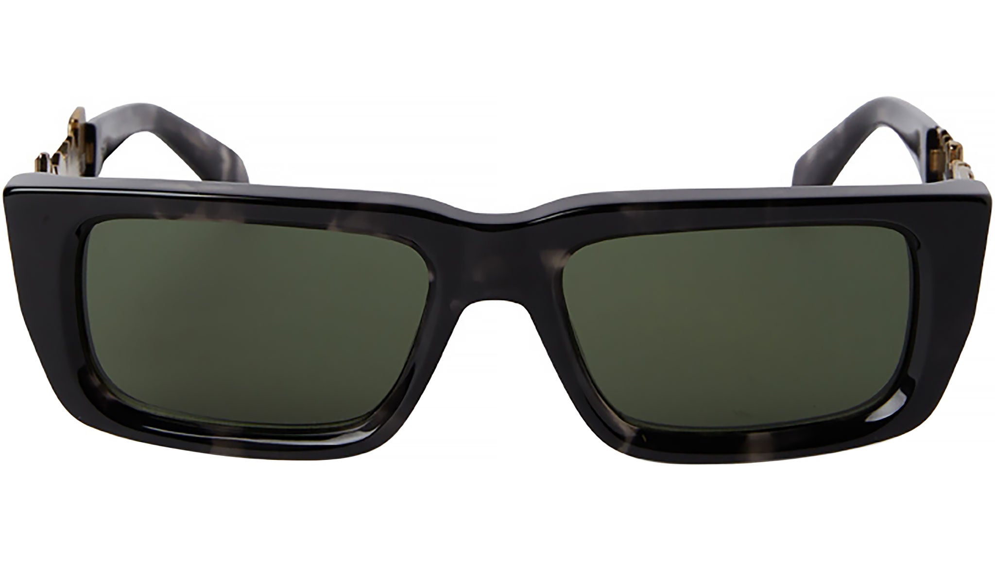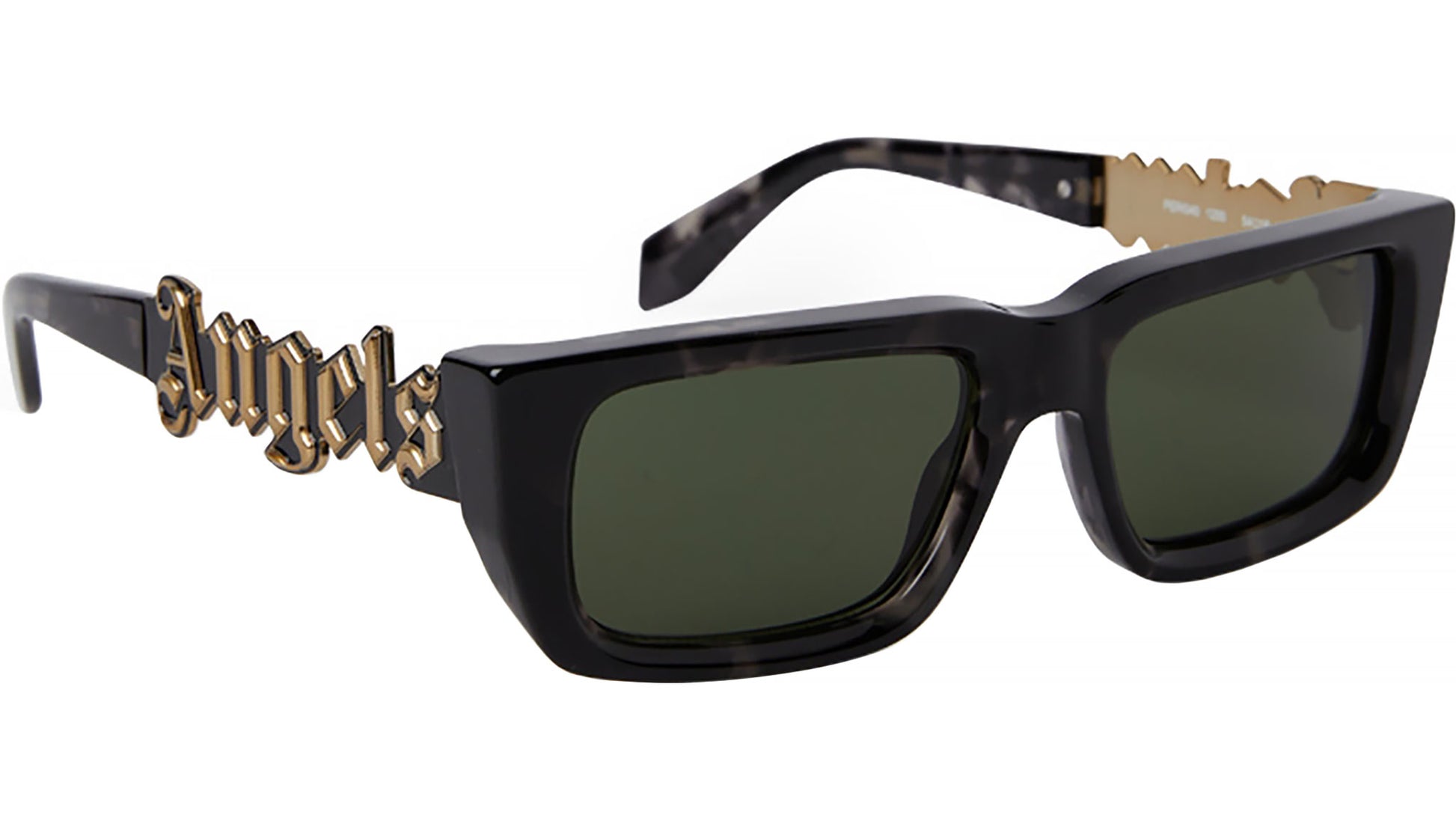 The Milford sunglasses from Palm Angels exude a retro charm with a rectangular design and linear profiles, updated for a contemporary touch. These versatile shades boast a geometric silhouette with intricate milling details on the front. Unique to the Milford is the reinterpretation of the Palm Angels logo, showcased as a two-tiered design; a black base with an overlaying metal inscription of PALM and ANGELS in their signature Gothic font.