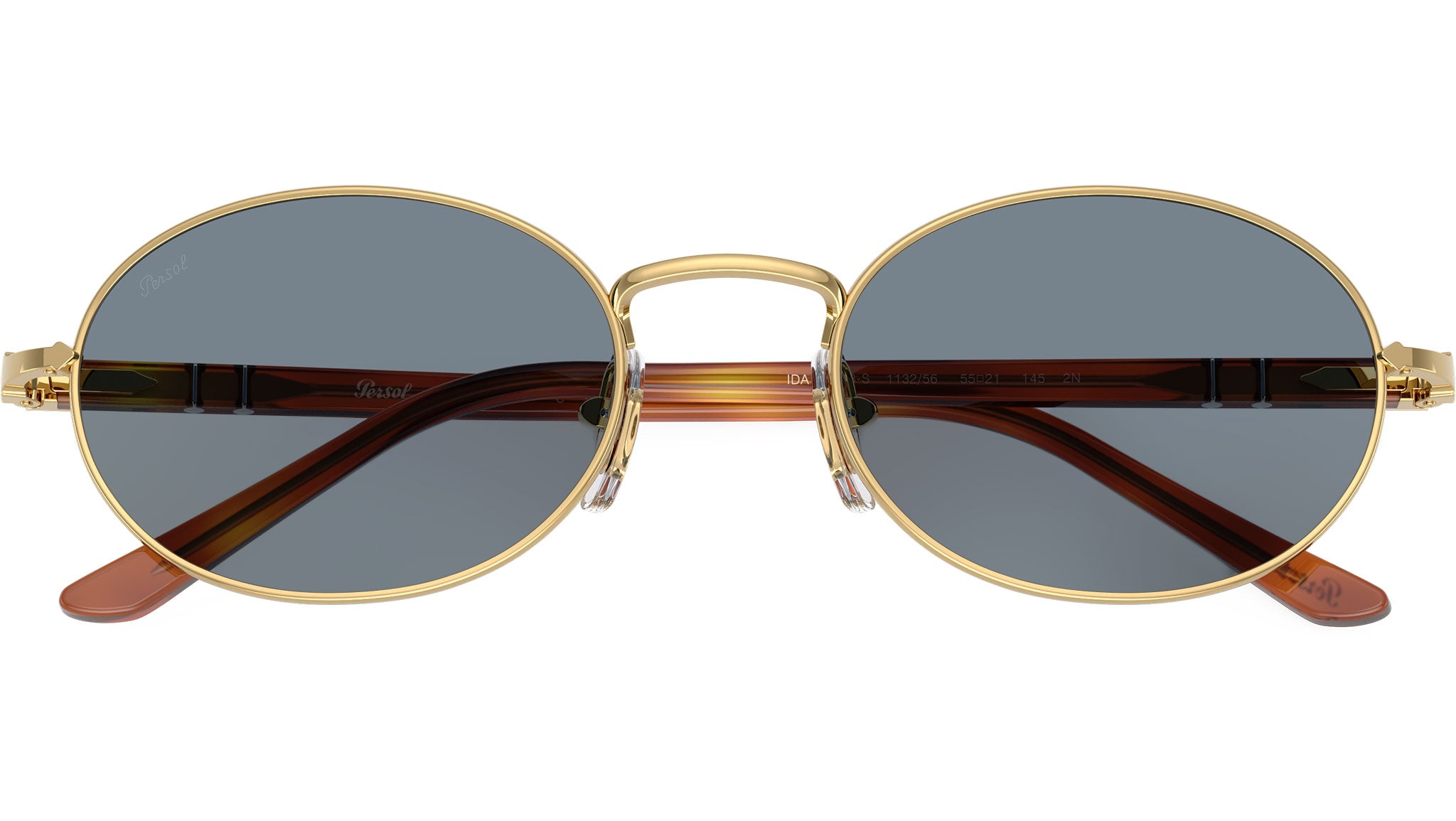 Persol sunglasses for men and woman model PO1018S 113256 featuring gold metal frame and light blue base 6 glass lenses. Adjustable nosepads. Frame line: Sartoria. Brand code: 0PO1018S. Color code: 113256. Authorised Persol Eyewear Online Reseller. Your glasses will come including the original case and accessories and will be covered by 12 month global warranty.