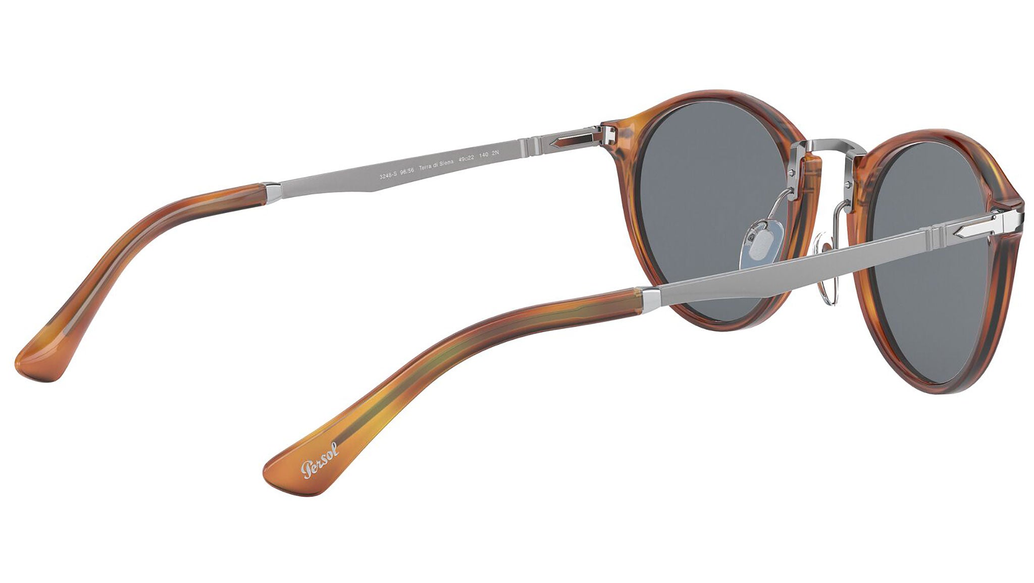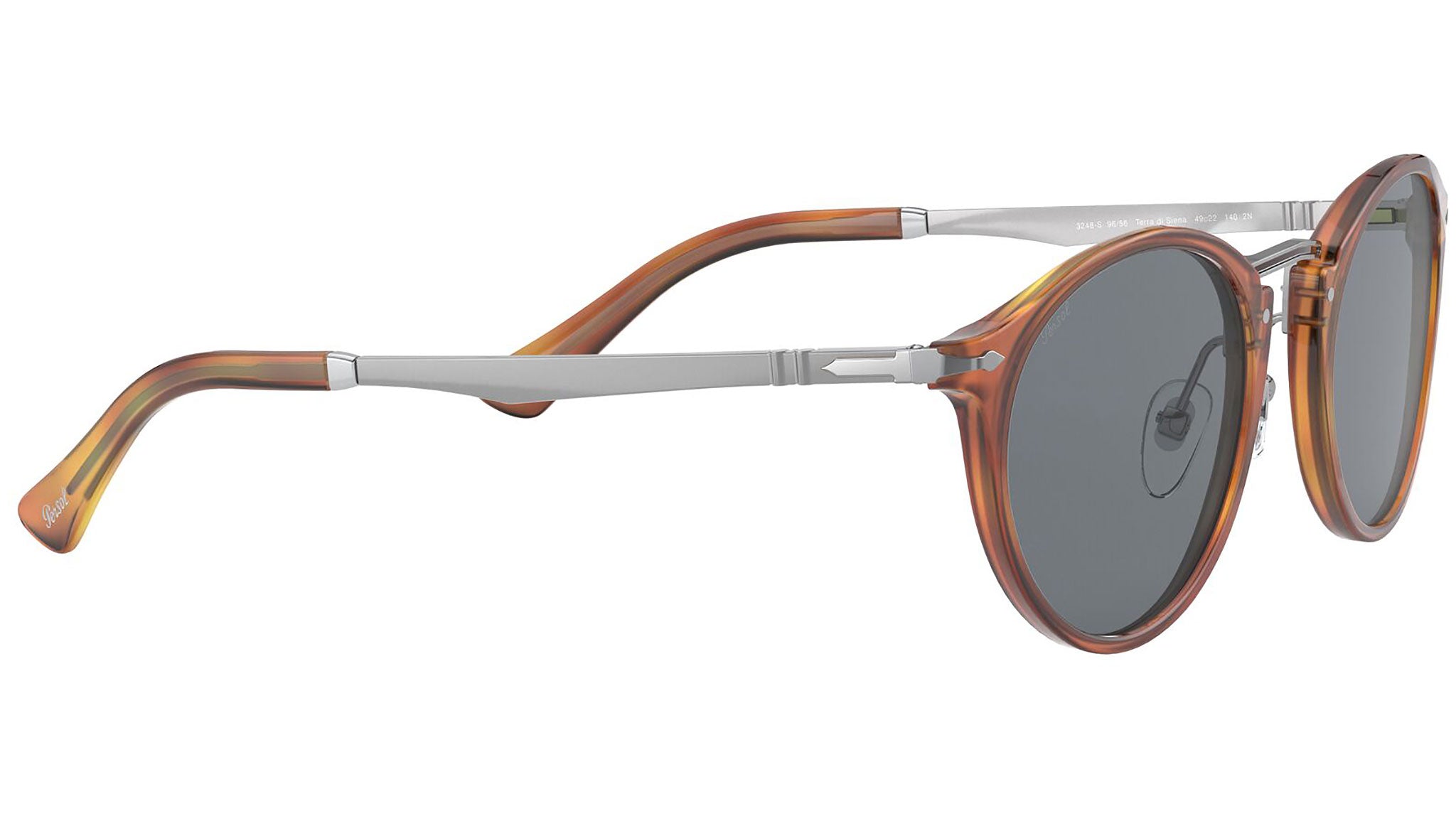 Innovative design tailors custom-crafted elegance to suit the contemporary style of a new generation of Persol connoisseurs. Its stylish, contemporary shape with smart-casual appeal, fine metal temples and integrated flex hinges ensure personalised comfort. Exclusive Persol colours and modern metal tones deliver a distinctive look, while the signature Persol Arrows offer premium brand identity. From standard to polarized, the selection of crystal sun lenses represent quality and excellence, made from the most precious optical materials and used to guarantee the best protection and visual clarity. Acetate from cotton and powdery pigments blend to form variations that can only be found in Persol glasses, unique for each frame. Made by hand with the highest quality materials, all these glasses are a natural work of art.