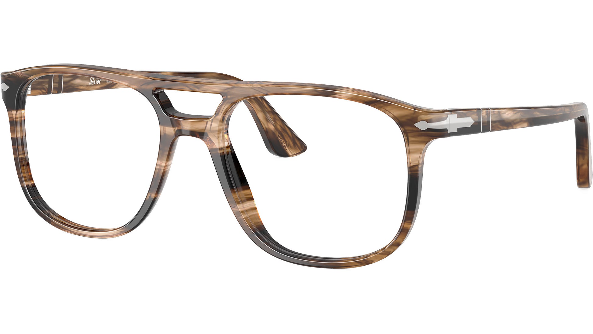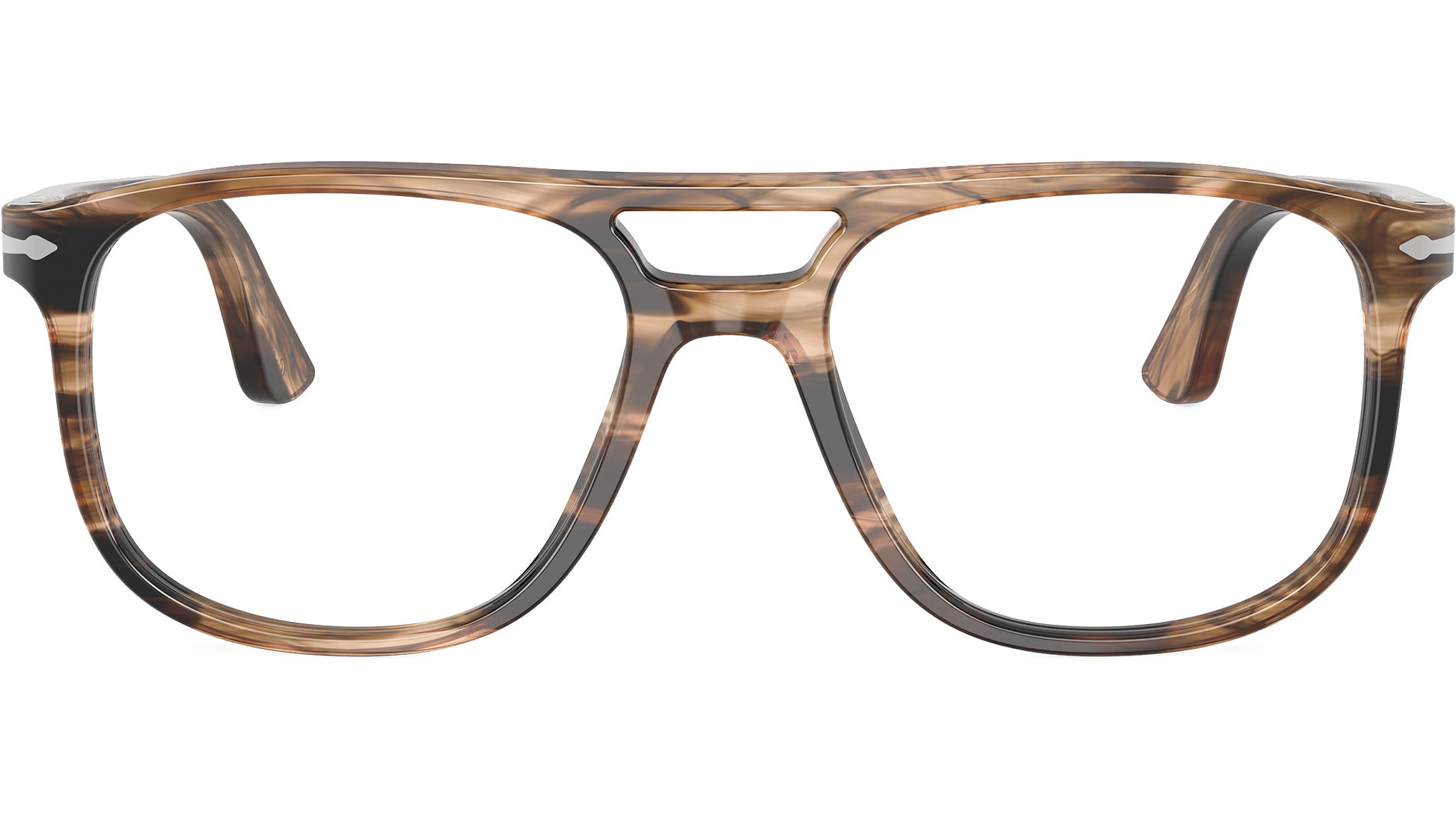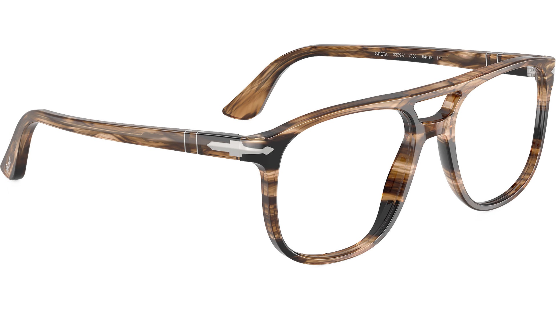 Persol glasses for men and woman model PO3329V 1236 featuring striped black & greish brown acetate frame and demo lenses. High bridge fit. Frame line: Icona Officina. Brand code: 0PO3329V. Color code: 1236. Authorised Persol Eyewear Online Reseller. Your glasses will come including the original case and accessories and will be covered by 12 month global warranty.