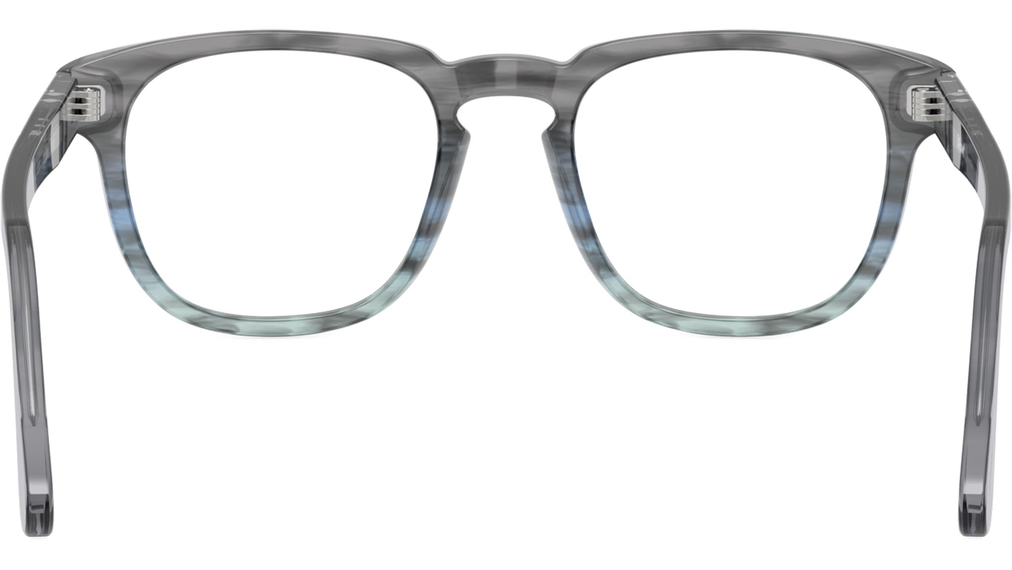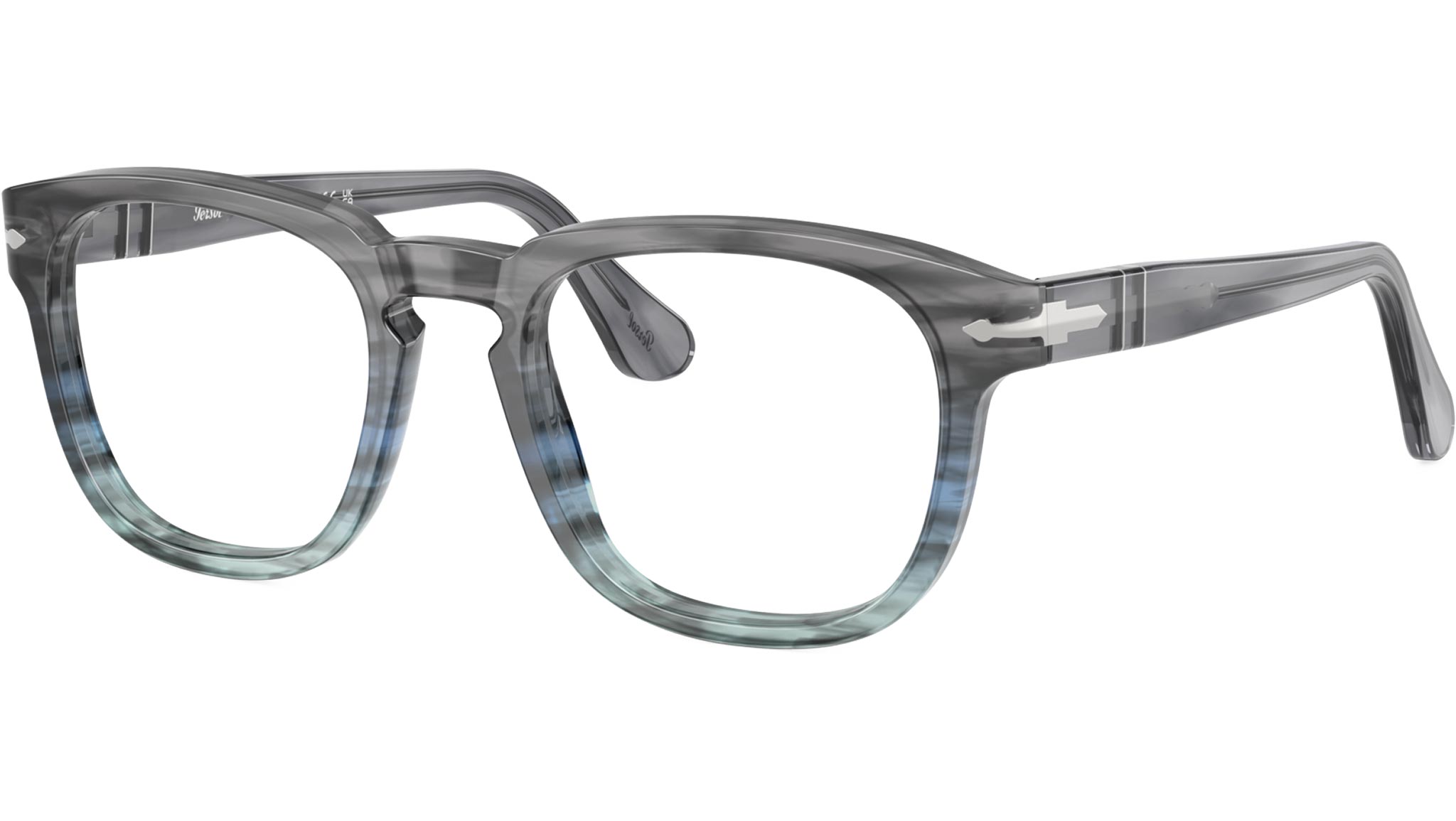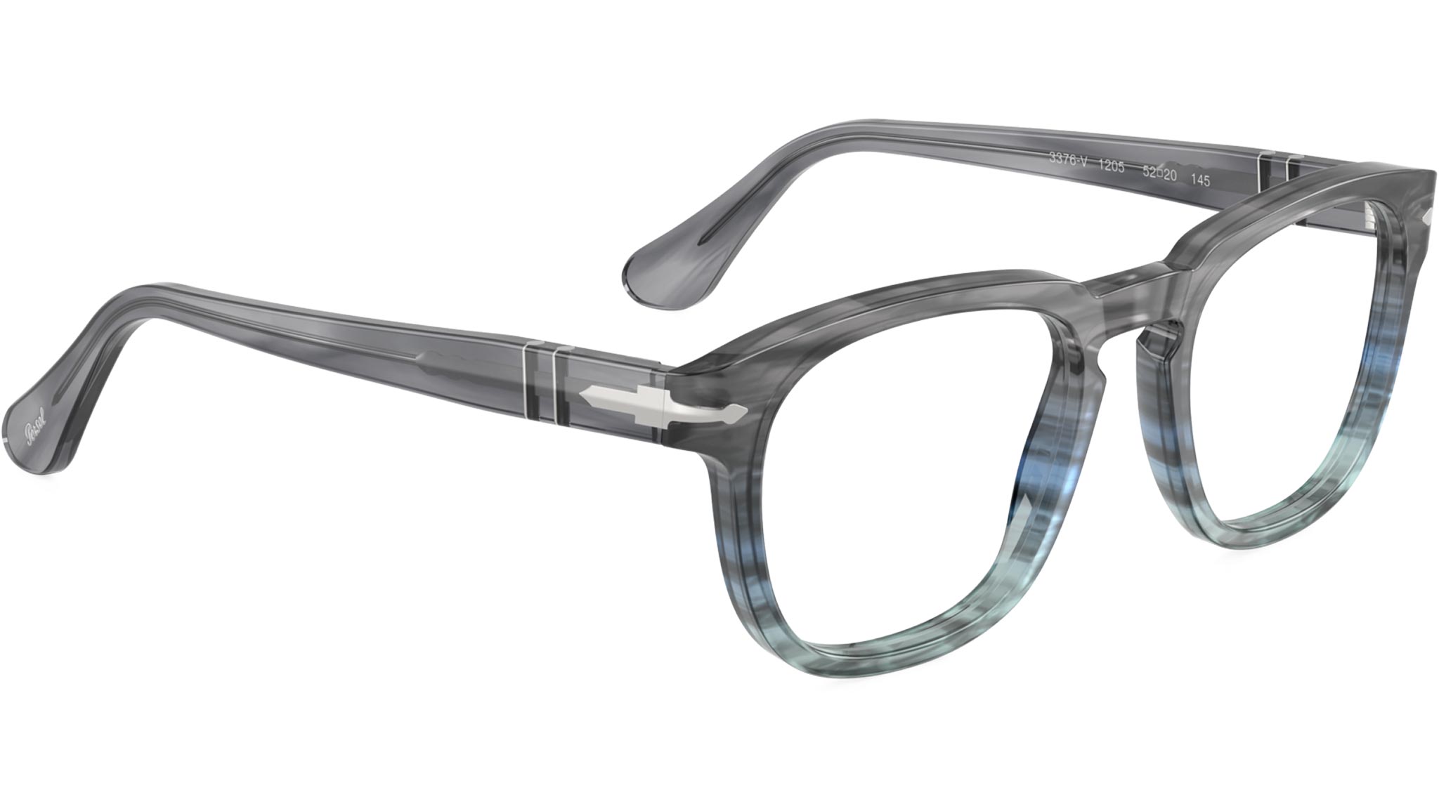Persol glasses for men and woman model PO3376V 1205 featuring striped grey acetate frame and demo lenses. Universal fit. Frame line: Galleria. Brand code: 0PO3376V. Color code: 1205. Authorised Persol Eyewear Online Reseller. Your glasses will come including the original case and accessories and will be covered by 12 month global warranty.
