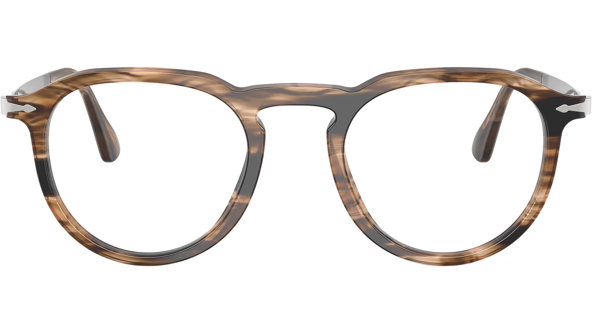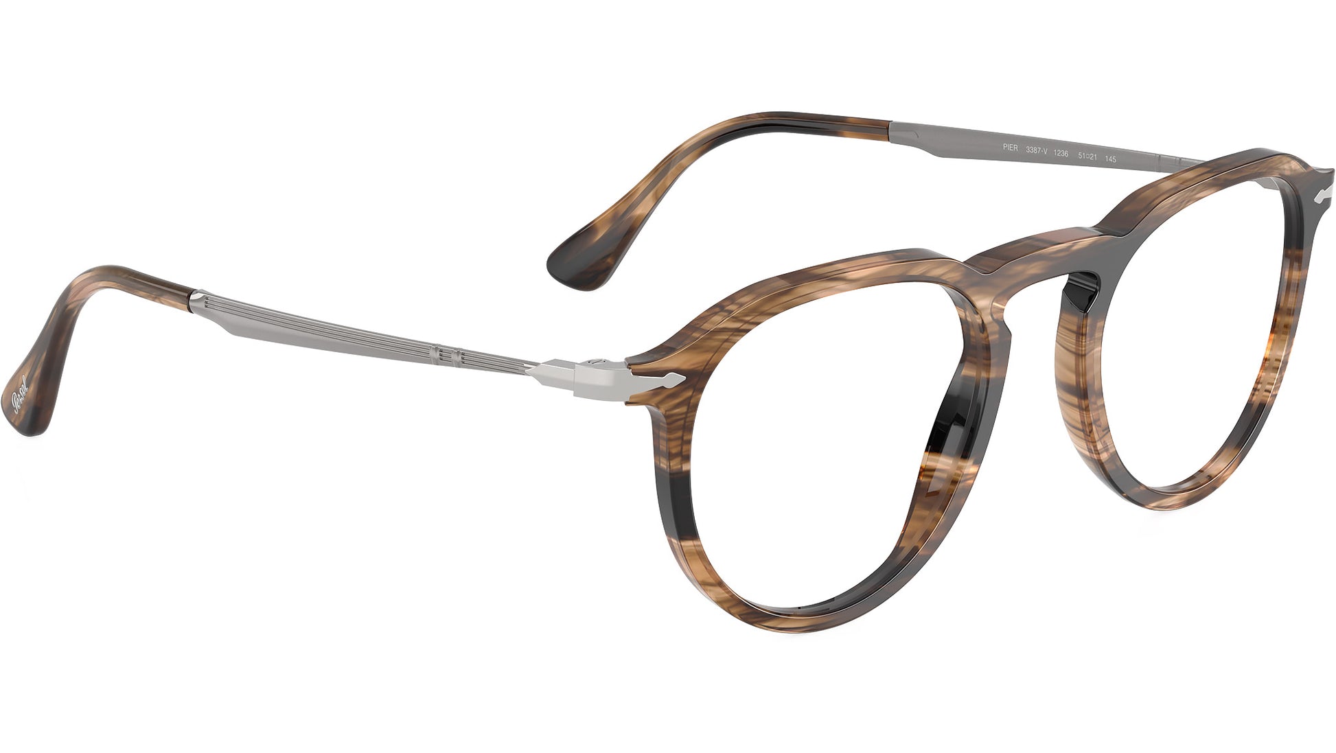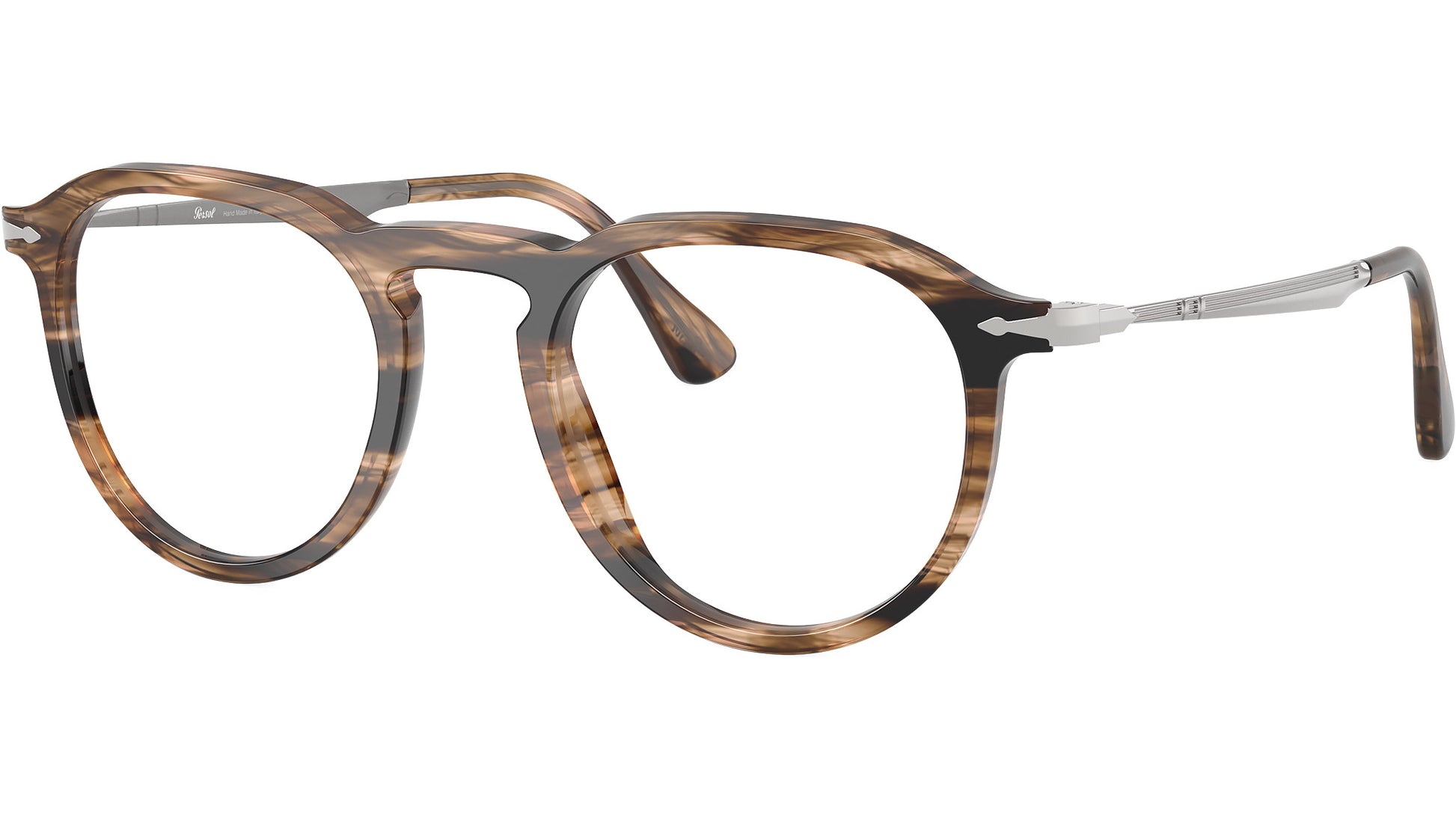 Persol glasses for men and woman model PO3387V 1236 featuring striped black & greish brown acetate frame and demo lenses. High bridge fit. Frame line: Icona Galleria. Brand code: 0PO3387V. Color code: 1236. Authorised Persol Eyewear Online Reseller. Your glasses will come including the original case and accessories and will be covered by 12 month global warranty.