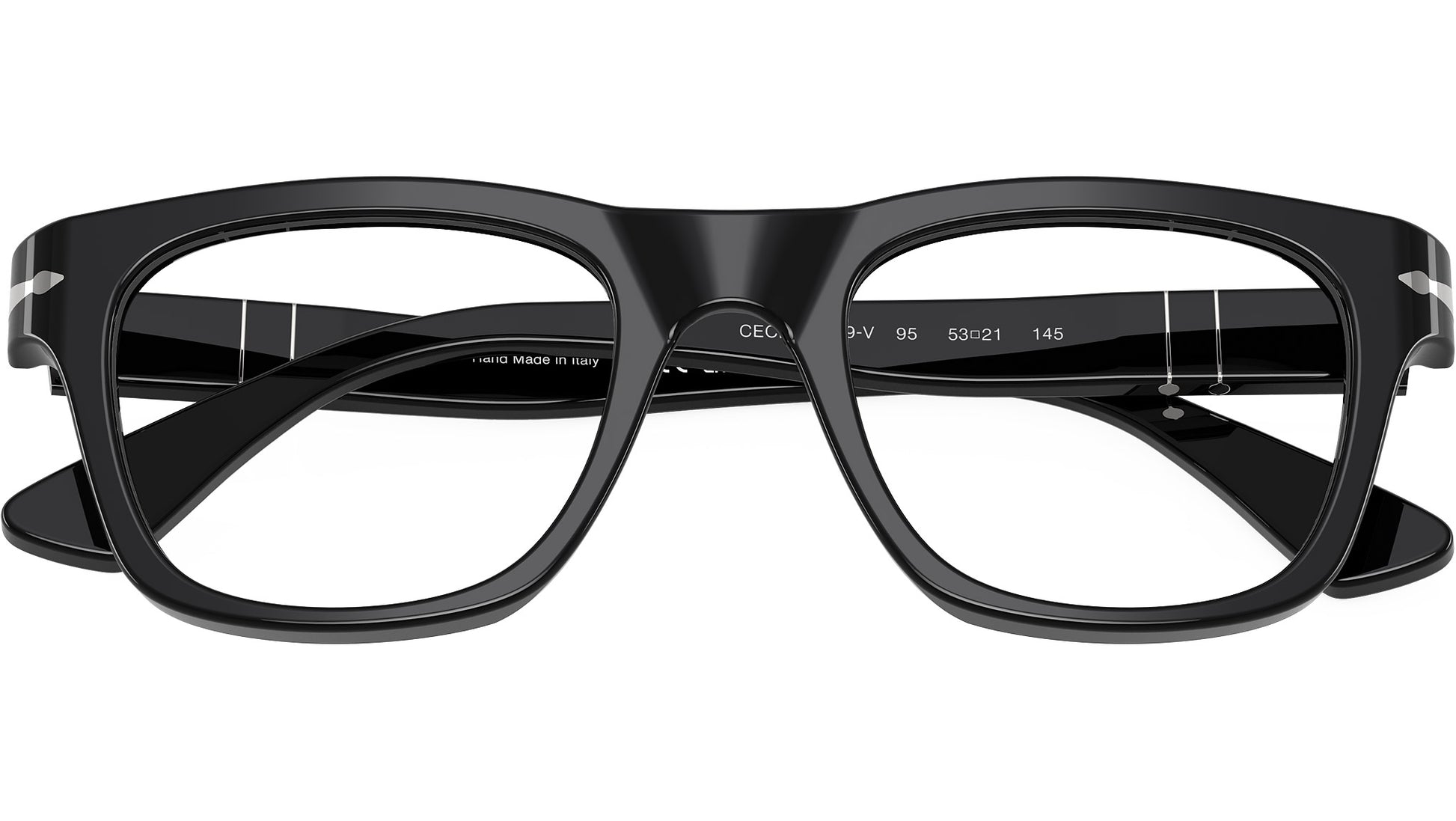 Persol glasses for men and woman model PO3389V 95 featuring black acetate frame and demo lenses. High bridge fit. Frame line: Icona Officina. Brand code: 0PO3389V. Color code: 95. Authorised Persol Eyewear Online Reseller. Your glasses will come including the original case and accessories and will be covered by 12 month global warranty.