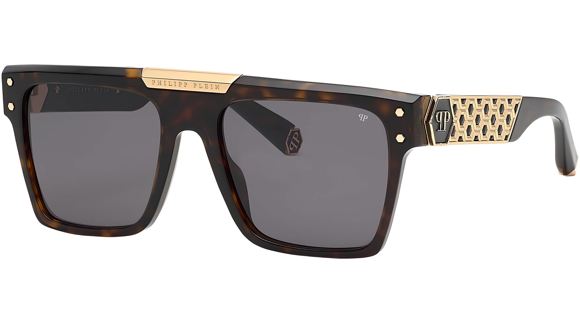 SPP080 0722 shiny dark havana Sunglasses. Discover the essence of unbridled luxury and edgy style with Philipp Plein eyewear. Crafted for the passionate individualist, each pair embodies the brand's commitment to extraordinary design, beauty, and rock and roll spirit. With their provocative, maximalist aesthetics, these sunglasses and optical frames are not just accessories but bold statements of personal style. Philipp Plein's sumptuous and innovative approach to fashion transforms your vision into reality. Perfect for those who dare to stand out.