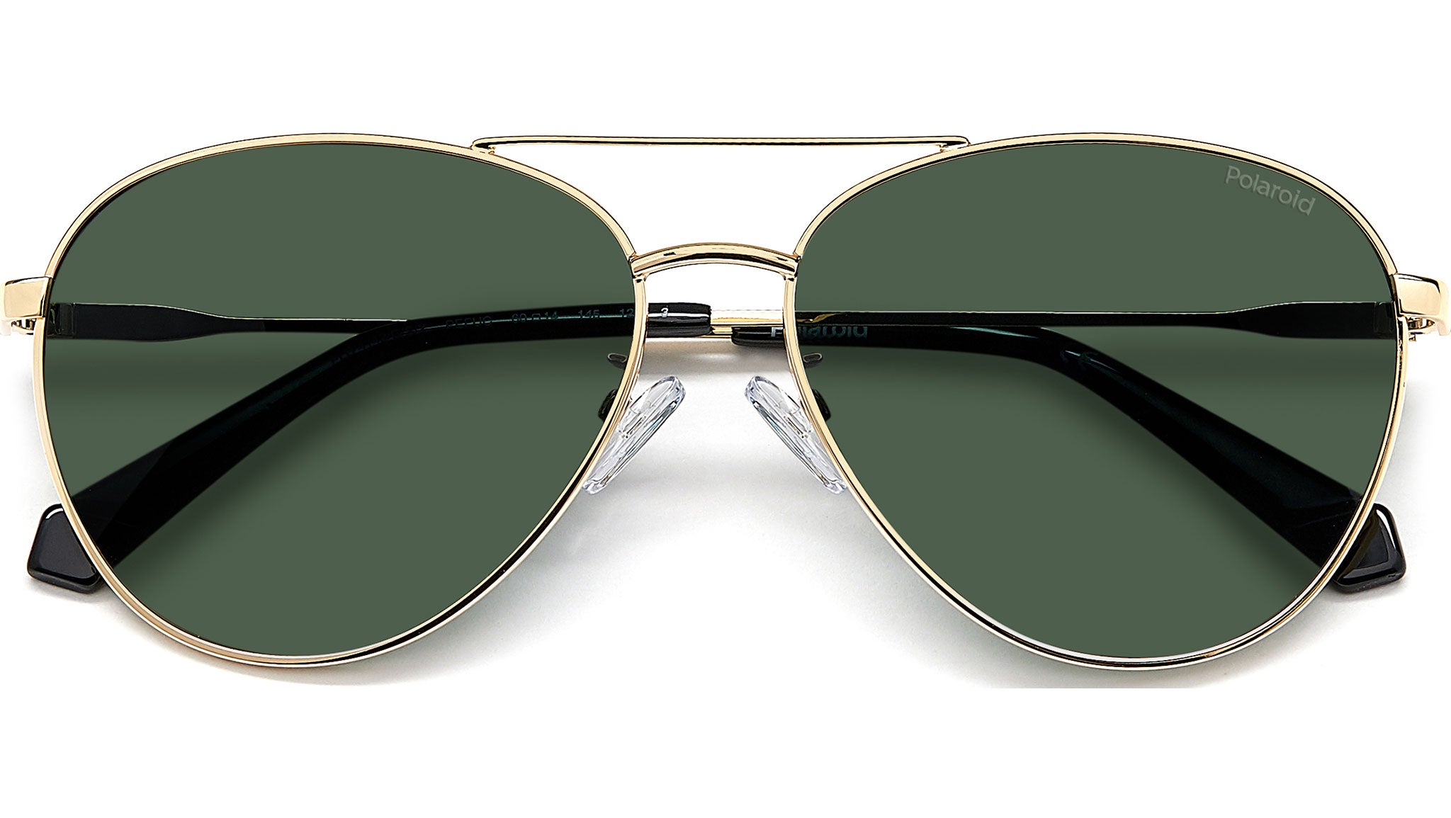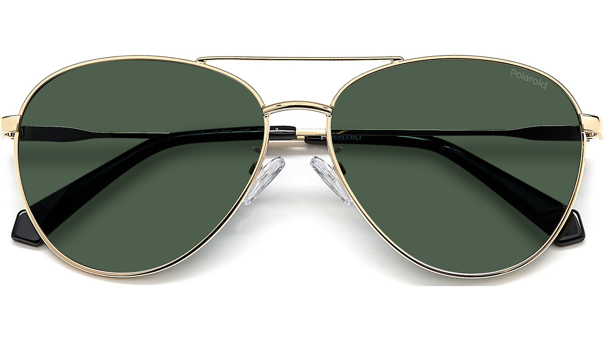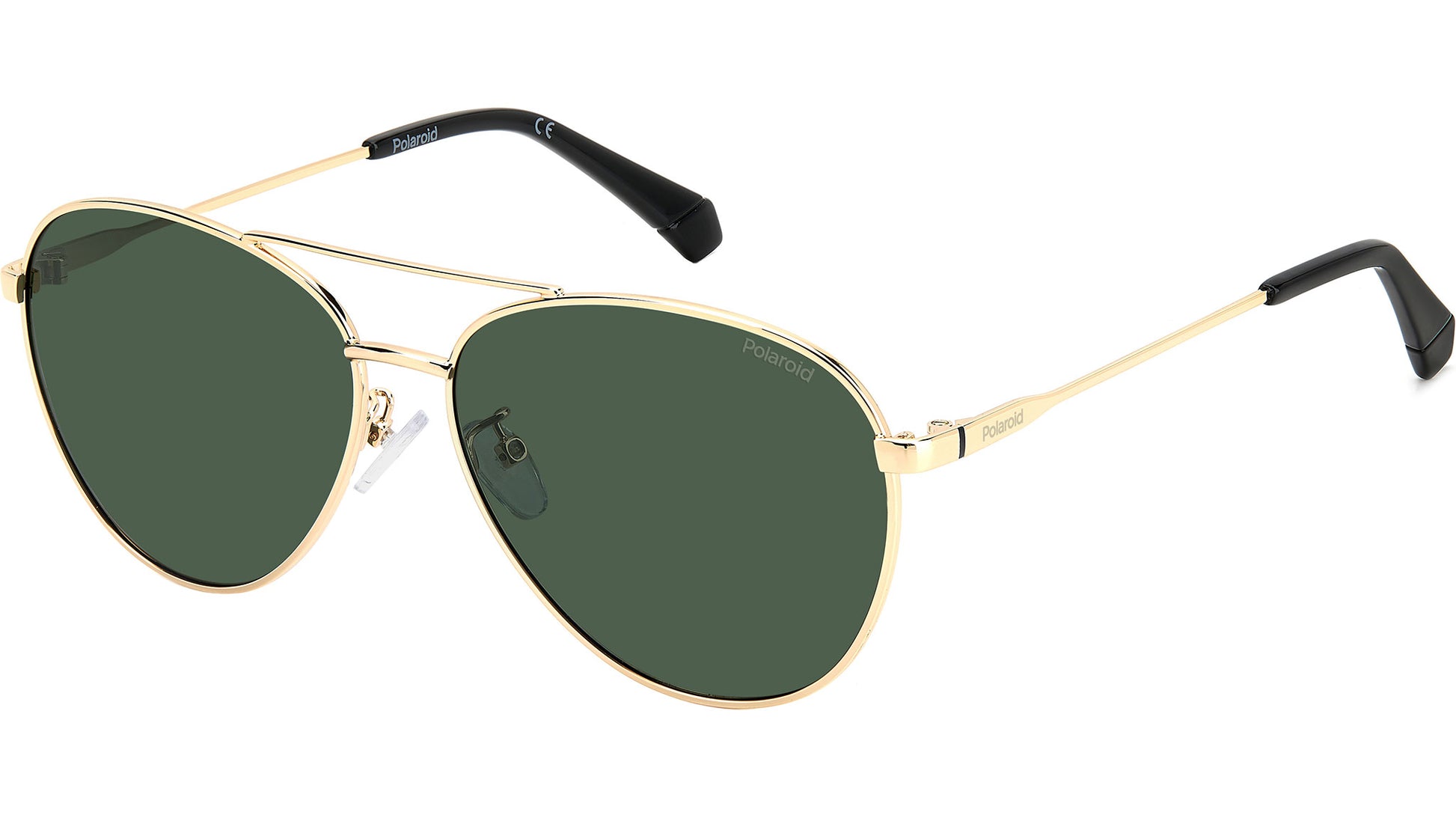 Polaroid PLD 4142/G/S/X PEF UC sunglasses for men and women, featuring gold green pilot metal frame and green polarized lenses. These aviator-front Polaroid men's sunglasses feature a double bridge and comfortable nose pads for a snug fit. A coloured detail on the end piece and contrast-colour temple tips complete this Polaroid style, which can be fitted with prescription lenses. Brand line: Essential. Style code: 205710. Color code: PEF UC. Authorized Polaroid online reseller. Your glasses will include the original case and accessories and are covered by a 12-month global warranty.