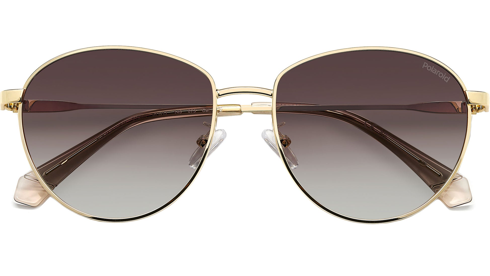 Polaroid PLD 4171/G/S/X 01Q LA sunglasses for women, featuring gold brown panthos metal frame and brown shaded polarized lenses. Women’s Polaroid sunglasses that will become an immediate-must have in any collection of accessories. They're a fail-proof choice, as the pantos shape looks good on everyone and can be worn with any outfit. The metal temples are trimmed by a fun colourful line detail and a laser-engraved logo. The promise of comfort has been kept: the lightweight stainless steel front rests on nose pads. The Global Fit adapts to all nose widths, and the frames can hold prescription lenses. Brand line: Essential. Style code: 206792. Color code: 01Q LA. Authorized Polaroid online reseller. Your glasses will include the original case and accessories and are covered by a 12-month global warranty.