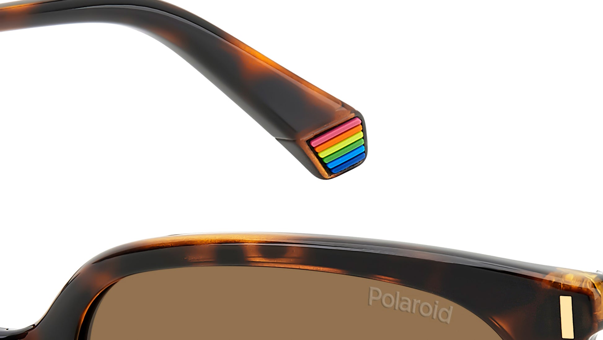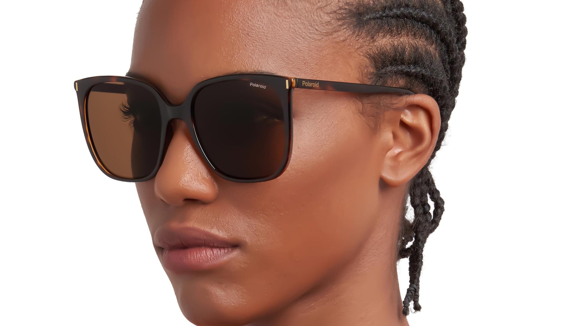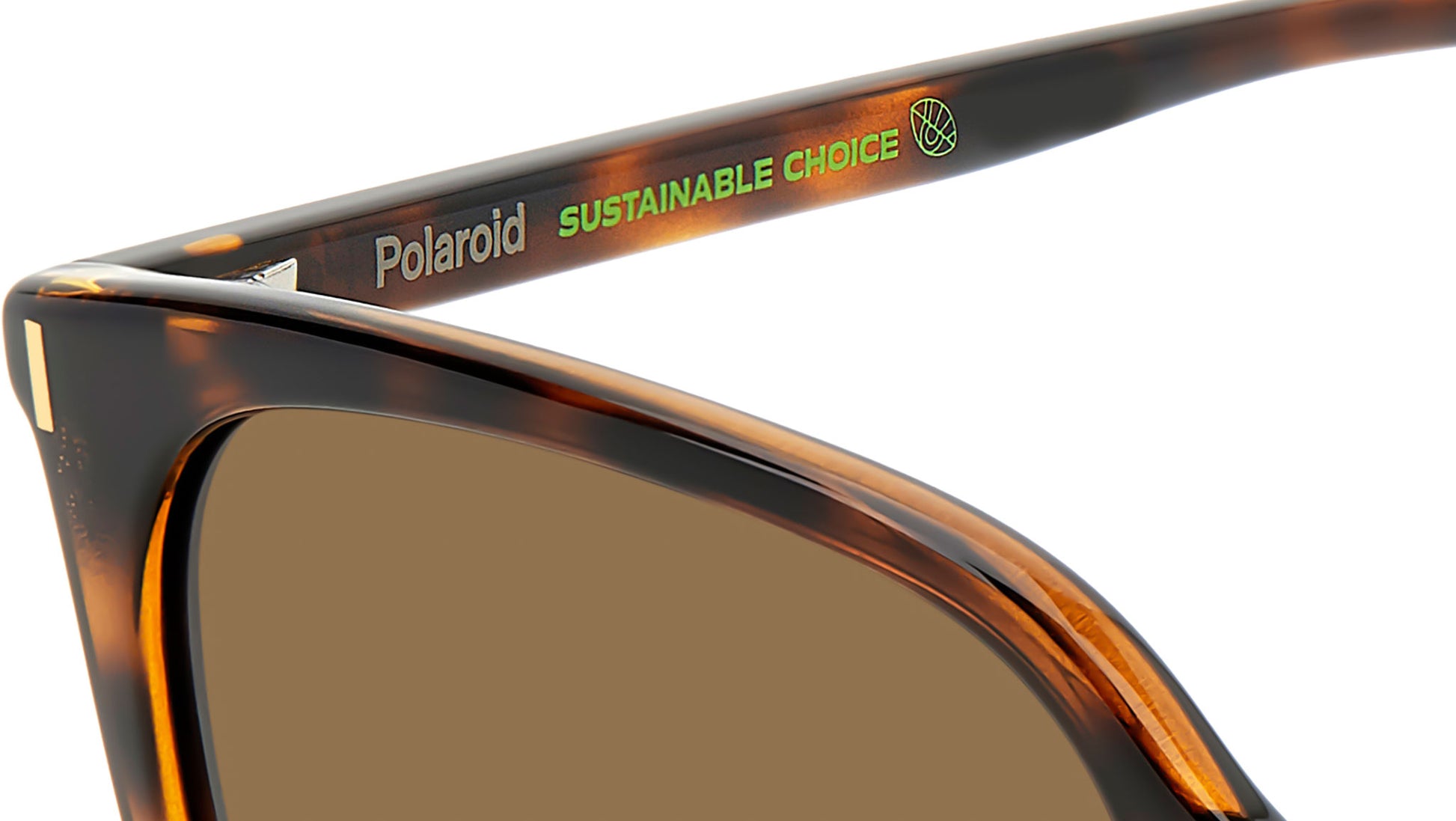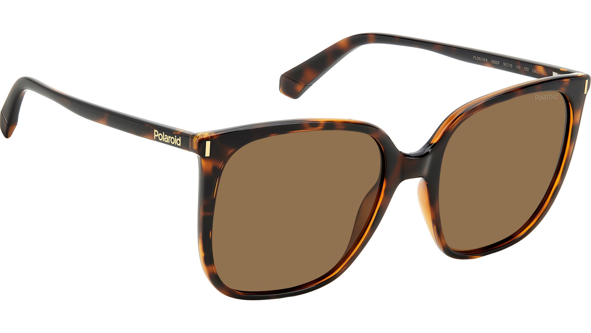 Polaroid PLD 6218/S 086 SP sunglasses for women, featuring havana squared polycarbonate frame and bronze polarized lenses. Slender shapes, playful details, and sustainable materials: a perfect trio in these Polaroid sunglasses for women. Fans of glamorous looks will love the butterfly shape of the lenses, which are polarized and trimmed by the Polaroid logo. Slender outlines create a lightweight frame, yet one that is sure to get noticed thanks to the 3D printed detail on the front. Polaroid's commitment to green fashion continues through the structure in eco-polycarbonate, offered in the season’s on-trend colours. Brand line: Cool. Style code: 206720. Color code: 086 SP. Authorized Polaroid online reseller. Your glasses will include the original case and accessories and are covered by a 12-month global warranty.