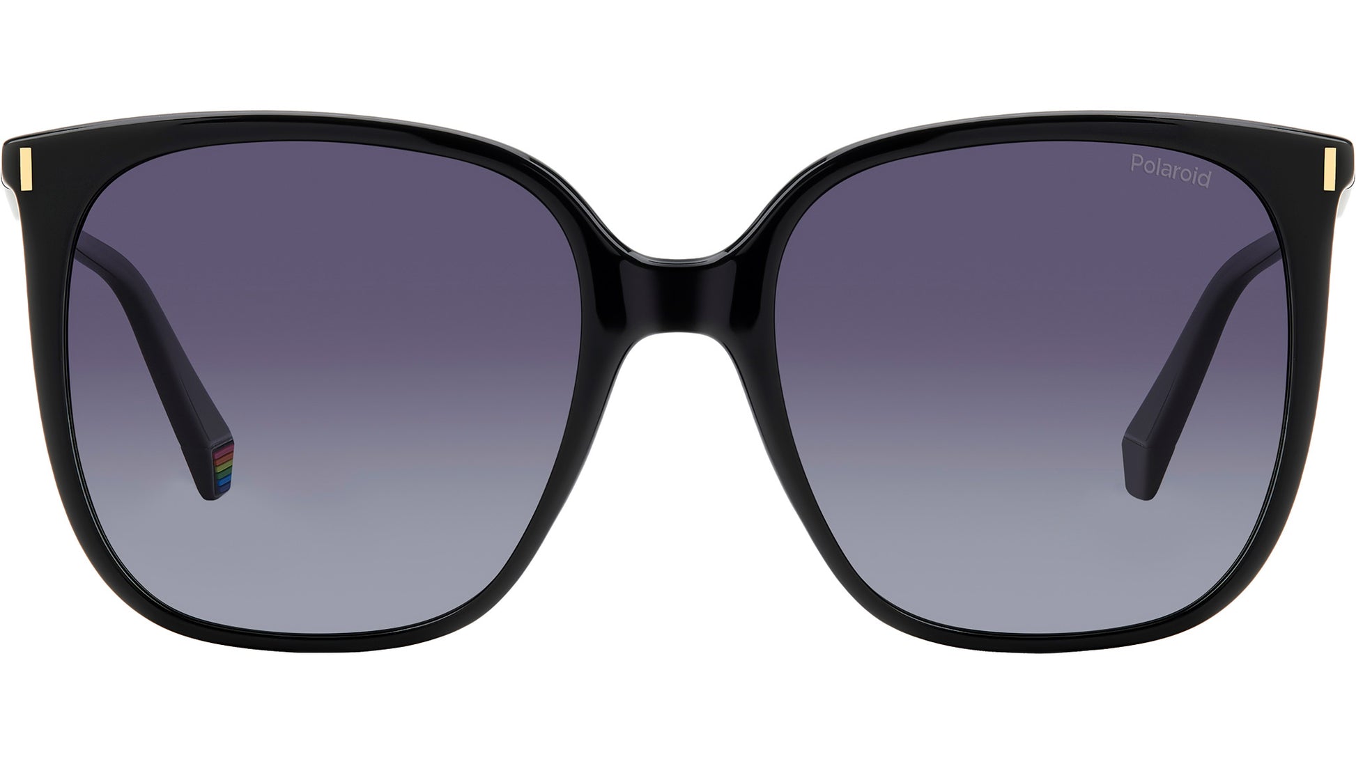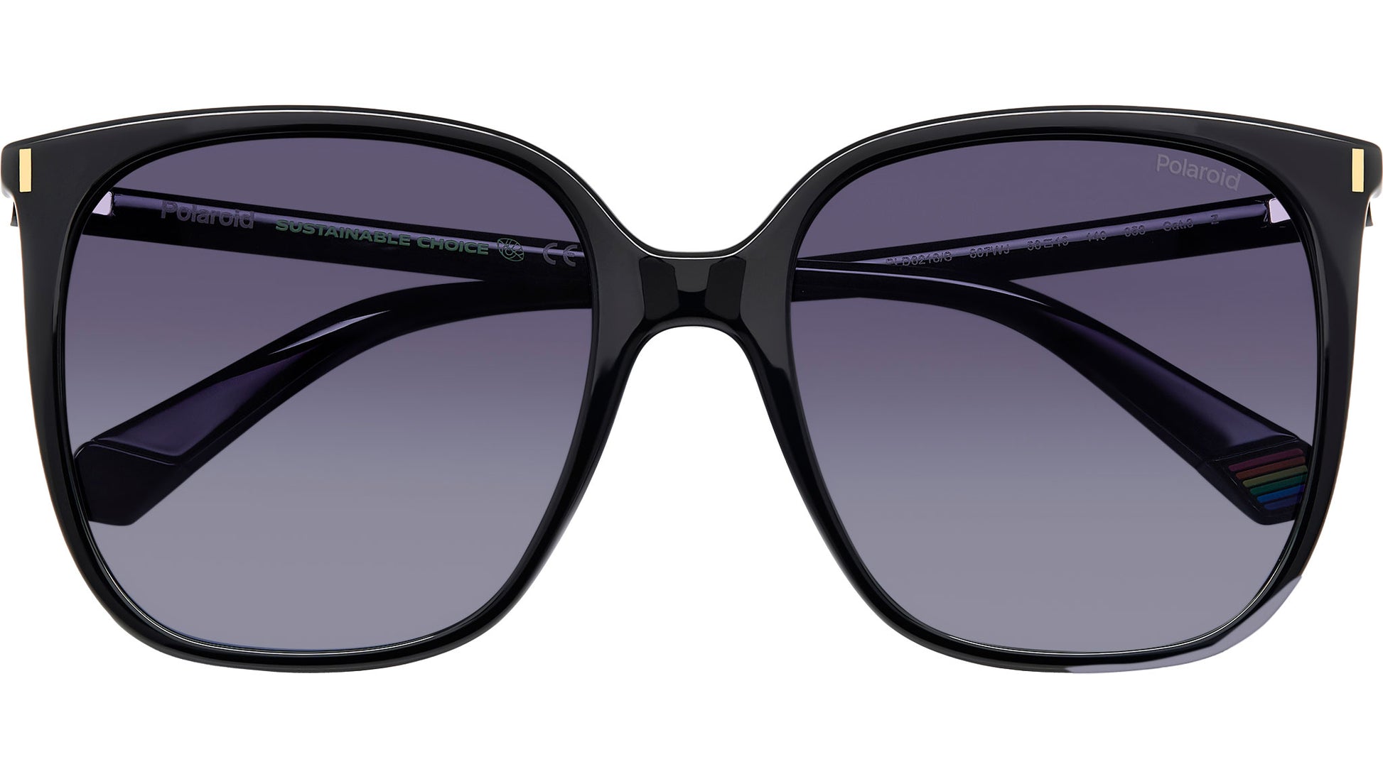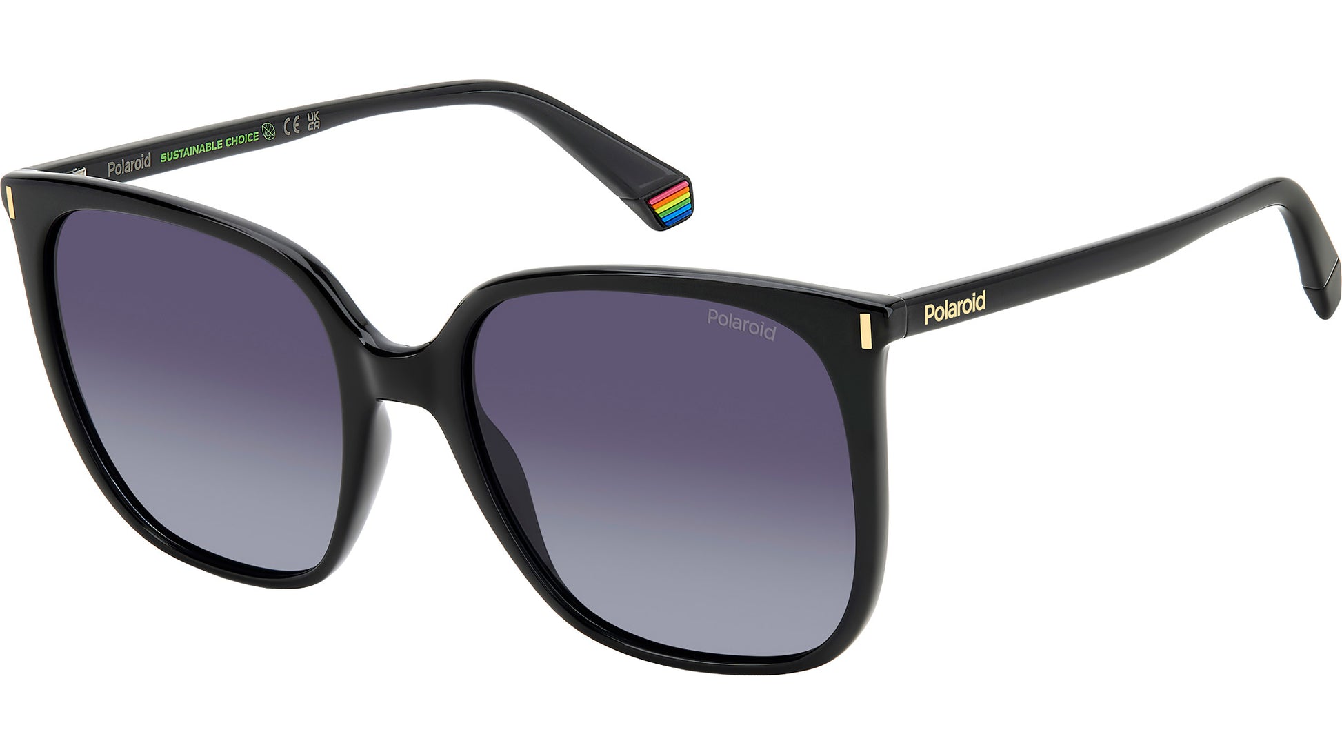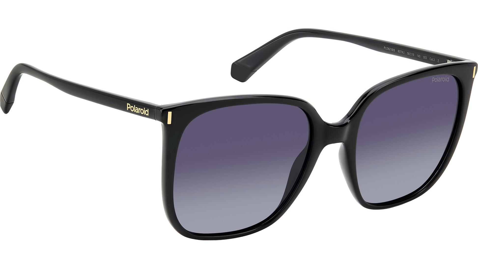 Polaroid PLD 6218/S 807 WJ sunglasses for women, featuring black squared polycarbonate frame and grey shaded polarized lenses. Slender shapes, playful details, and sustainable materials: a perfect trio in these Polaroid sunglasses for women. Fans of glamorous looks will love the butterfly shape of the lenses, which are polarized and trimmed by the Polaroid logo. Slender outlines create a lightweight frame, yet one that is sure to get noticed thanks to the 3D printed detail on the front. Polaroid's commitment to green fashion continues through the structure in eco-polycarbonate, offered in the season’s on-trend colours. Brand line: Cool. Style code: 206720. Color code: 807 WJ. Authorized Polaroid online reseller. Your glasses will include the original case and accessories and are covered by a 12-month global warranty.