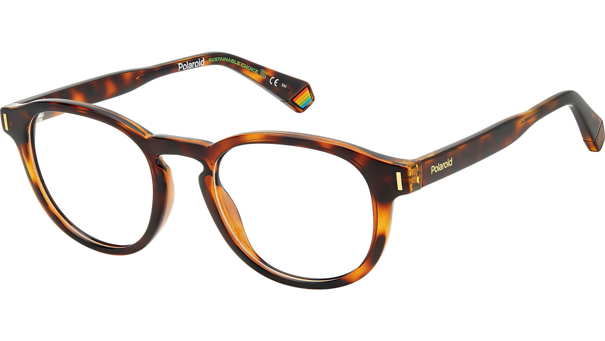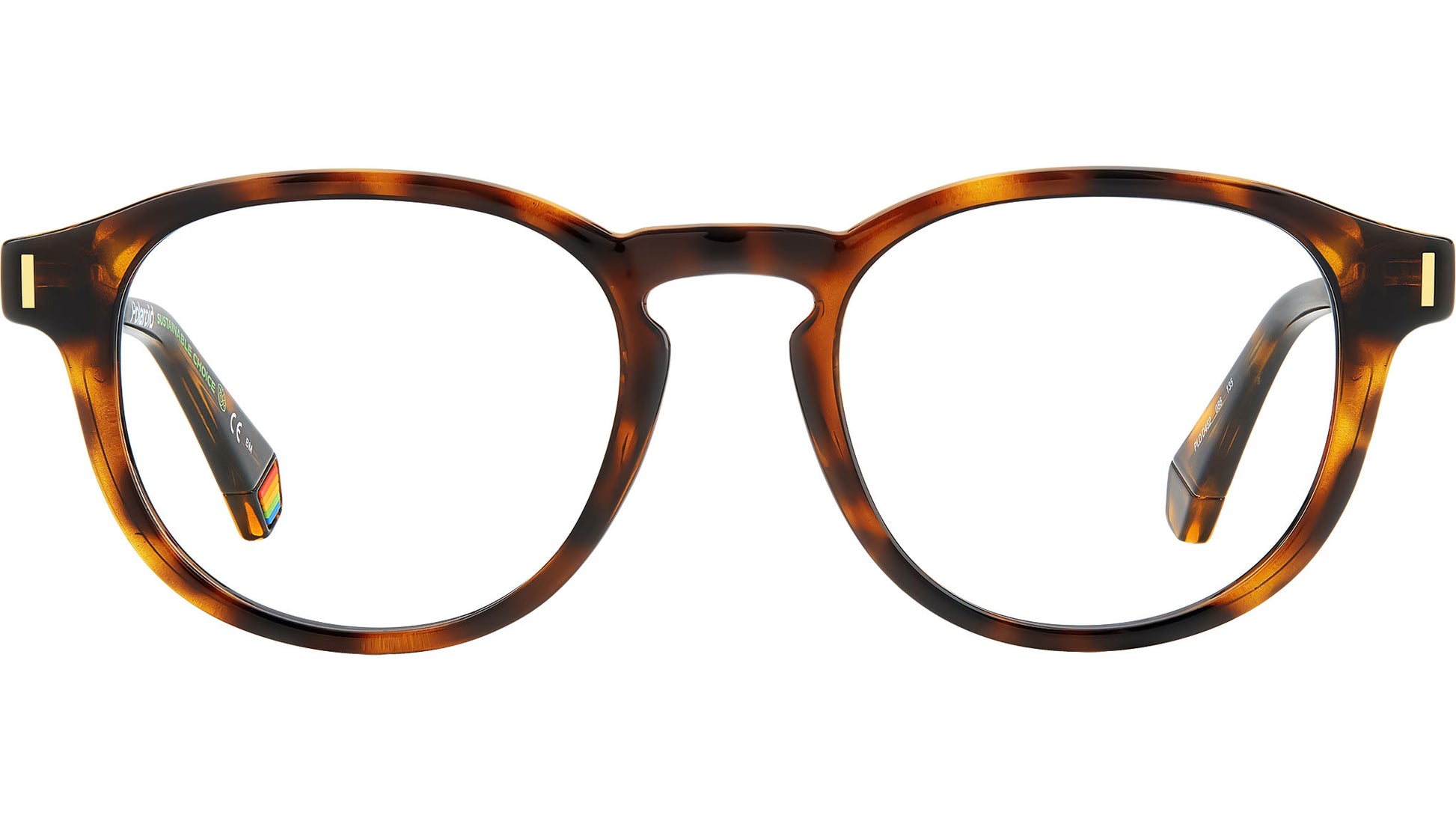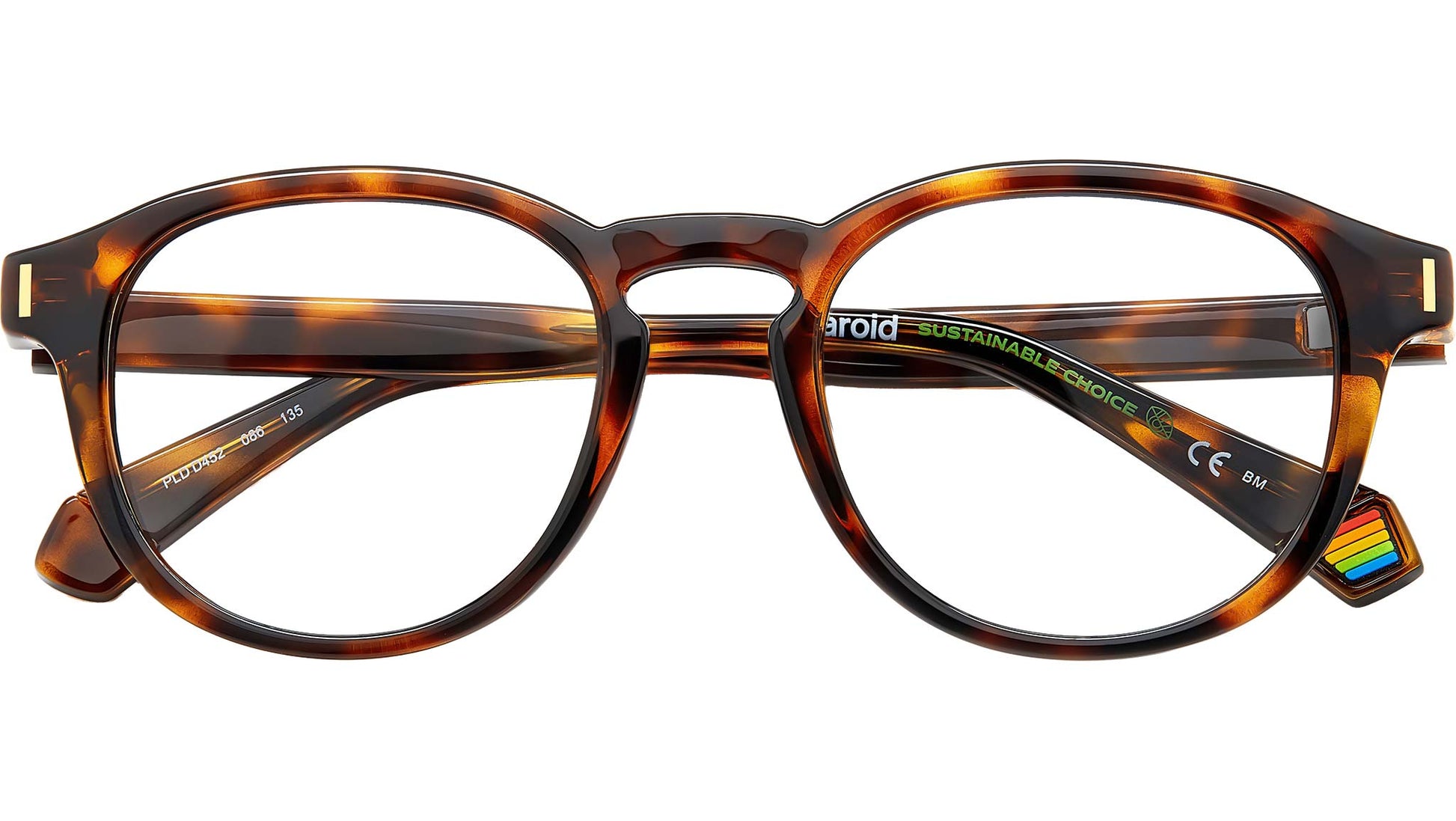 Polaroid PLD D452 086 glasses for men and women, featuring havana rectangular eco polyamide frame and demo lens lenses. For these eyeglasses, Polaroid has made a sustainable choice: the use of eco-polyamide, a type of plastic that derives from natural materials. Original elements trim this unisex accessory, including the unique temples that taper around the ears, Polaroid's iconic rainbow rubber insert on the end tips, and metal rivets on the oval frames. Brand line: Cool. Style code: 105812. Color code: 086. Authorized Polaroid online reseller. Your glasses will include the original case and accessories and are covered by a 12-month global warranty.