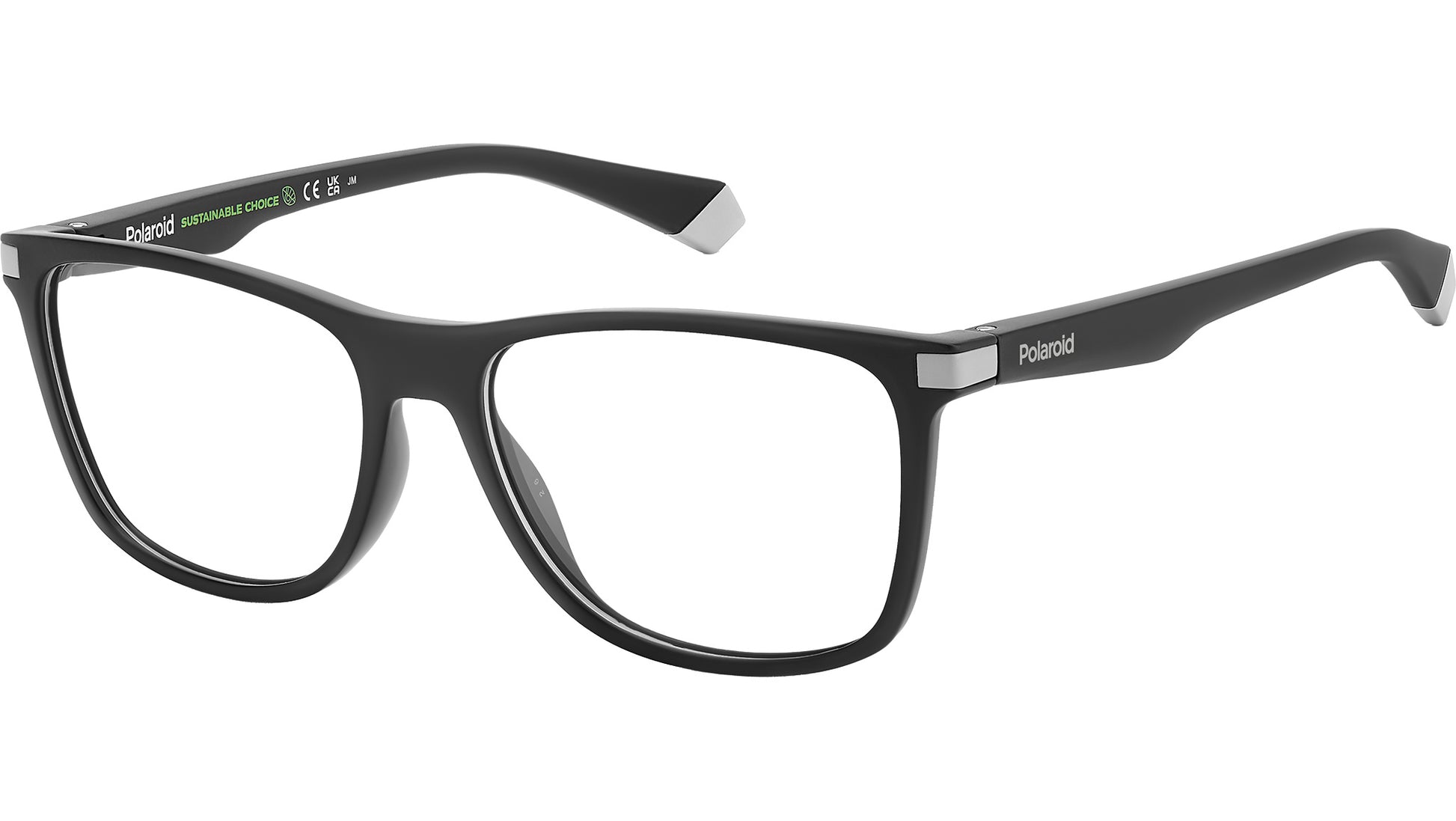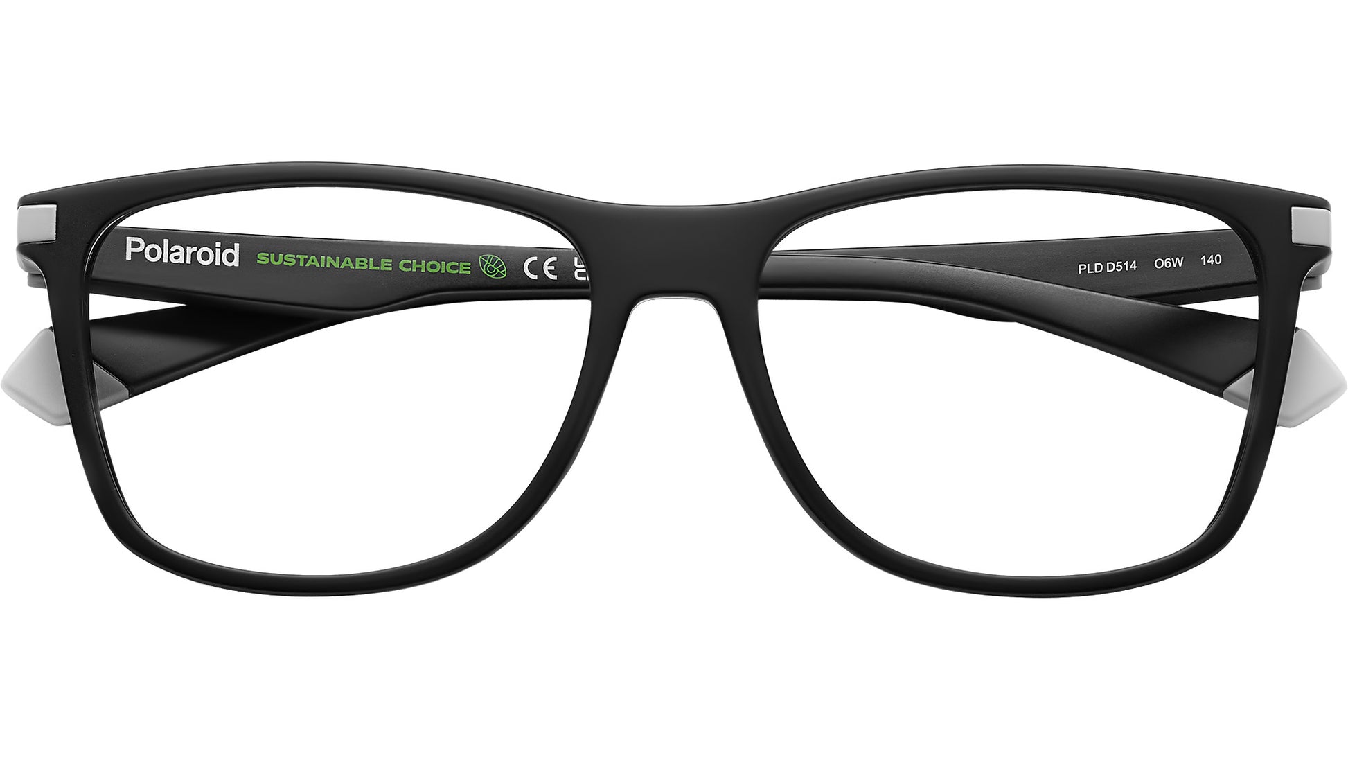 Polaroid PLD D514 O6W glasses for men, featuring matte black grey rectangular eco co-polyester frame and demo lens lenses. Sporty hobbies and colour blocking have inspired these eyeglasses by Polaroid. And, why not? With its clean lines, the frame creates a high-performance look while embracing Polaroid's commitment to environmentally friendly fashion. Indeed, they’re made of eco-polyester, a naturally derived plastic. The colours offered are understated, enlivened by an insert on the hinge that's coordinated with the logo and the detail on the end tips. Brand line: Active. Style code: 107718. Color code: O6W. Authorized Polaroid online reseller. Your glasses will include the original case and accessories and are covered by a 12-month global warranty.