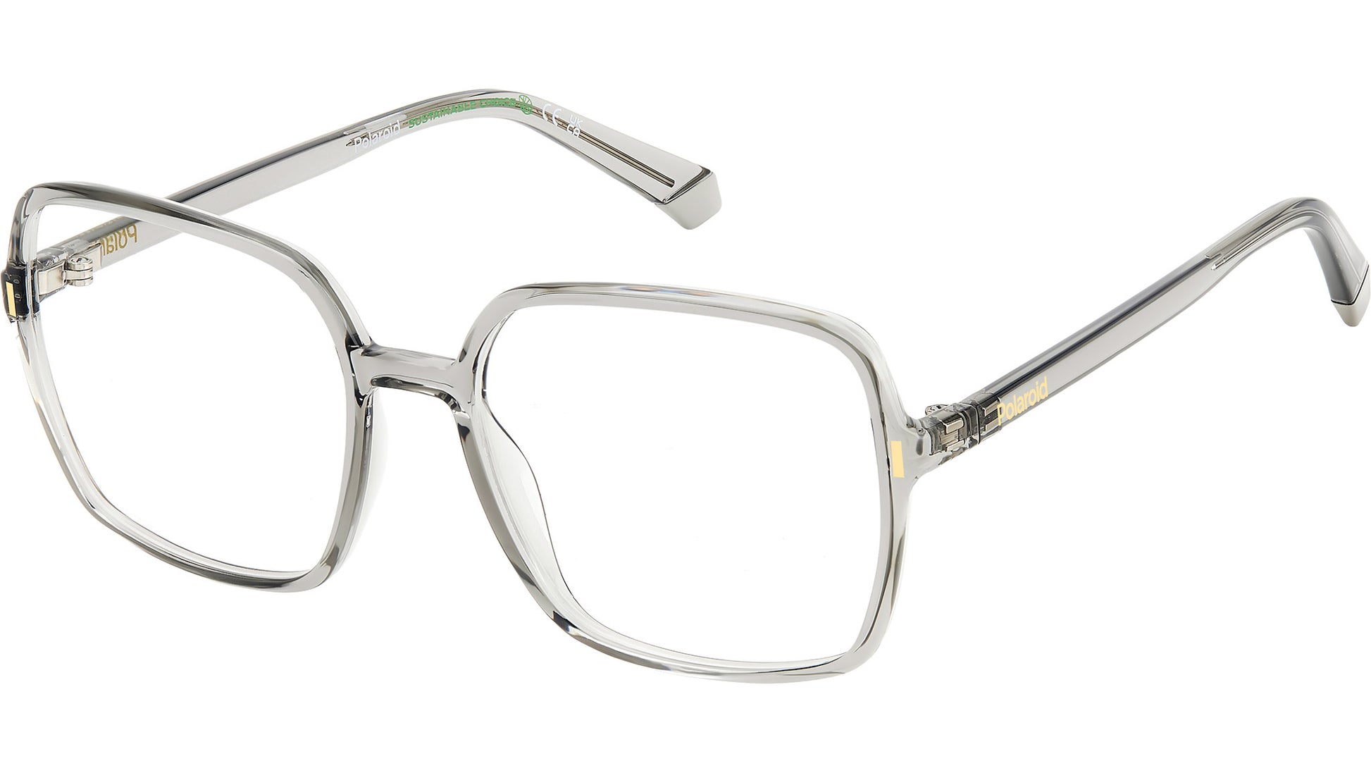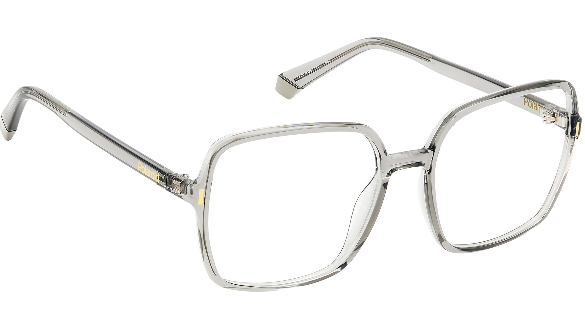 Polaroid PLD D526 KB7 glasses for women, featuring grey squared eco polyamide frame and demo lens lenses. Much more than a simple accessory, these Polaroid eyeglasses for women bring a dash of playful elegance to everyday looks. The square shape of the frames is to thank, a wear-anywhere look with all-season versatility, made contemporary by a minimalist structure. And what about the available hues? They're a fresh twist in full Polaroid style, accentuated by a pop of colour on the end tips. The eco-polyamide structure stays true to the brand's green commitment. Brand line: Cool. Style code: 108102. Color code: KB7. Authorized Polaroid online reseller. Your glasses will include the original case and accessories and are covered by a 12-month global warranty.