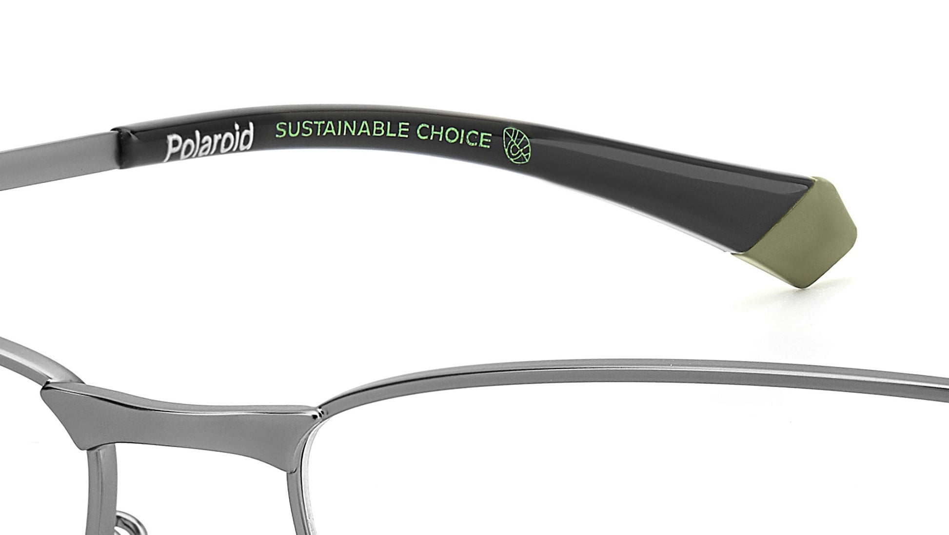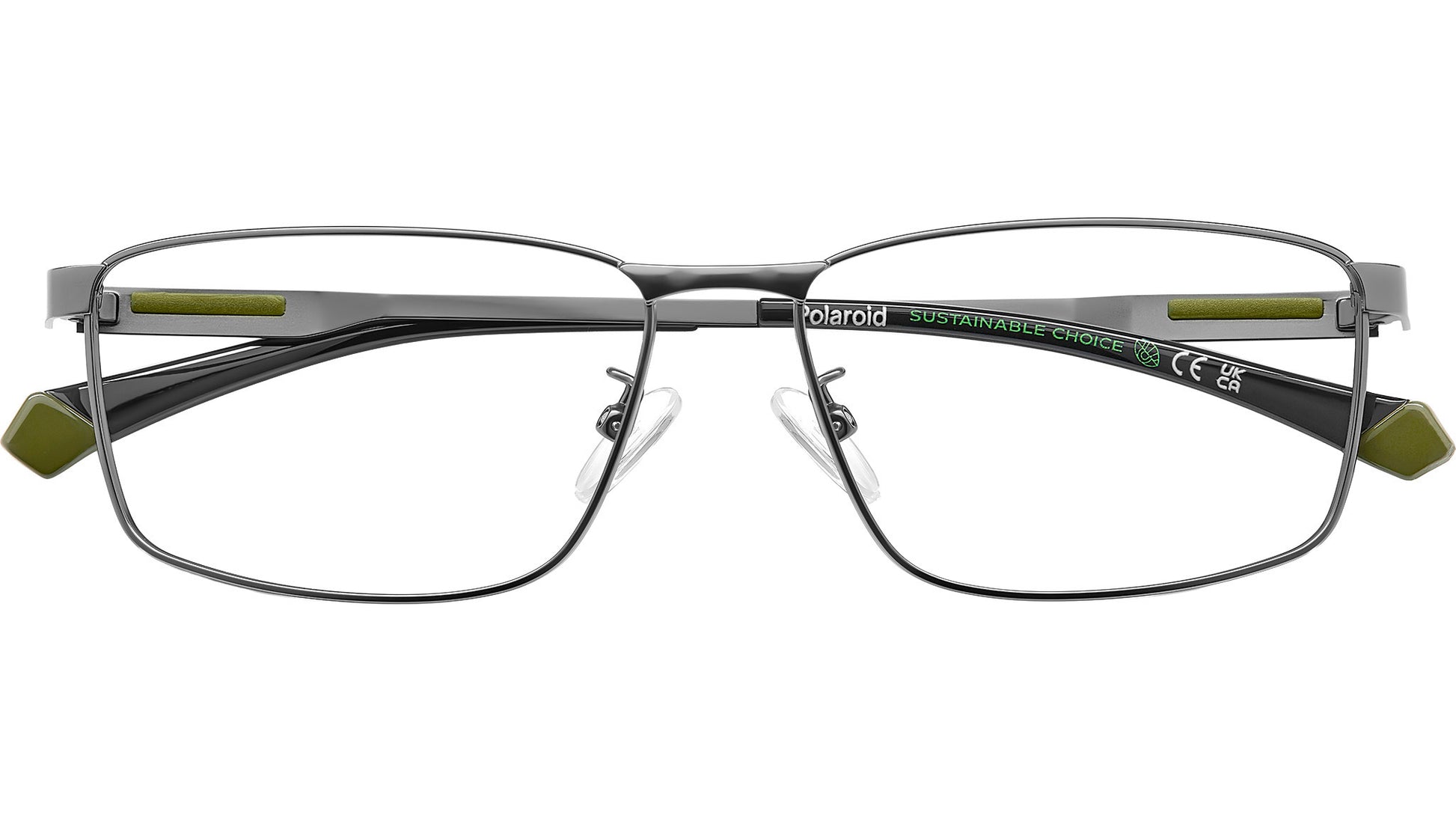 Polaroid PLD D534/G R80 glasses for men, featuring matte dark ruthenium rectangular metal frame and demo lens lenses. These men's eyeglasses by Polaroid feature a rectangular shape, minimalist outlines and a sporty attitude. Part of the ‘Sustainable Choice’ collection, they're in recycled metal, a concrete, tangible expression of Polaroid's green commitment. Their practical character comes through in the technical details, aimed at comfort: lightweight construction, adjustable nose pads and a Global Fit that is truly perfect for everyone. Available in two lens sizes. Brand line: Active. Style code: 108071. Color code: R80. Authorized Polaroid online reseller. Your glasses will include the original case and accessories and are covered by a 12-month global warranty.
