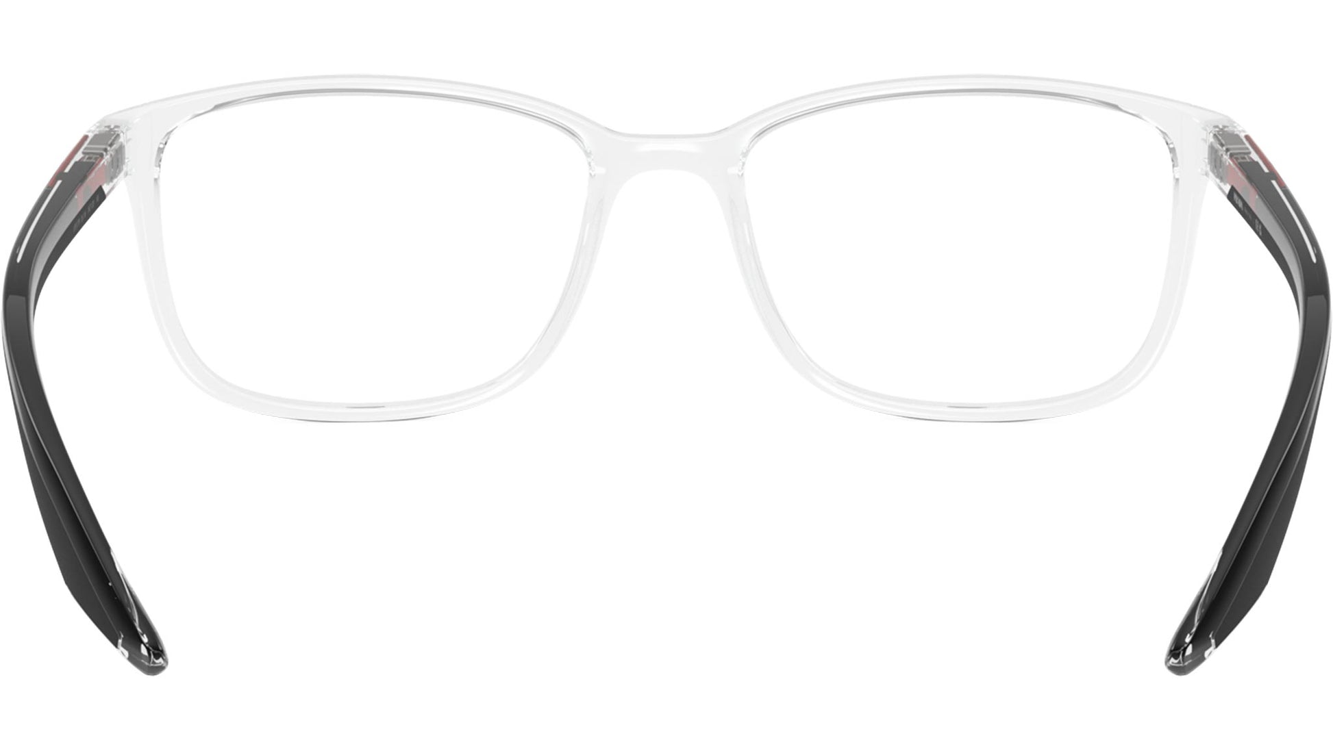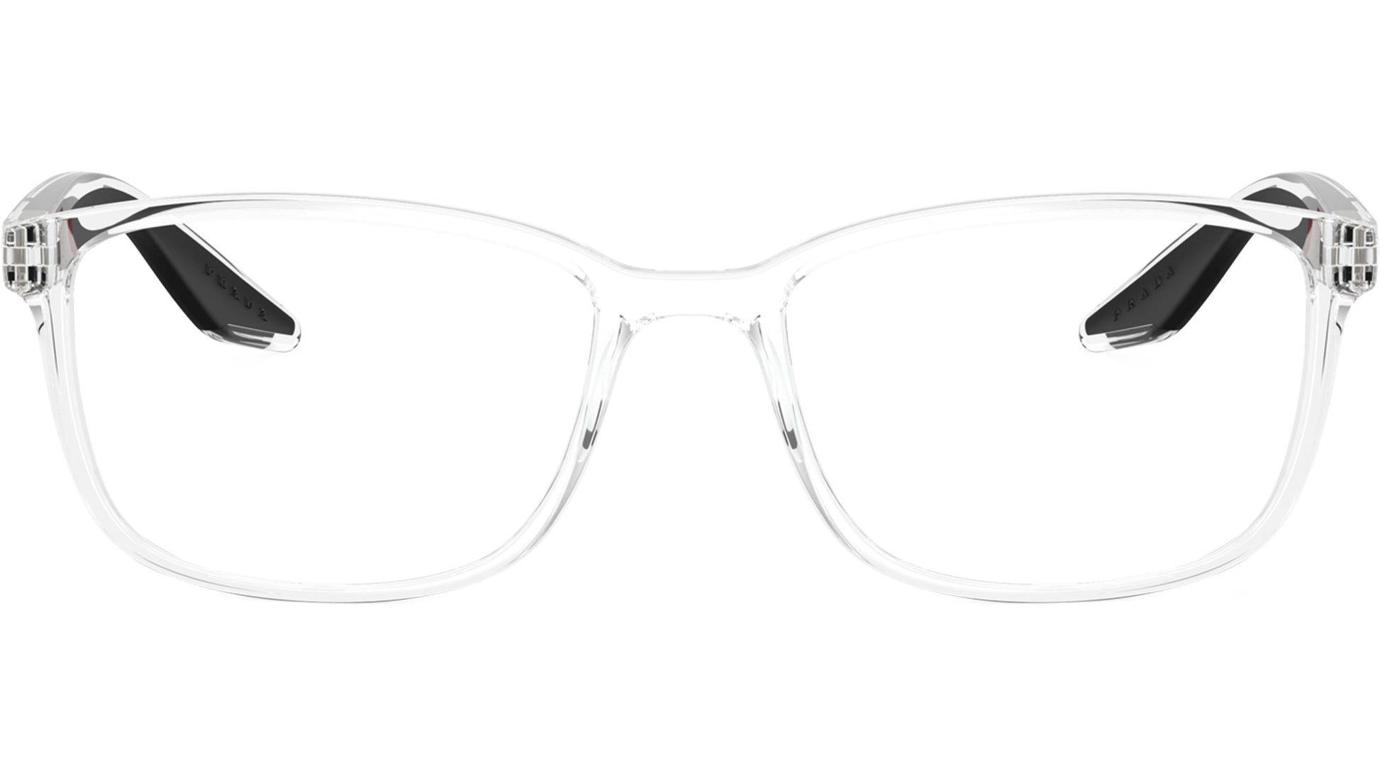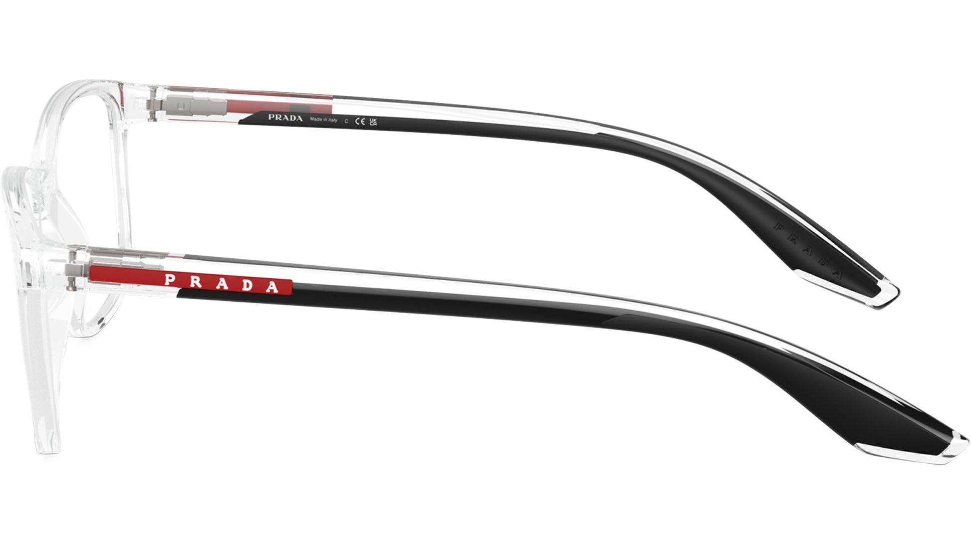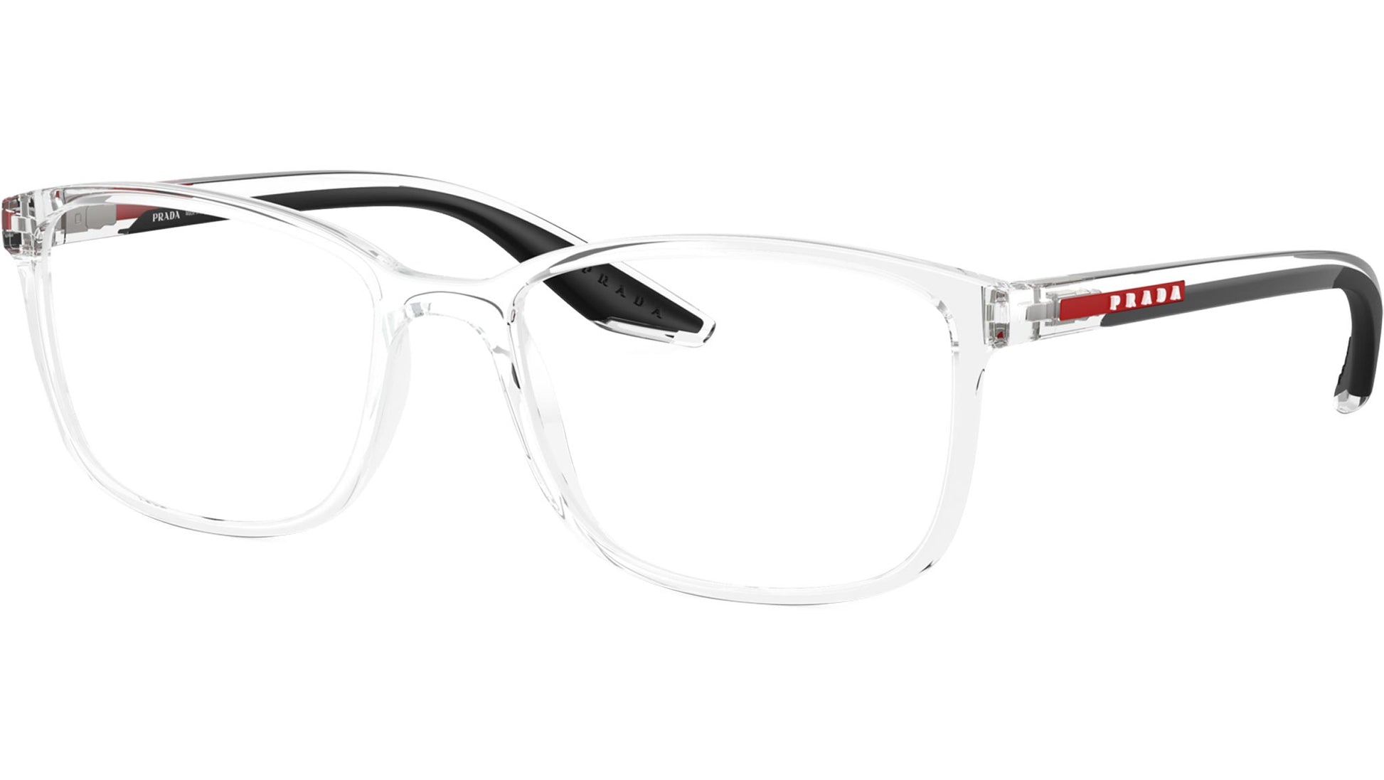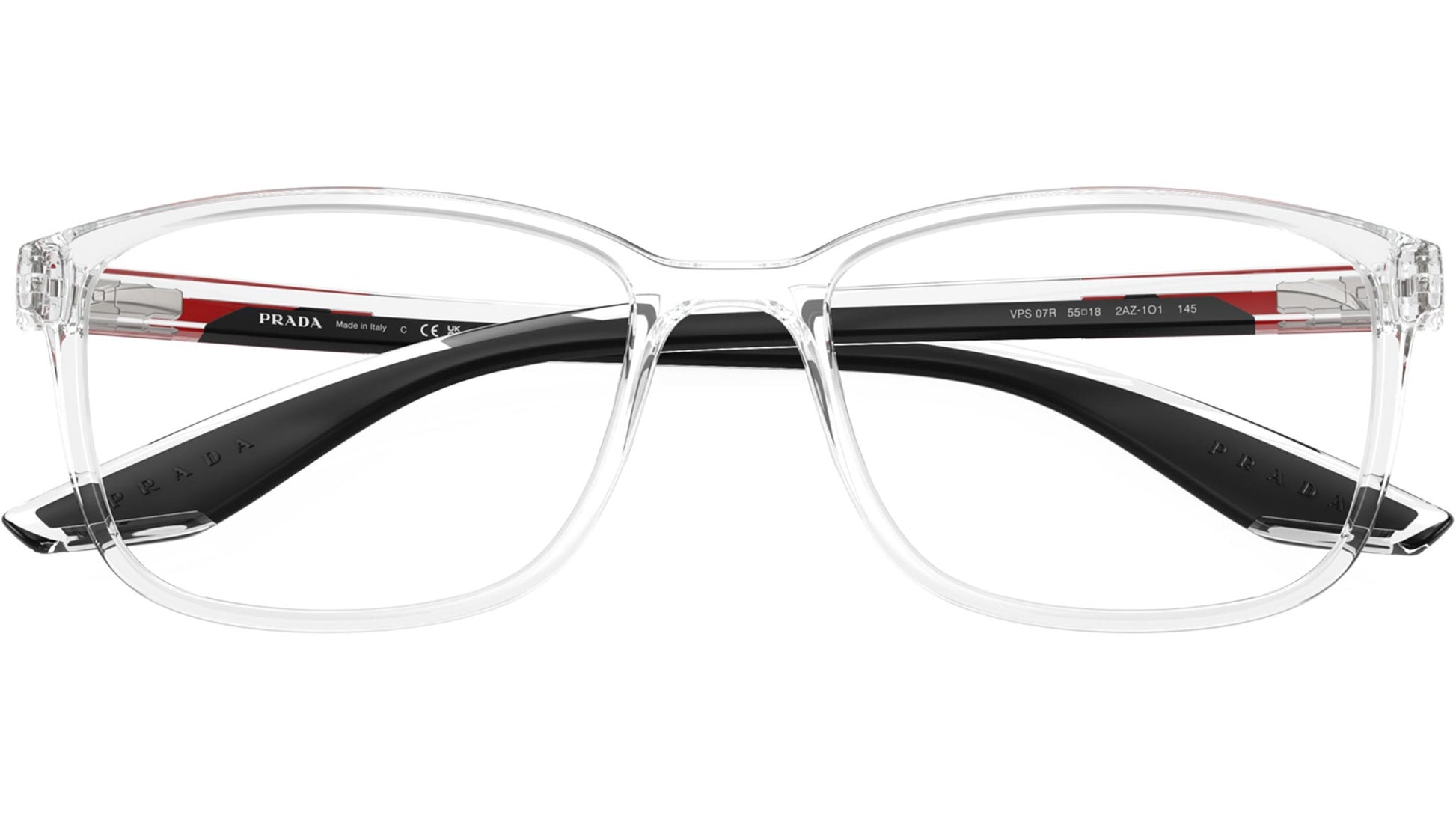 Prada Linea Rossa PS 07RV 2AZ1O1 glasses for men, featuring crystal d-frame injection frame and demo lenses. High bridge fit. Brand line: Lifestyle. Style code: PS07RV. Color code: 2AZ1O1. Made in Italy. Authorized Prada Sport online reseller. Your glasses will include the original case and accessories and are covered by a 12-month global warranty.