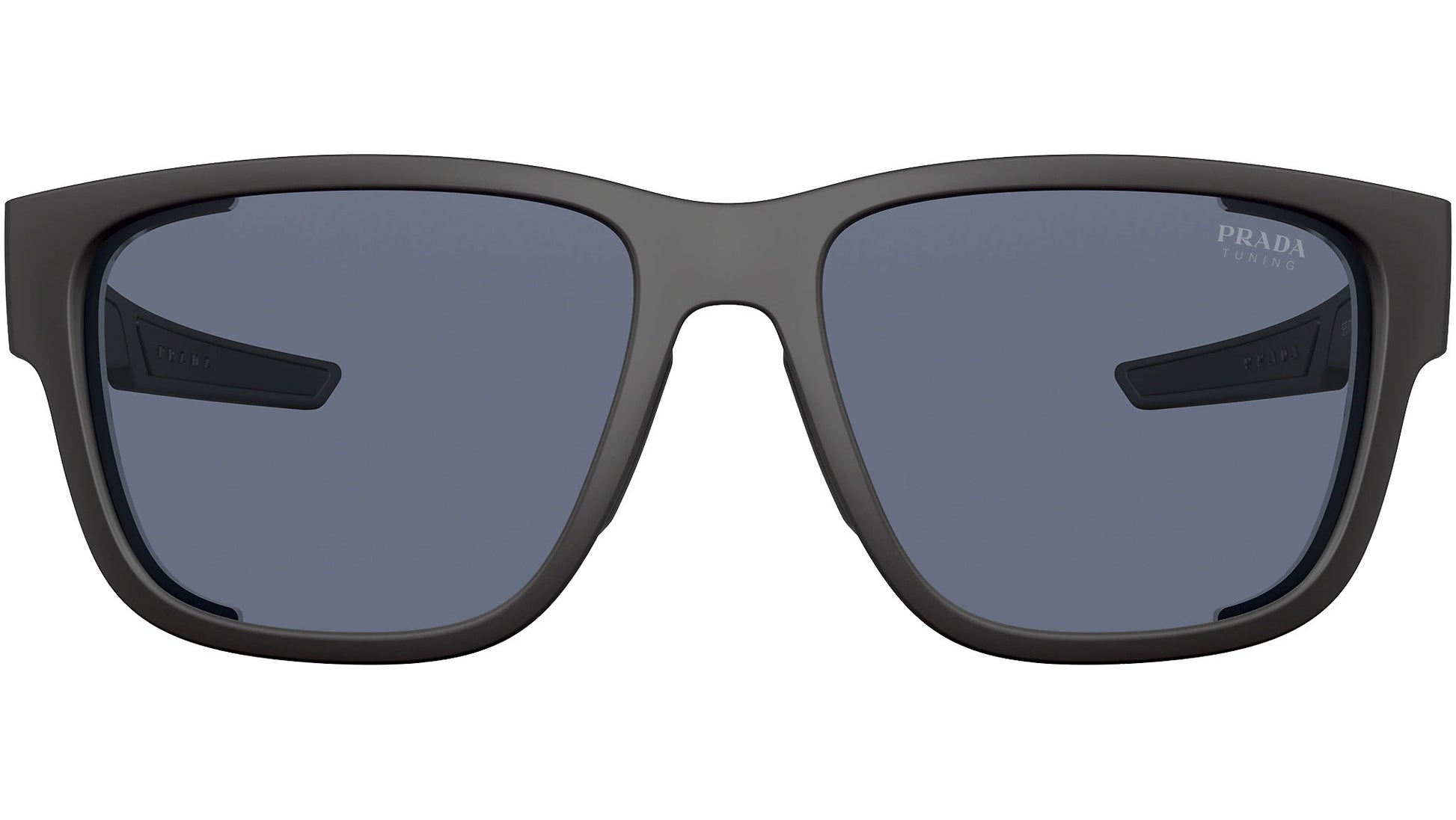 Prada Linea Rossa sunglasses model PS 07WS black rubber frame variant, color code DG009R with blue lens. Prada Linea Rossa Sun Collection conveys an everyday casual style with all the quality and craftsmanship of the Prada brand.