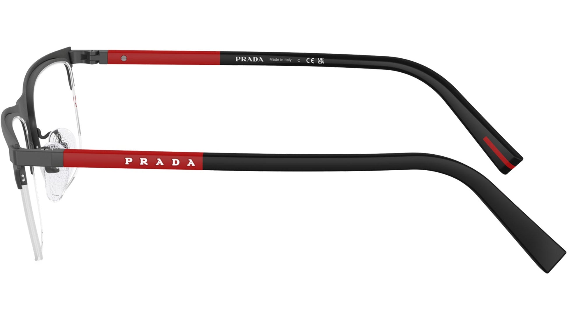 Prada Linea Rossa PS 50RV 06P1O1 glasses for men, featuring grey rubber d-frame metal frame and demo lenses. Adjustable nosepads. Brand line: Lifestyle. Style code: PS50RV. Color code: 06P1O1. Made in Italy. Authorized Prada Sport online reseller. Your glasses will include the original case and accessories and are covered by a 12-month global warranty.