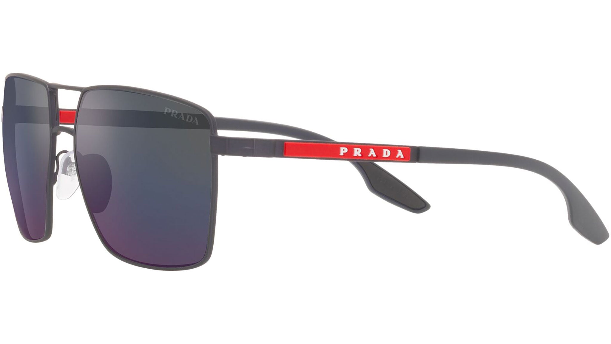 Prada Linea Rossa sunglasses model PS 50WS blue rubber frame variant, color code UR701G with dark grey ar external lens. Prada Linea Rossa Sun Collection conveys an everyday casual style with all the quality and craftsmanship of the Prada brand.