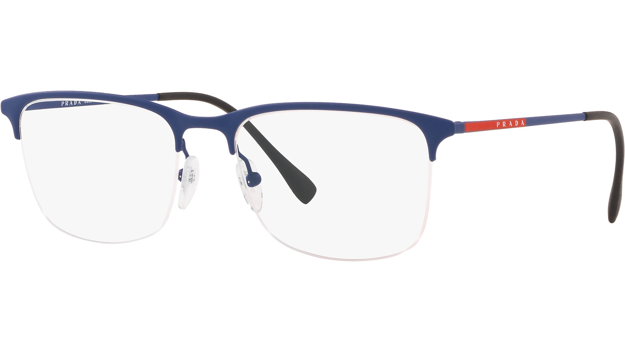 Prada Linea Rossa Eyewear Collection model PS 54IV, blue rubber frame variant, color code 5651O1. A new perspective, a fusion of sportswear and contemporary elegance: the Prada Linea Rossa Eyewear Collection conveys an everyday casual style with all the quality and craftsmanship of the Prada brand.