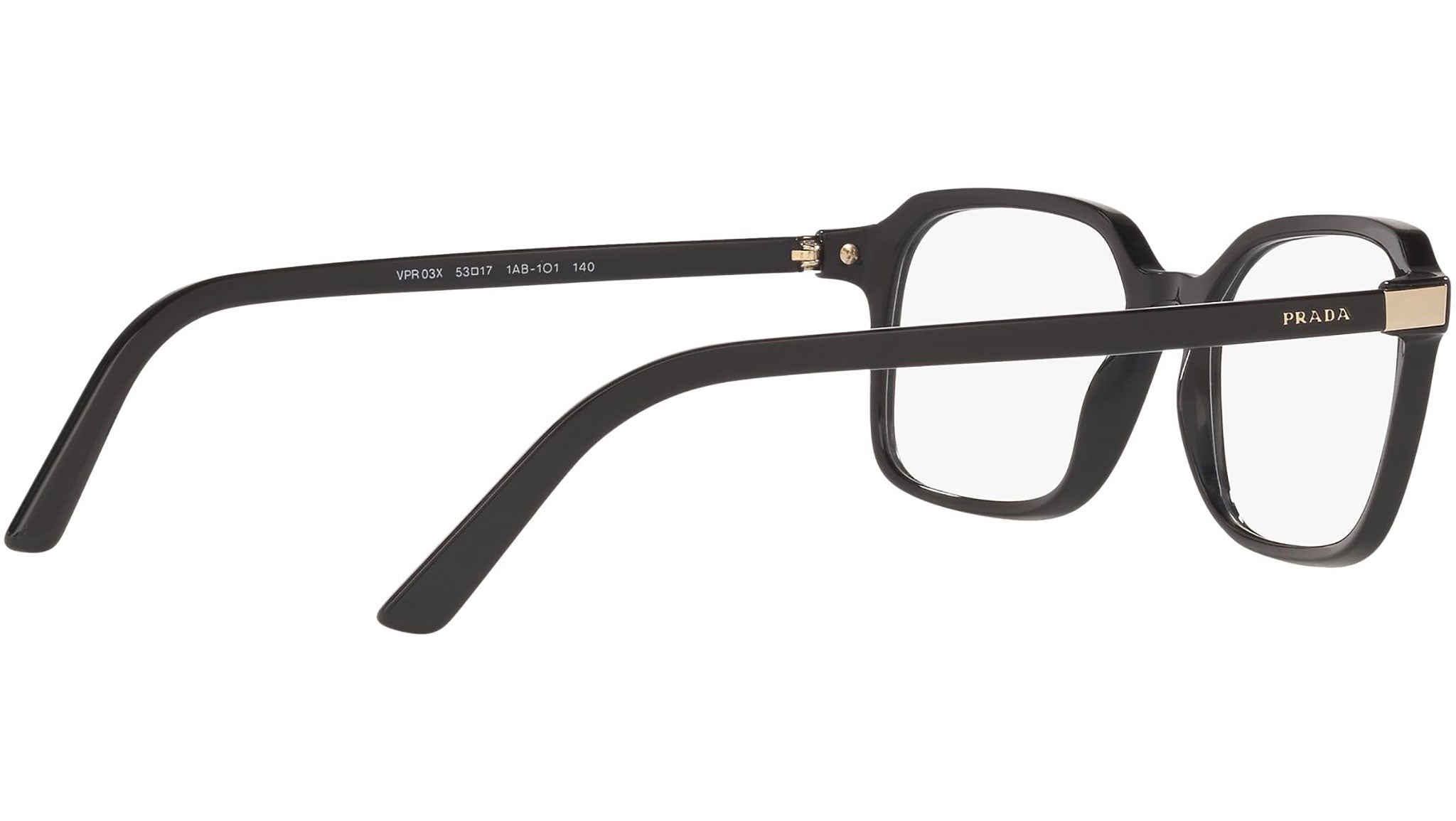 Prada Eyewear Collection model PR 03XV, black frame variant, color code 1AB1O1. Prada represents the best of Italian culture and tradition. It is one of the most innovative, prestigious and widely recognized brands in the fashion and luxury goods industries, with a keen attention to details and new trends.
