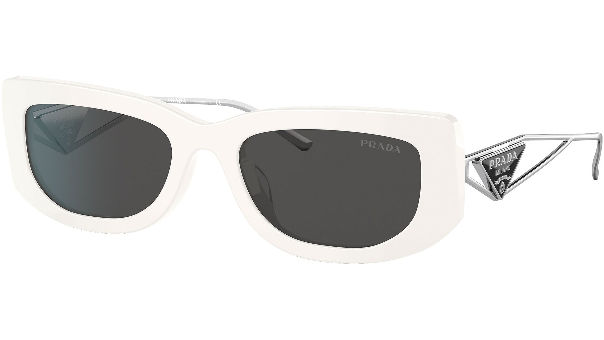 Prada sunglasses model PR 14YS talc frame variant, color code 1425S0 with dark grey lens. Prada represents the best of Italian culture and tradition. It is one of the most innovative, prestigious and widely recognized brands in the fashion and luxury goods industries, with a keen attention to details and new trends.