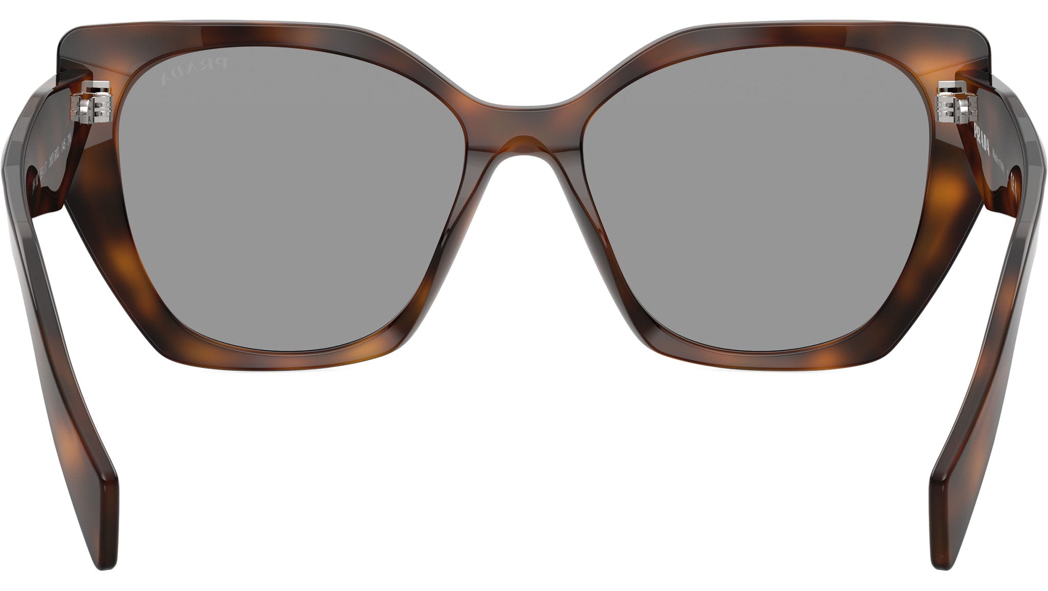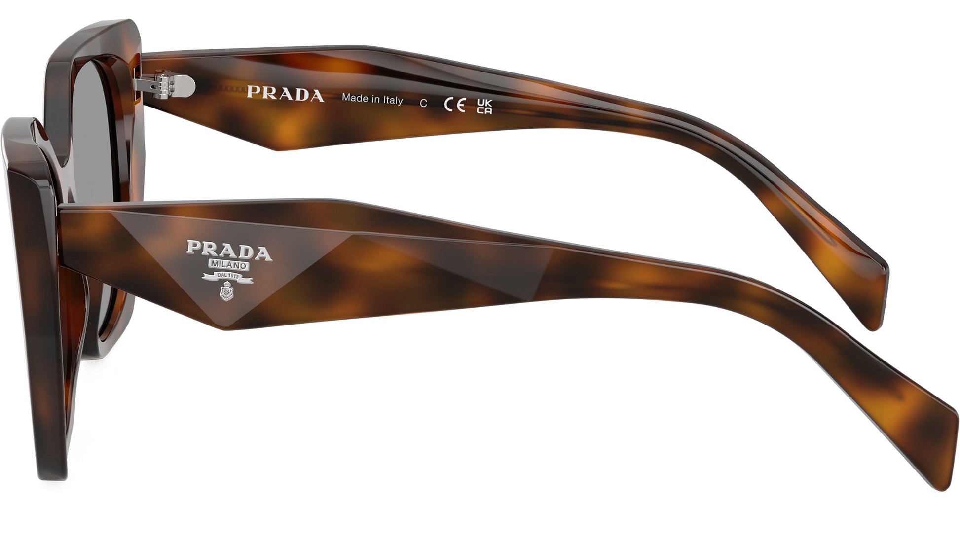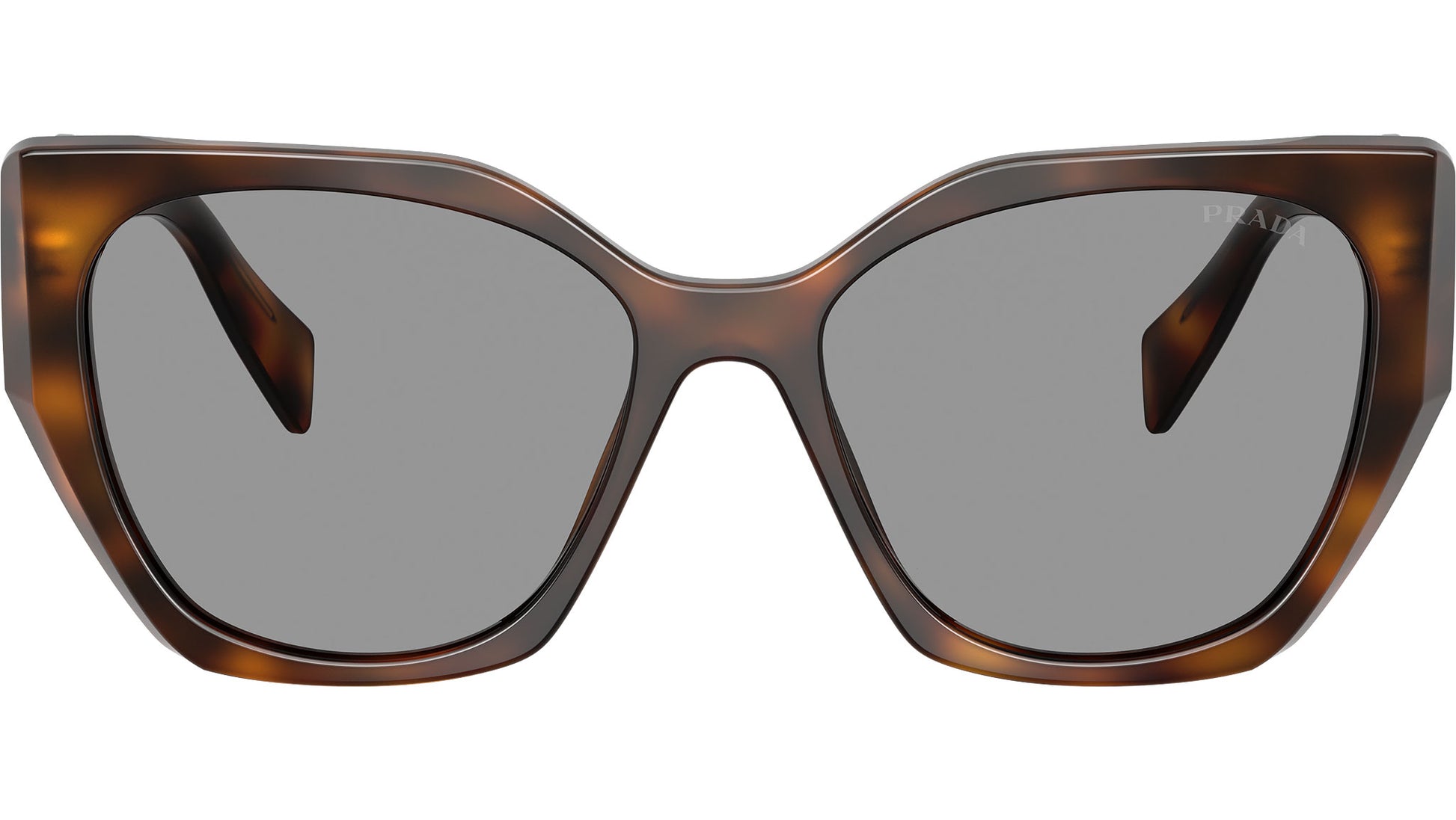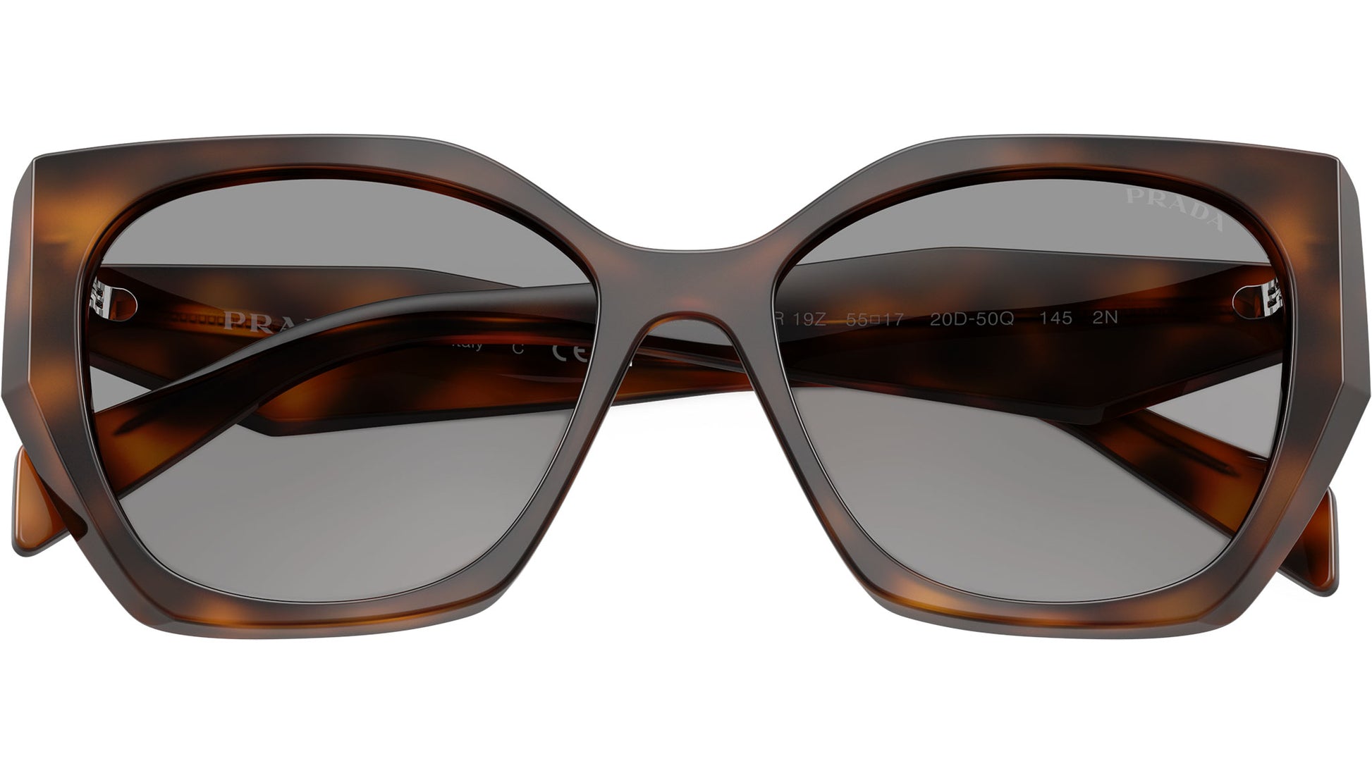 Prada PR 19ZS 20D50Q sunglasses for women, featuring juniper tortoise d-frame acetate frame and grey bio polyamide lenses. High bridge fit. Brand line: Catwalk. Style code: PR19ZS. Color code: 20D50Q. Made in Italy. Authorized Prada online reseller. Your glasses will include the original case and accessories and are covered by a 12-month global warranty.