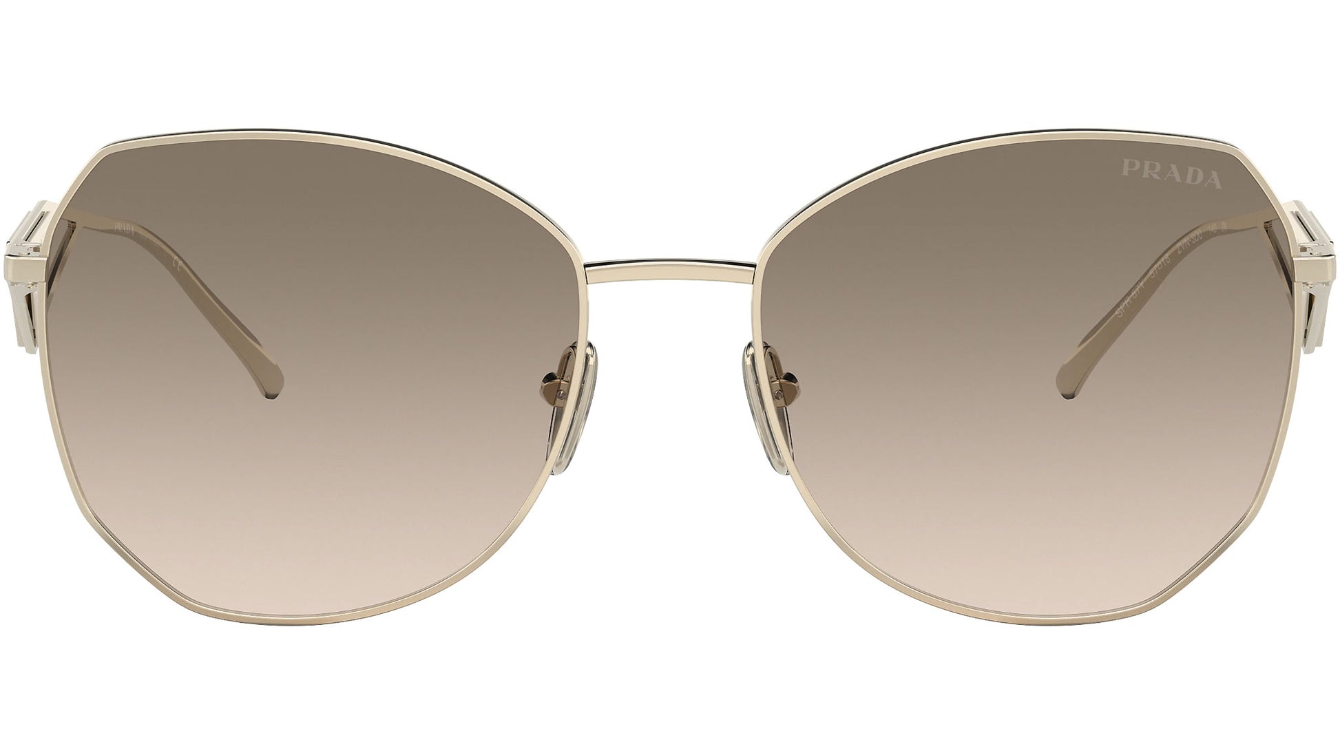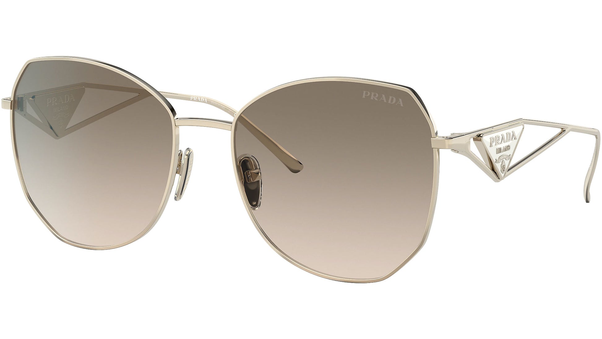 Prada sunglasses model PR 57YS pale gold frame variant, color code ZVN3D0 with light brown grad light grey lens. Prada represents the best of Italian culture and tradition. It is one of the most innovative, prestigious and widely recognized brands in the fashion and luxury goods industries, with a keen attention to details and new trends.
