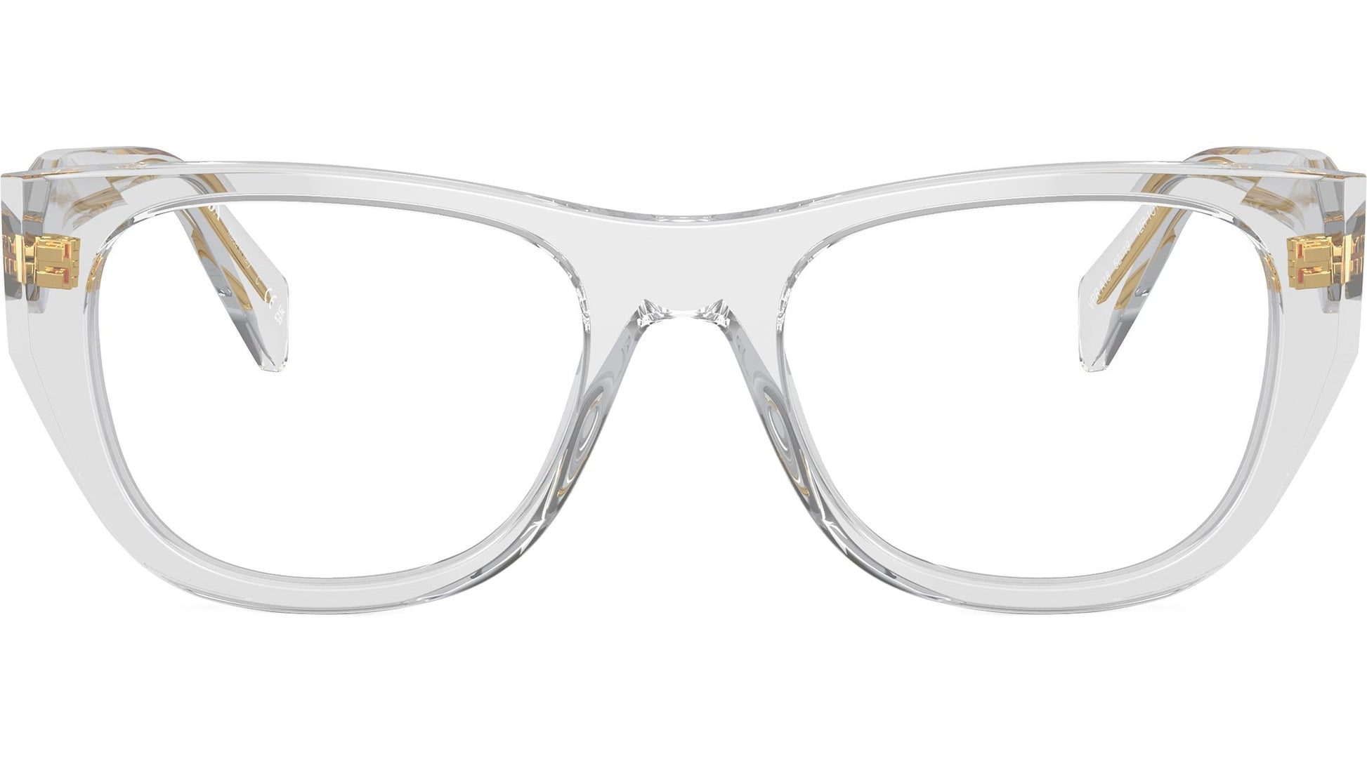 Prada eyeglasses for women model A18V featuring transparent grey full rim acetate frame and base 4 curve demo lens. high bridge fit. Frame line: Catwalk. Brand code: PRA18V. Color code: 12R1O1. Authorised Prada Online Reseller. Your glasses will come including the original case and accessories and will be covered by 12 month global warranty.