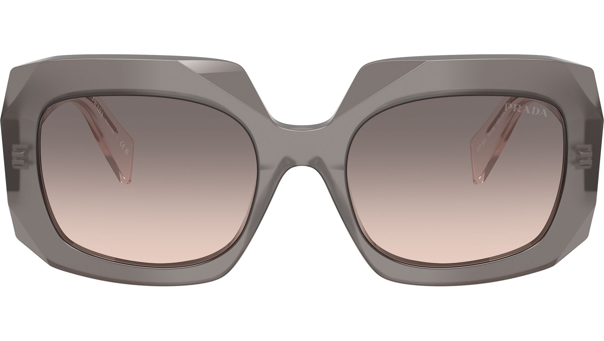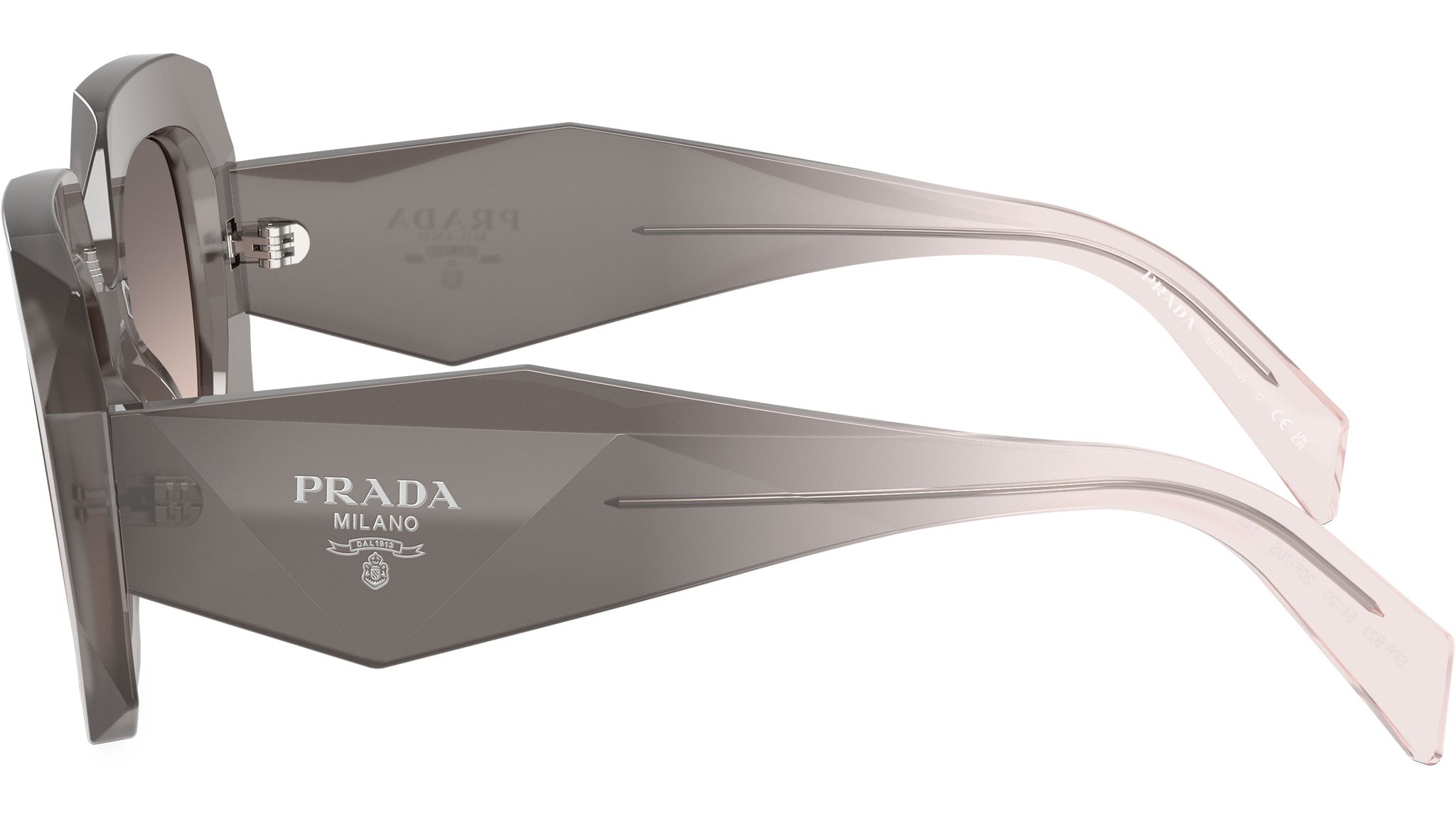 Prada PR B23S 20F70S sunglasses for women, featuring grey squared acetate frame and pink gradient grey bio polyamide lenses. High bridge fit. Brand line: Design. Style code: PRB23S. Color code: 20F70S. Made in Italy. Authorized Prada online reseller. Your glasses will include the original case and accessories and are covered by a 12-month global warranty.