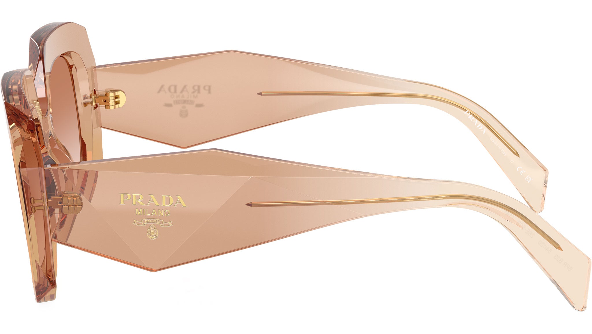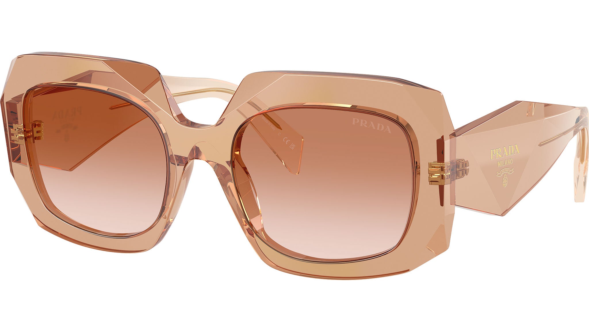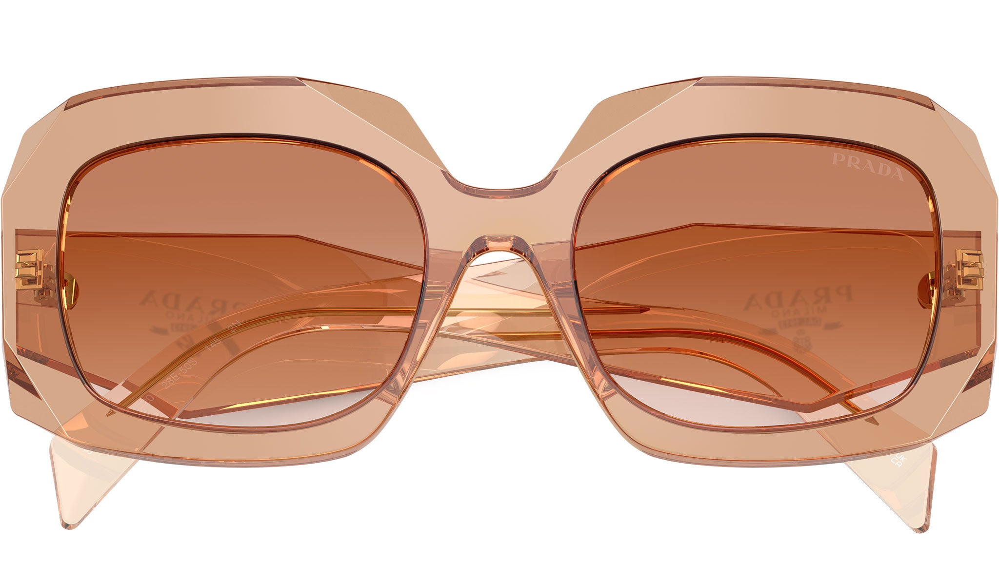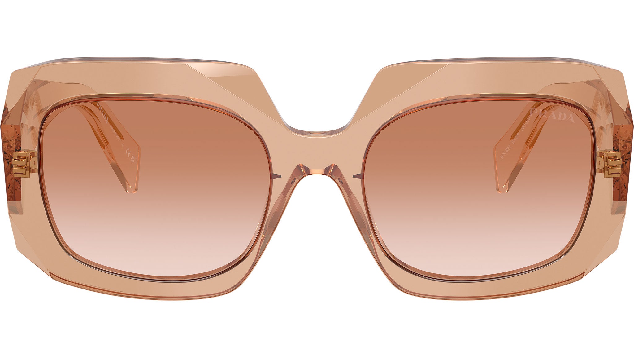 Prada PR B23S 28E50S sunglasses for women, featuring chocolate squared acetate frame and brown gradient bio polyamide lenses. High bridge fit. Brand line: Design. Style code: PRB23S. Color code: 28E50S. Made in Italy. Authorized Prada online reseller. Your glasses will include the original case and accessories and are covered by a 12-month global warranty.