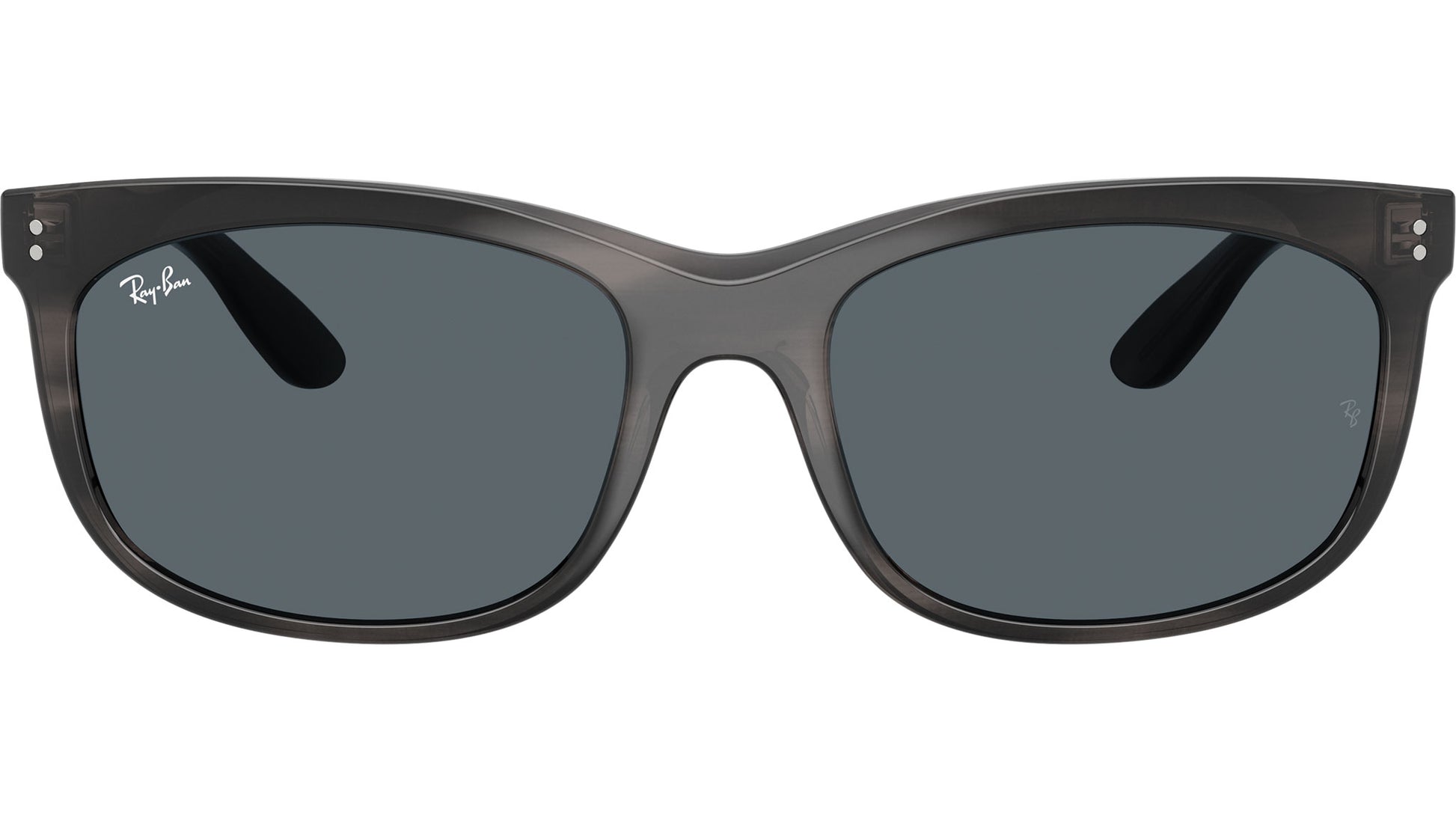 Ray-Ban Balorette sunglasses model RB2389 color code 1404R5 featuring striped grey full rim propionate frame and glass blue lenses. Ray-Ban stands for timeless style, simplicity, and freedom of expression. As a leading eyewear brand for generations, Ray-Ban has been at the forefront of cultural change, symbolizing individuality and personality. Ray-Ban has been worn by celebrities and public figures worldwide, becoming a symbol of style and sophistication.