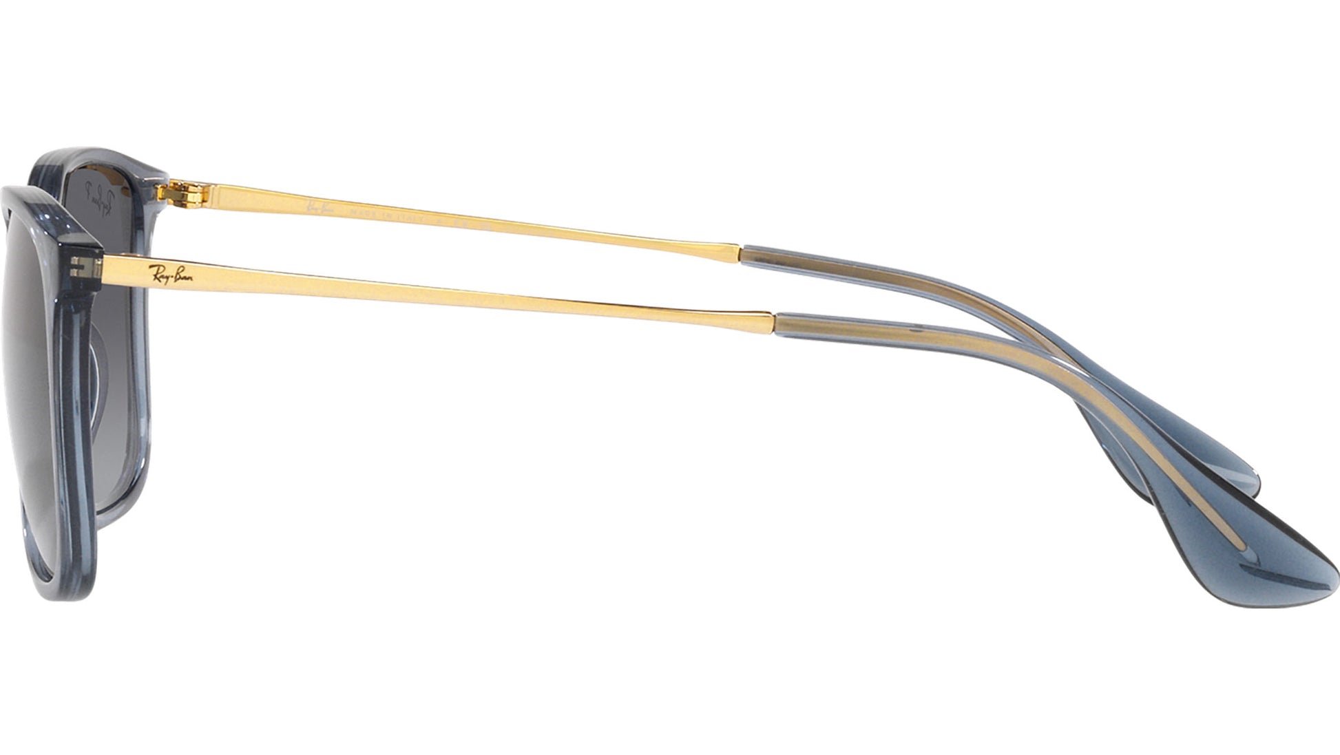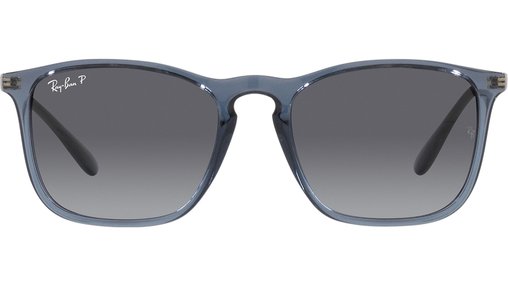 Chris RB4187 6592T3 transparent blue, injection frame, metal temple, featuring grey gradient polycarbonate lens.