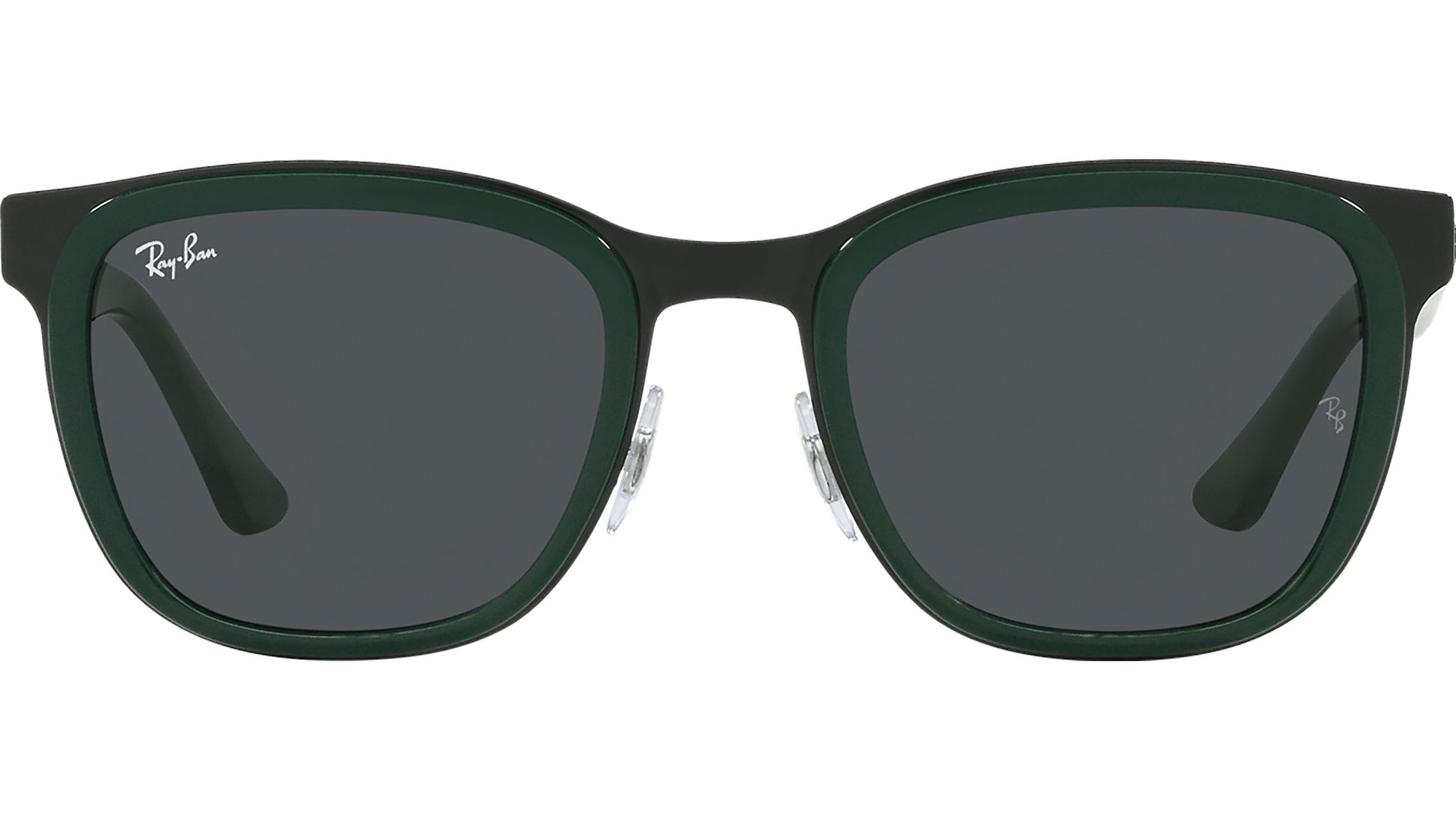 Ray-Ban Clyde sunglasses model RB3709 color code 002/87 featuring green on black full rim metal frame and polycarbonate dark grey lenses. Ray-Ban stands for timeless style, simplicity, and freedom of expression. As a leading eyewear brand for generations, Ray-Ban has been at the forefront of cultural change, symbolizing individuality and personality. Since its debut with the iconic Aviator, originally created for US aviation pilots, Ray-Ban has been worn by celebrities and public figures worldwide, becoming a symbol of style and sophistication.