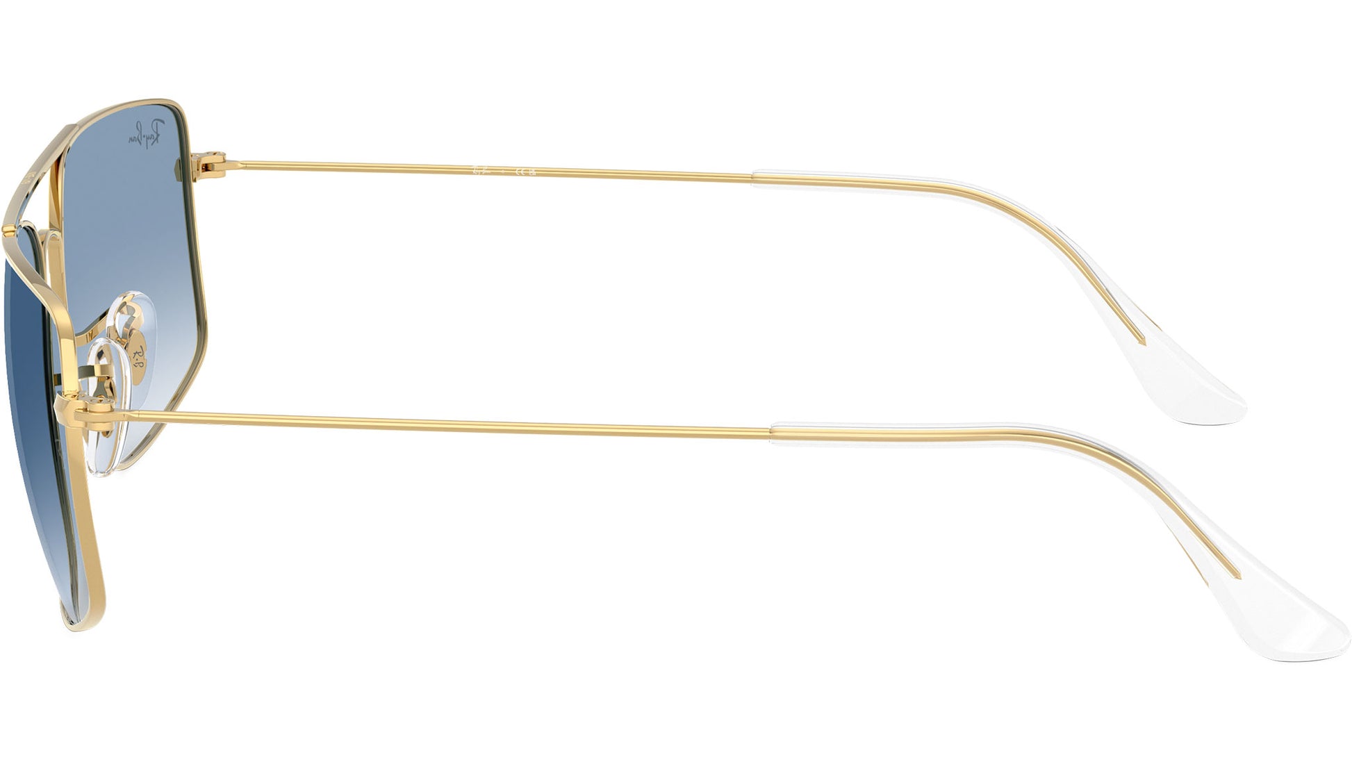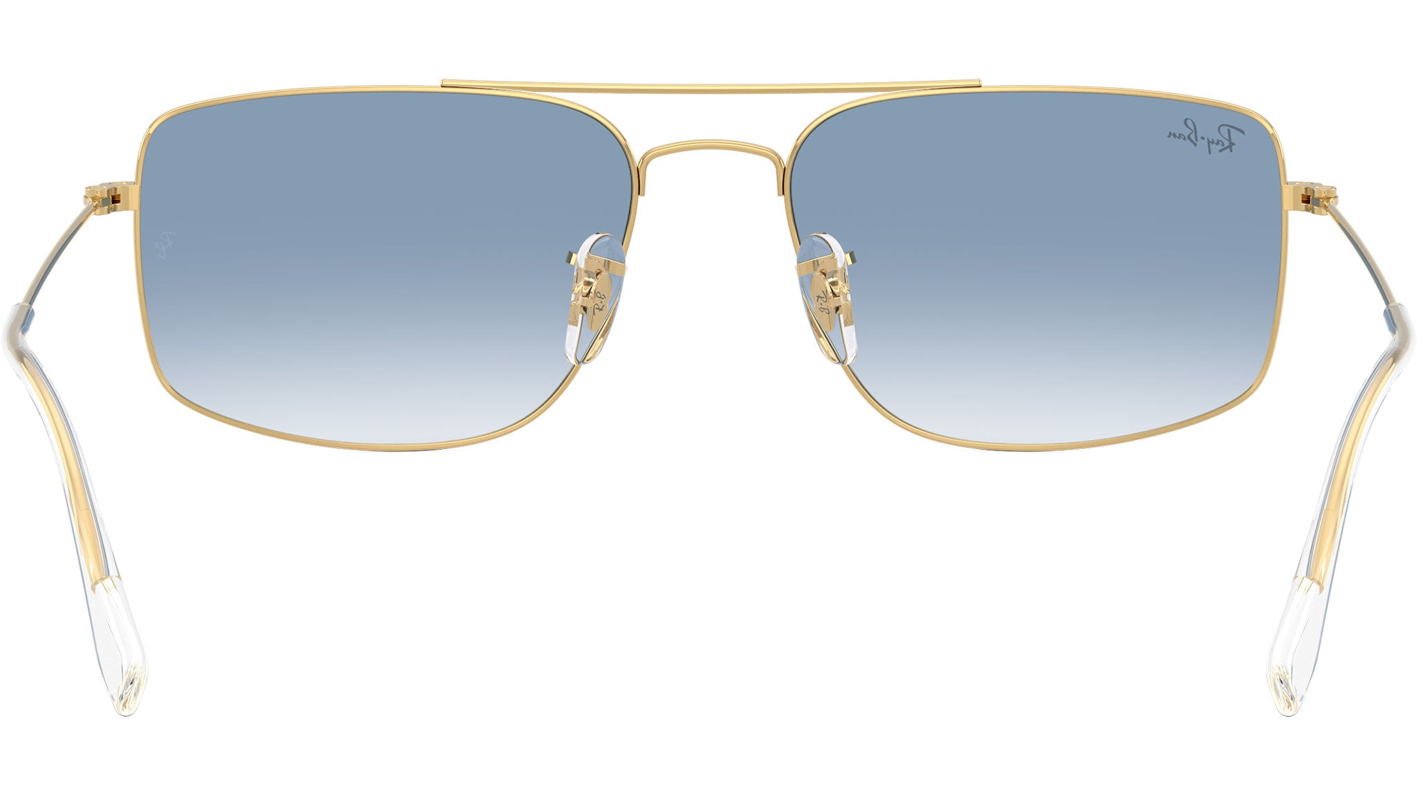 Ray-Ban Explorer 3 RB3779 001/3F sunglasses for men and woman, featuring arista gold squared metal frame and clear gradient blue glass lenses. Brand line: Evolution. Style code: 0RB3779. Color code: 001/3F. Authorized Ray-Ban online reseller. Your glasses will include the original case and accessories and are covered by a 12-month global warranty.