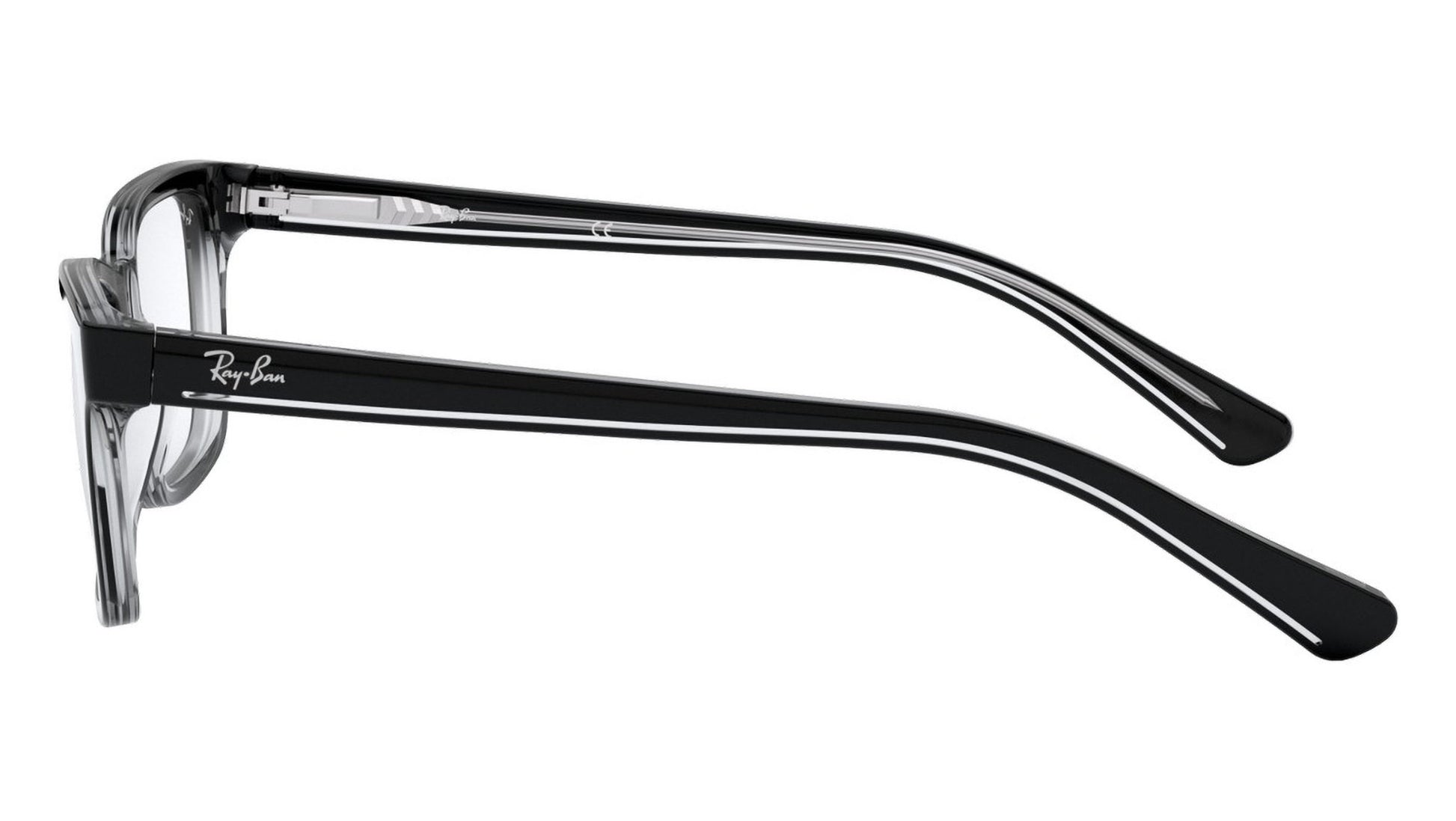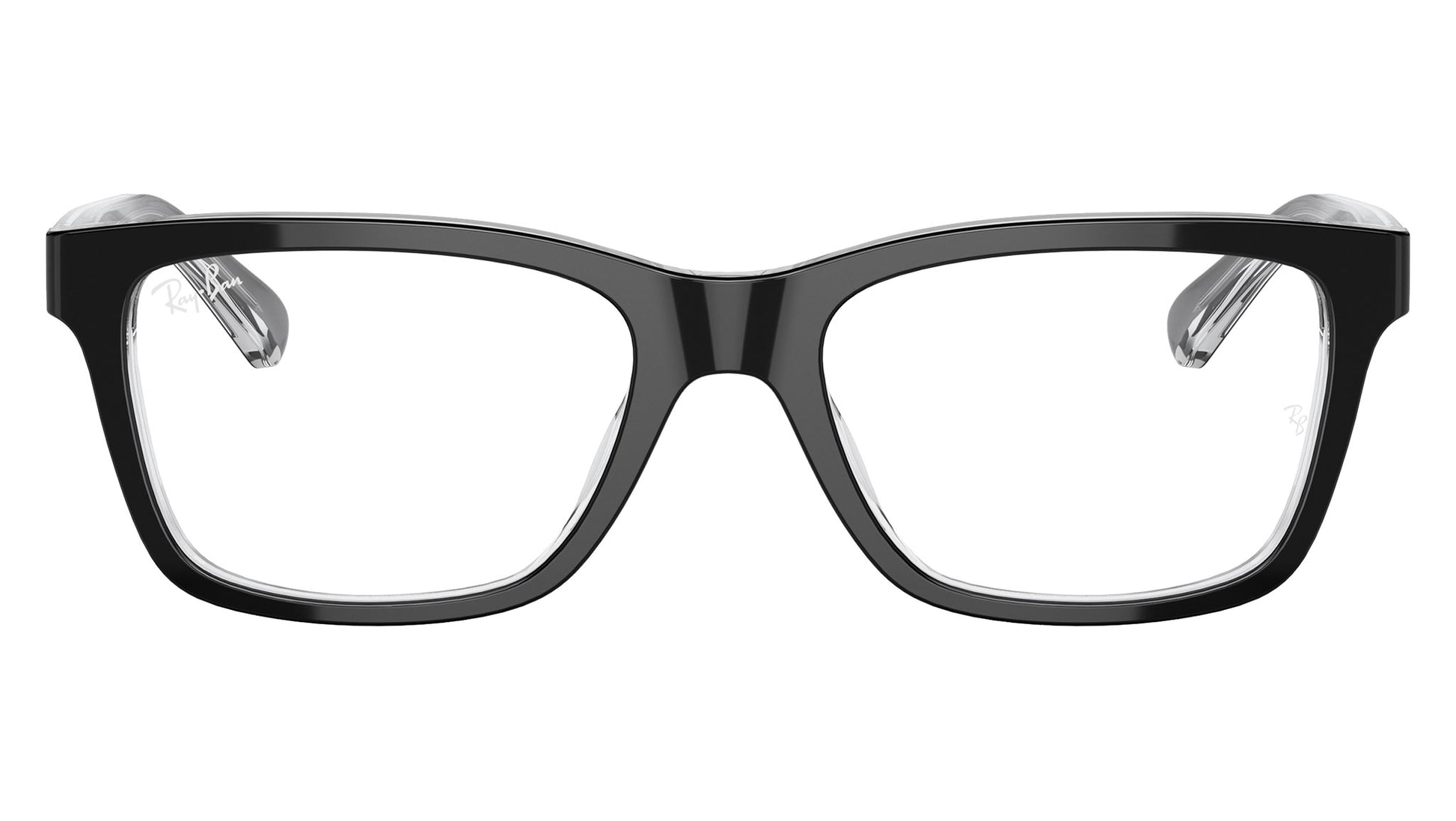 Ray-Ban Kids RY1536 black on transparent acetate eyeglasses, color code 3529. Full Rim square frame shape with demo lens. Authorised Ray-Ban Reseller. Includes genuine case.