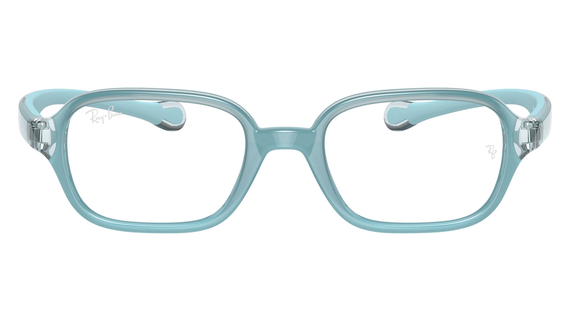 Ray-Ban Kids RY9074V light blue on rubber light blu acetate eyeglasses, color code 3879. Full Rim rectangle frame shape with demo lens. Authorised Ray-Ban Reseller. Includes genuine case.
