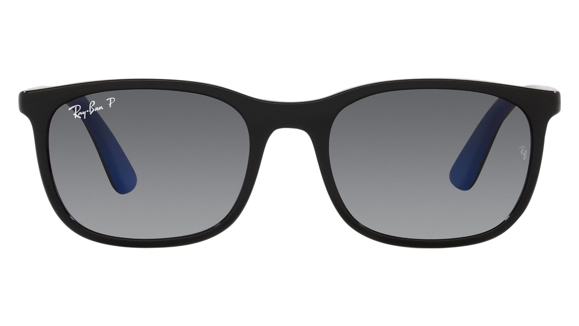 Ray-Ban sunglasses model RJ9076S color code 7122T3 featuring black on blue full rim injection frame and polycarbonate grey lenses. Includes genuine case. Authorised Ray-Ban Reseller.