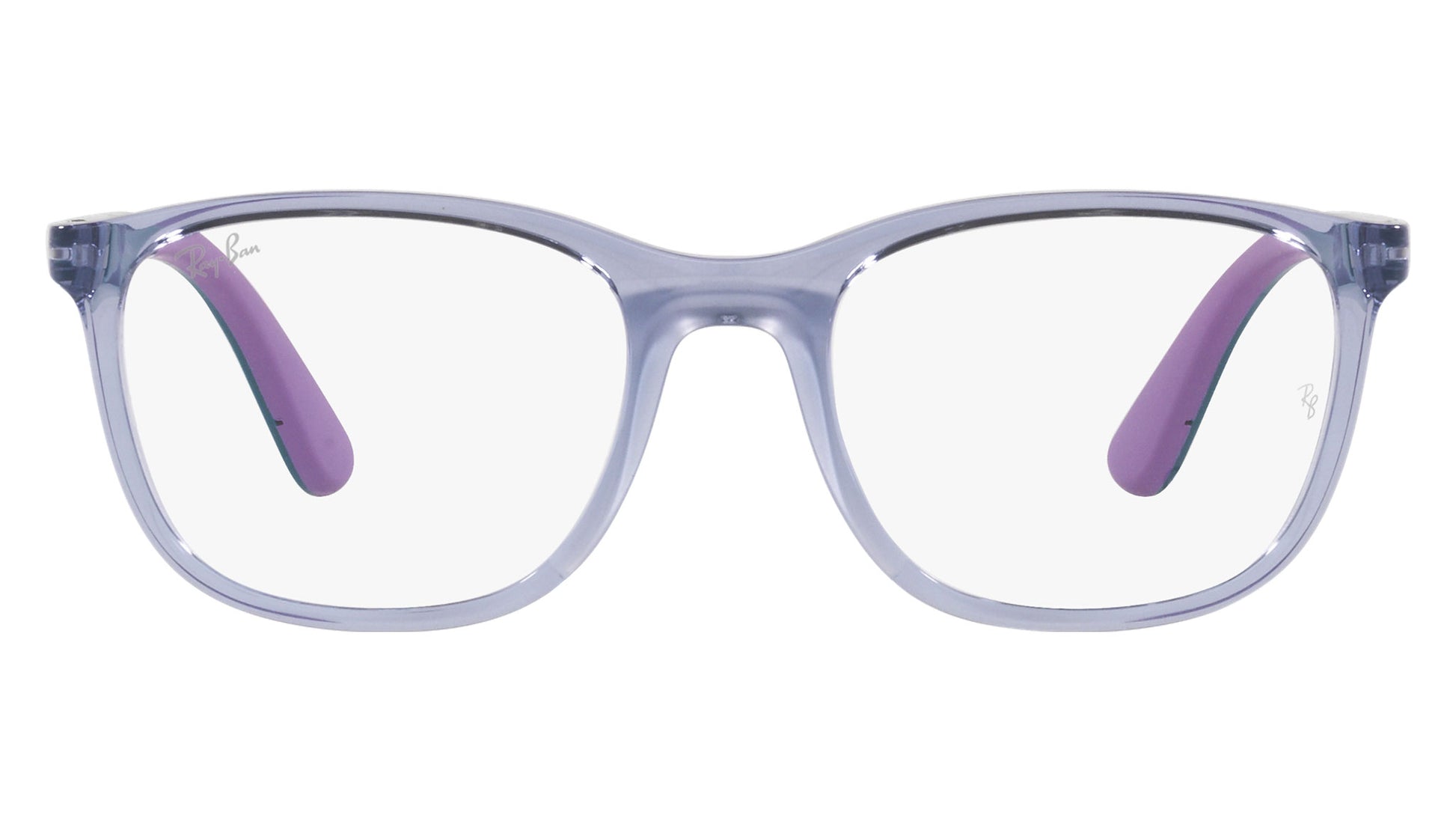 Ray-Ban Kids RY1620 transparent violet injection eyeglasses, color code 3906. Full Rim unisex d-frame frame shape with high bridge fit and demo lens. Authorised Ray-Ban Reseller. Includes genuine case.
