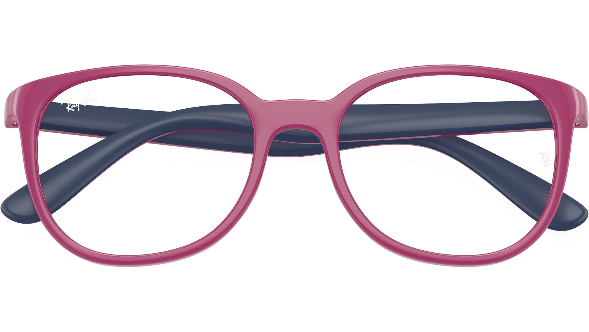 Ray-Ban Junior RY1631 7508 glasses for boys and girls, featuring fucsia & rubber blue panthos injection frame and demo lenses. High bridge fit. Brand line: Kids Innovation. Style code: 0RY1631. Color code: 7508. Authorized Ray-Ban online reseller. Your glasses will include the original case and accessories and are covered by a 12-month global warranty.