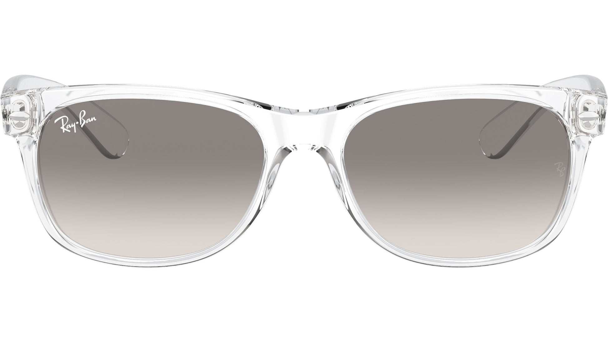 Ray-Ban New Wayfarer sunglasses model RB2132 color code 677432 featuring transparent full rim nylon frame and glass clear grey lenses. Ray-Ban stands for timeless style, simplicity, and freedom of expression. As a leading eyewear brand for generations, Ray-Ban has been at the forefront of cultural change, symbolizing individuality and personality. Since its debut with the iconic Aviator, originally created for US aviation pilots, Ray-Ban has been worn by celebrities and public figures worldwide, becoming a symbol of style and sophistication.