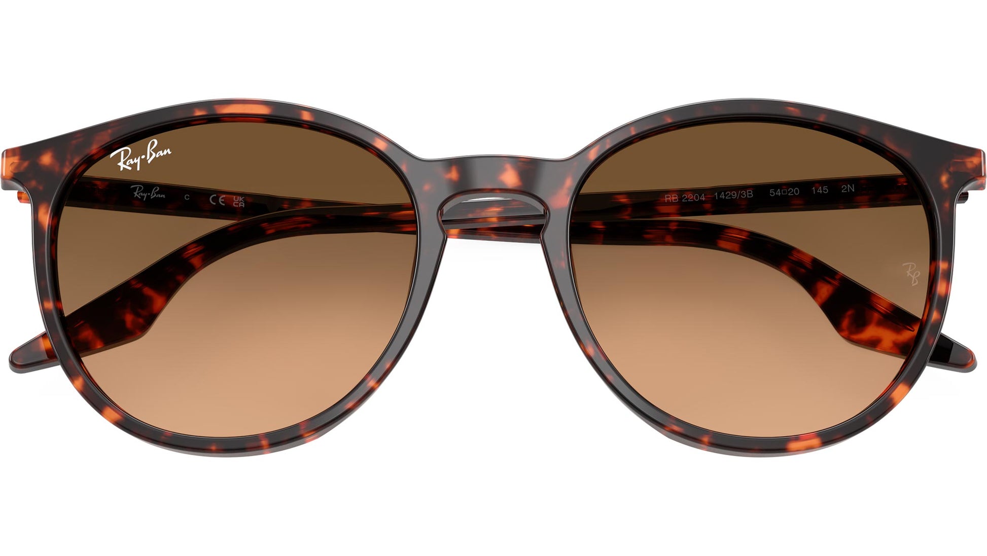 Ray-Ban RB2204 RB2204 14293B sunglasses for men and woman, featuring havana red tortoiseshell panthos acetate frame and pink gradient black glass lenses. High bridge fit. Brand line: Core. Style code: 0RB2204. Color code: 14293B. Authorized Ray-Ban online reseller. Your glasses will include the original case and accessories and are covered by a 12-month global warranty.