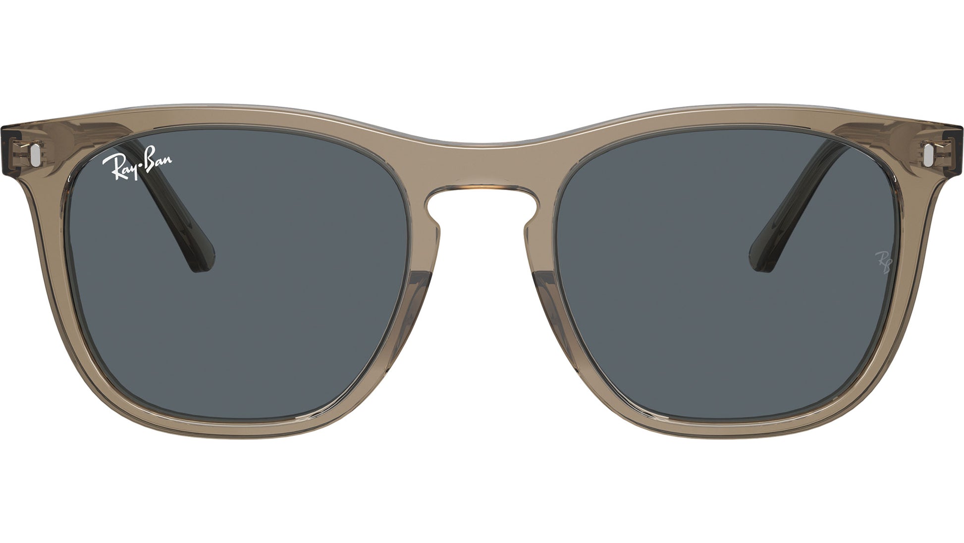 Ray-Ban Core line sunglasses model RB2210 color code 6765R5 featuring transparent brown full rim propionate frame and glass blue lenses. Ray-Ban stands for timeless style, simplicity, and freedom of expression. As a leading eyewear brand for generations, Ray-Ban has been at the forefront of cultural change, symbolizing individuality and personality. Since its debut with the iconic Aviator, originally created for US aviation pilots, Ray-Ban has been worn by celebrities and public figures worldwide, becoming a symbol of style and sophistication.