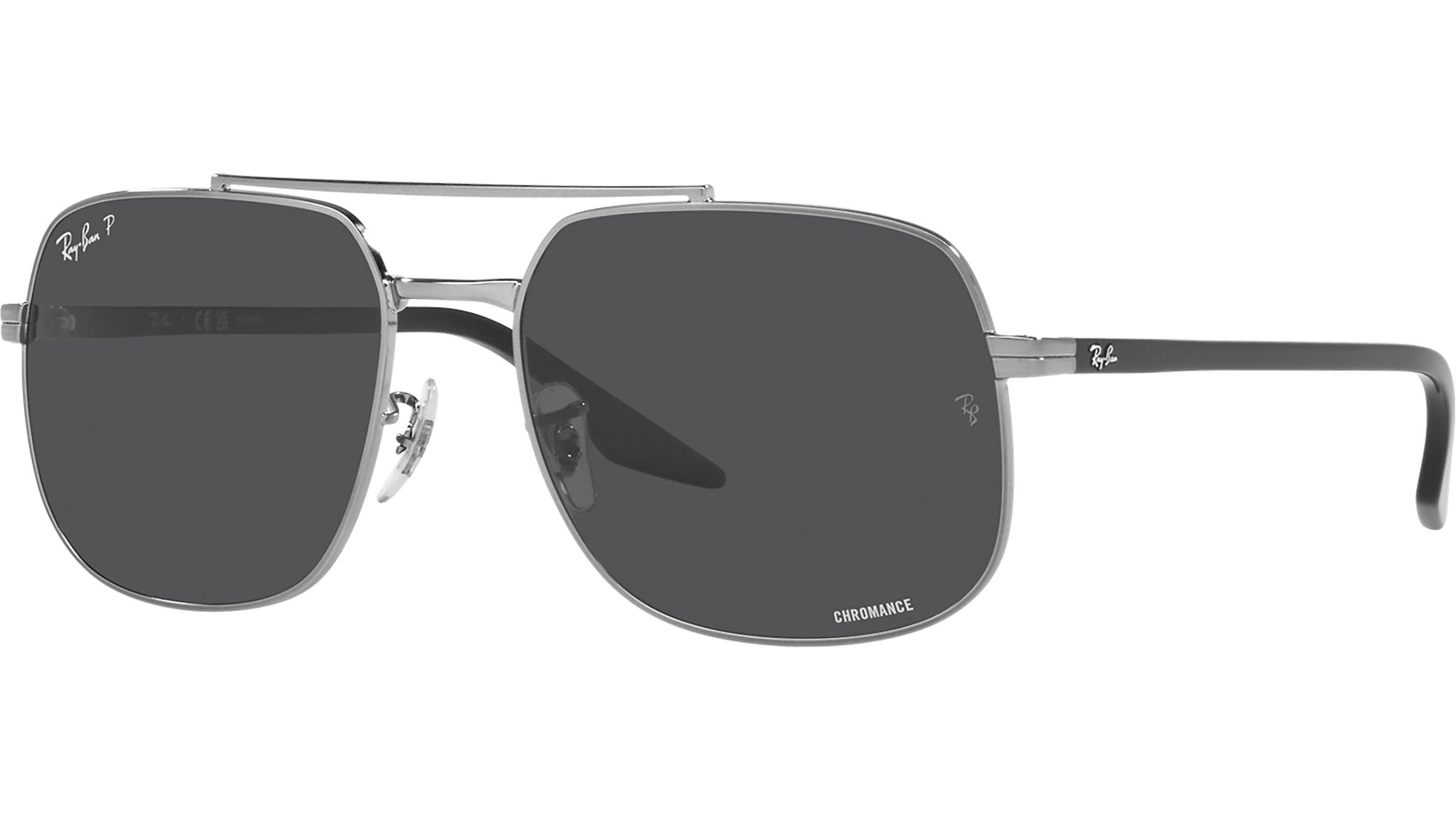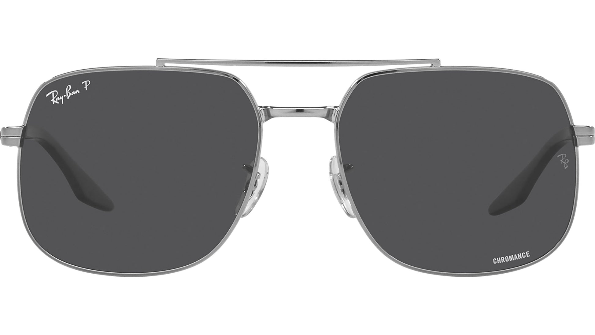 RB3699 004/K8 gunmetal, metal frame, acetate temple, featuring dark grey glass lens.